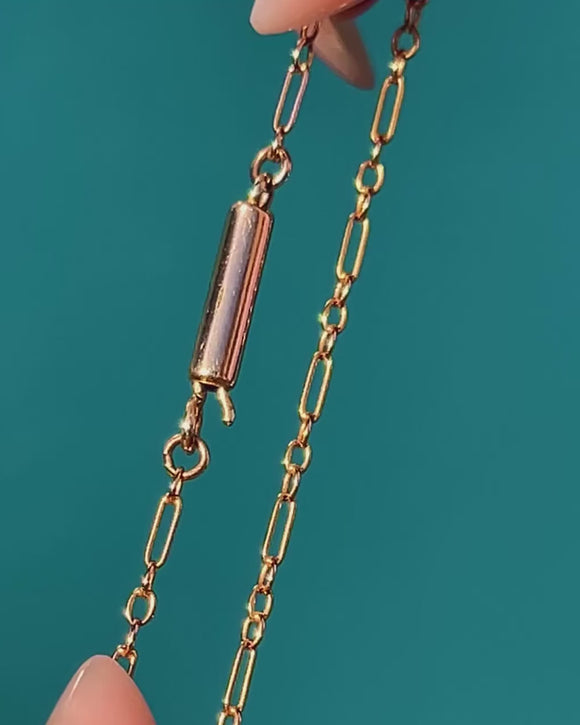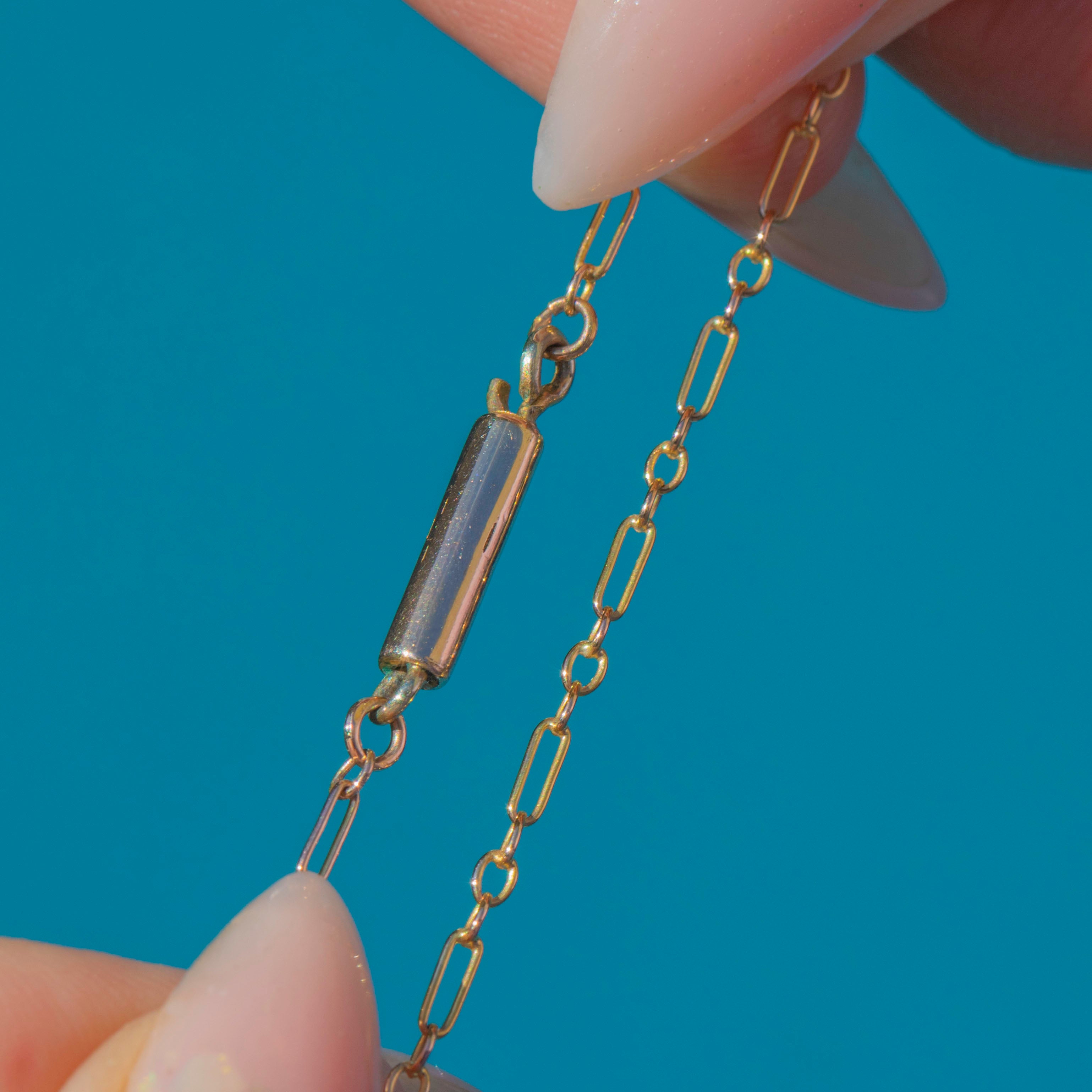 17" Dainty Antique 9ct Gold Paperclip Link Chain Barrel Clasp