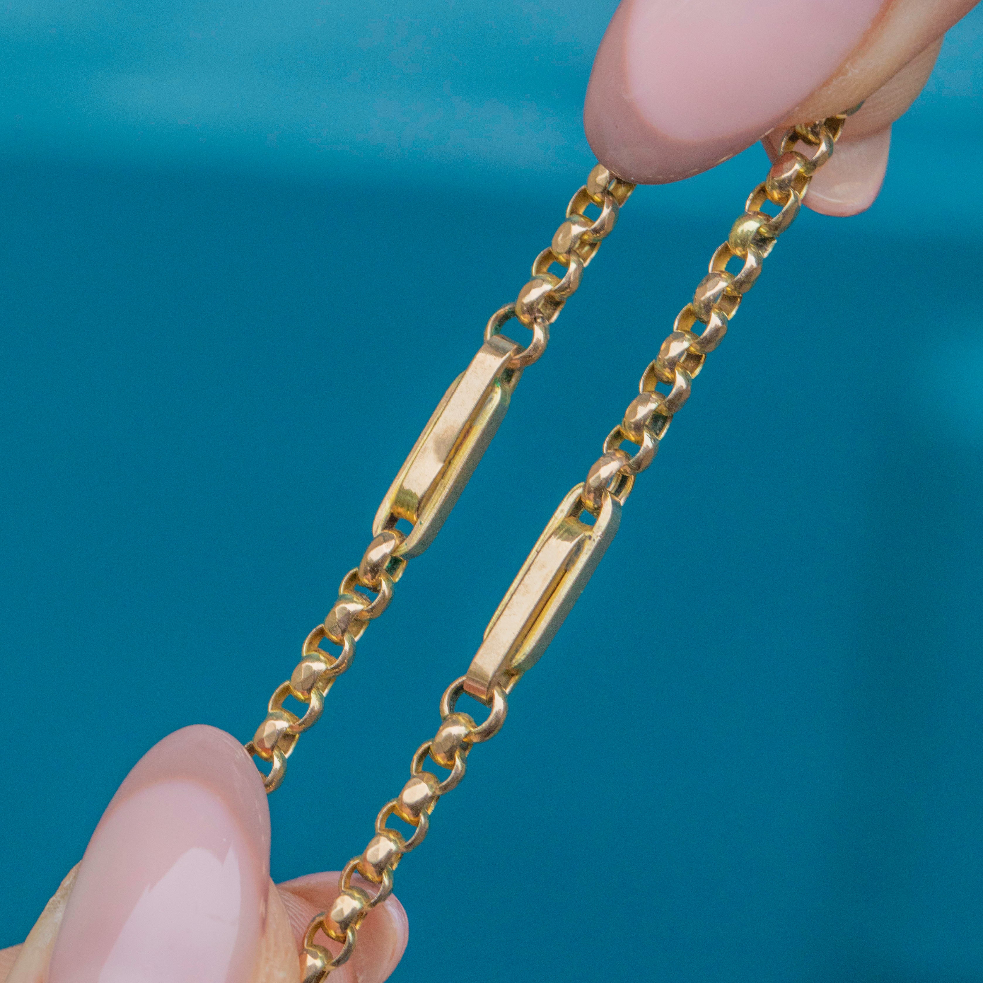 Full of character, her belcher links are accented by four sleek, paperclip links giving this antique Gold chain a unique twist.