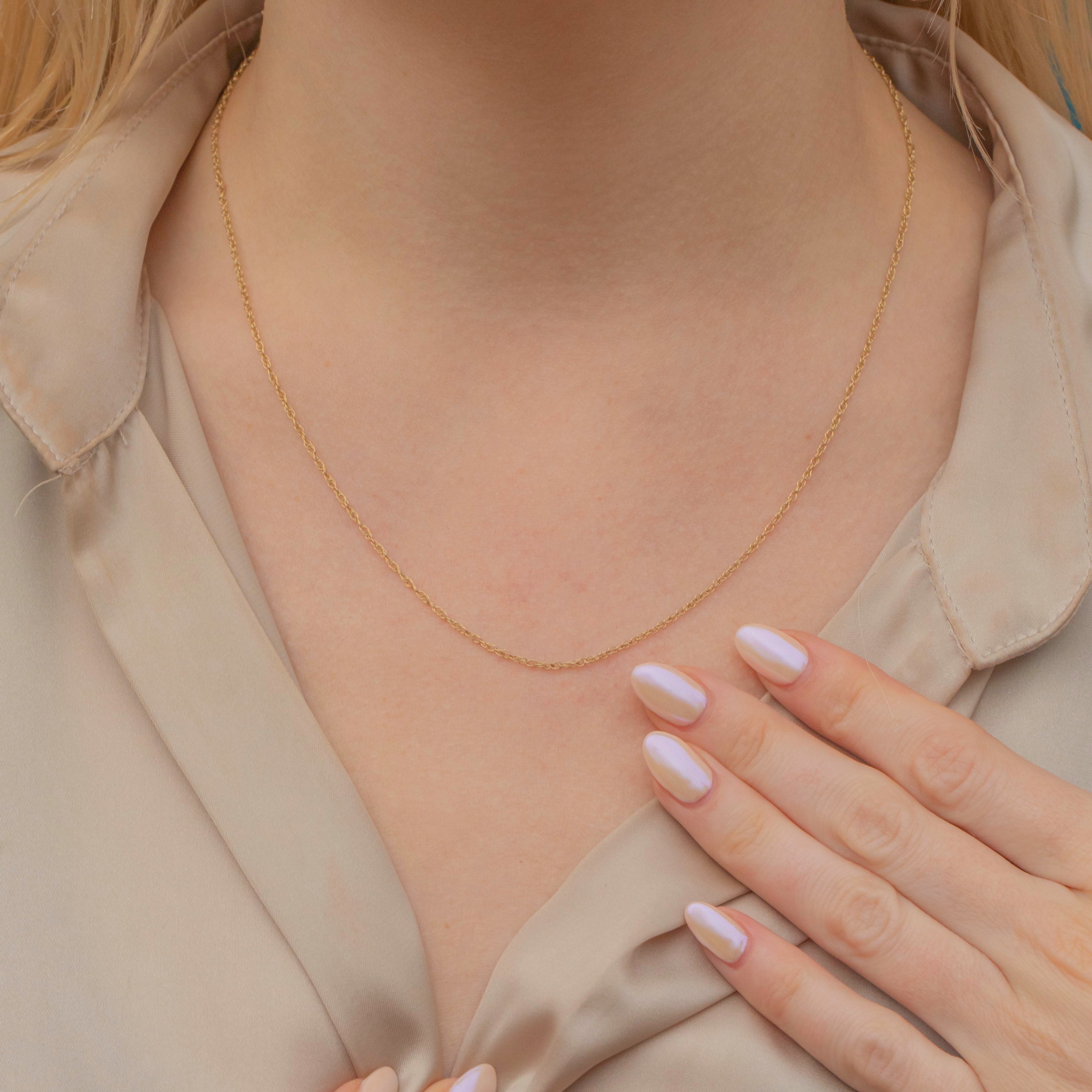 This 18" 9ct Gold Prince of Wales chain is the perfect delicate piece to add to your necklace stack. You can easily wear this lovely vintage Gold chain every day, with her lustrous dainty openwork links creating a gorgeous timeless allure.
