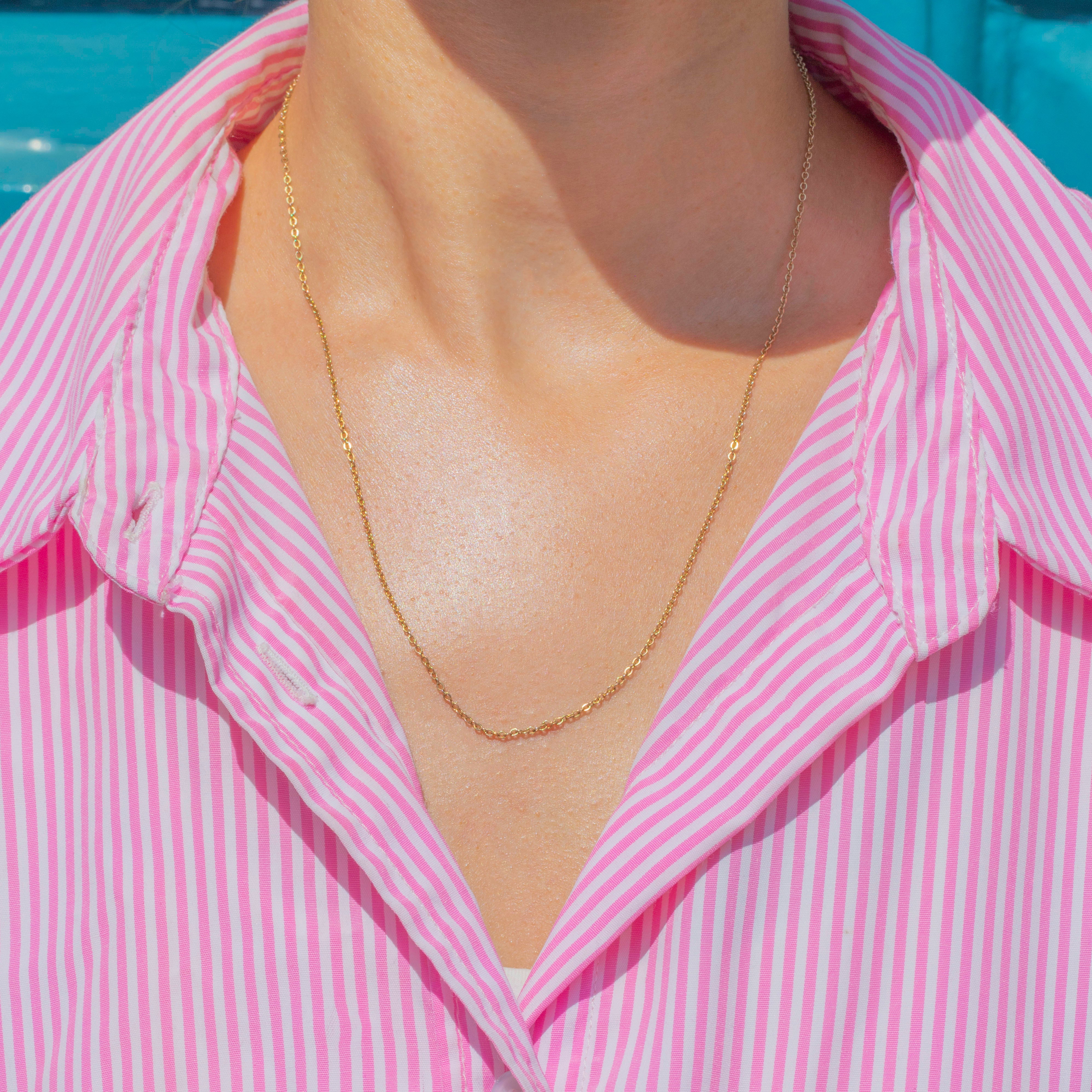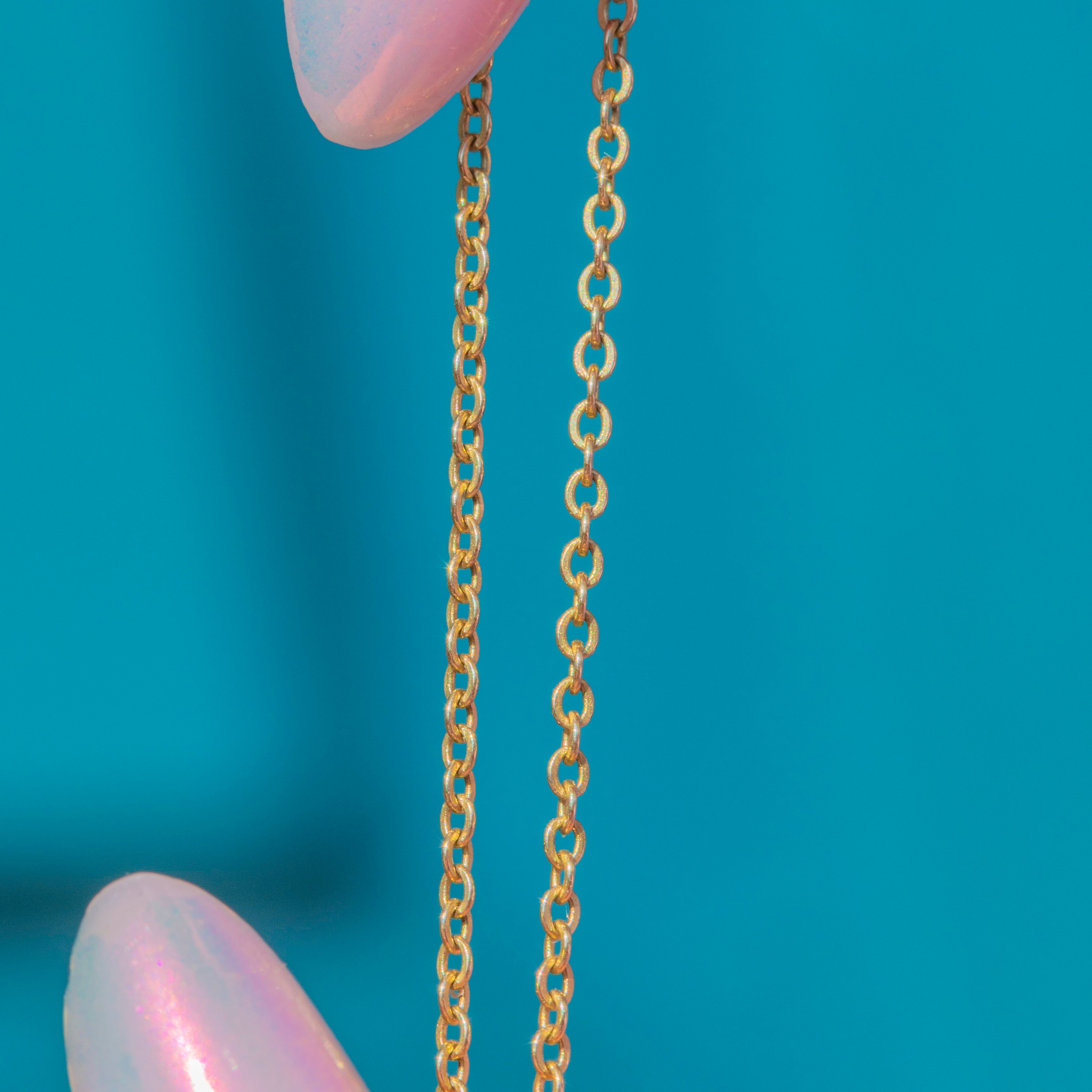This vintage Gold chain is 1.5mm wide, perfect for suspending your favourite charm across your décolletage, adding a subtle touch of glamour to any outfit. You won't be able to resist reaching for her daily!