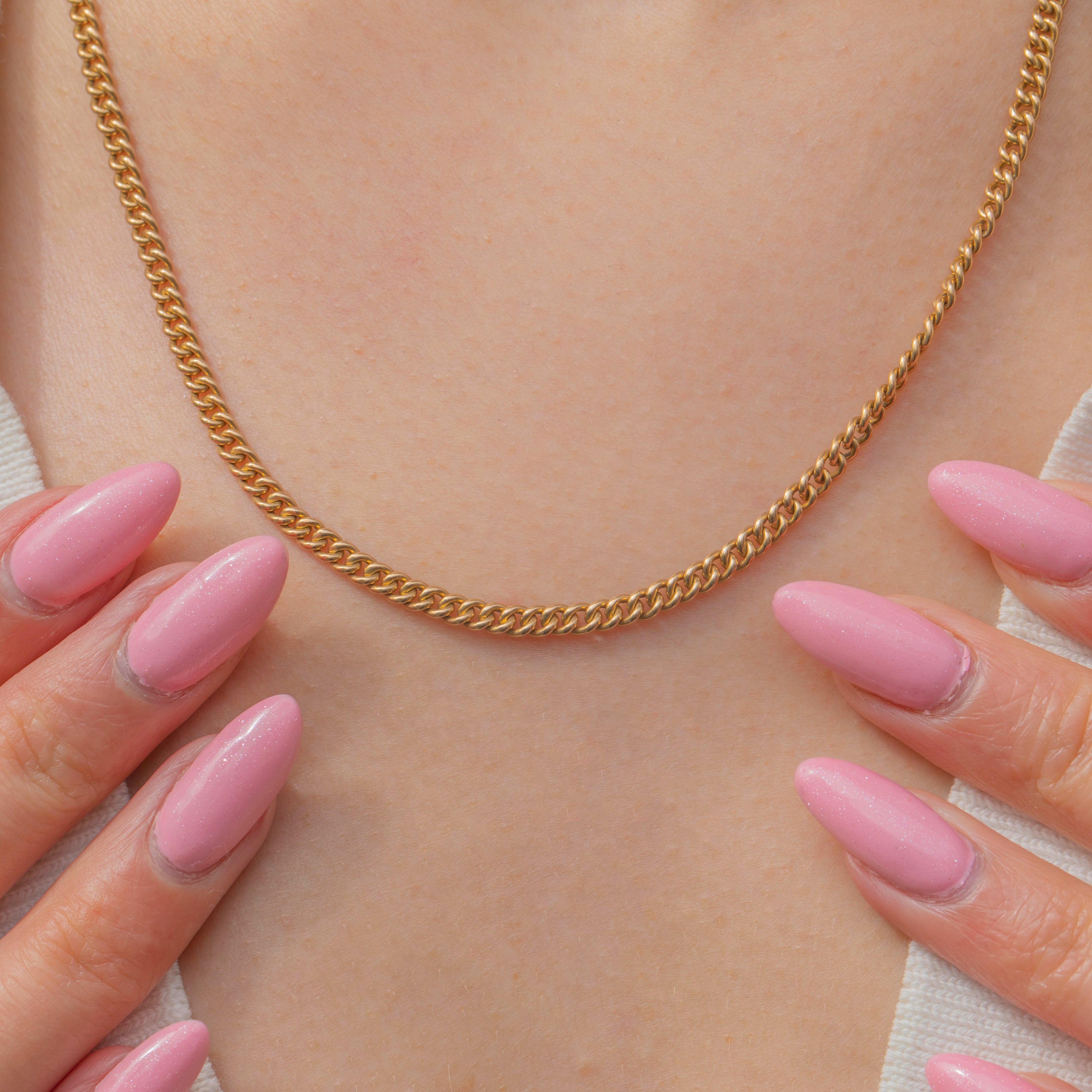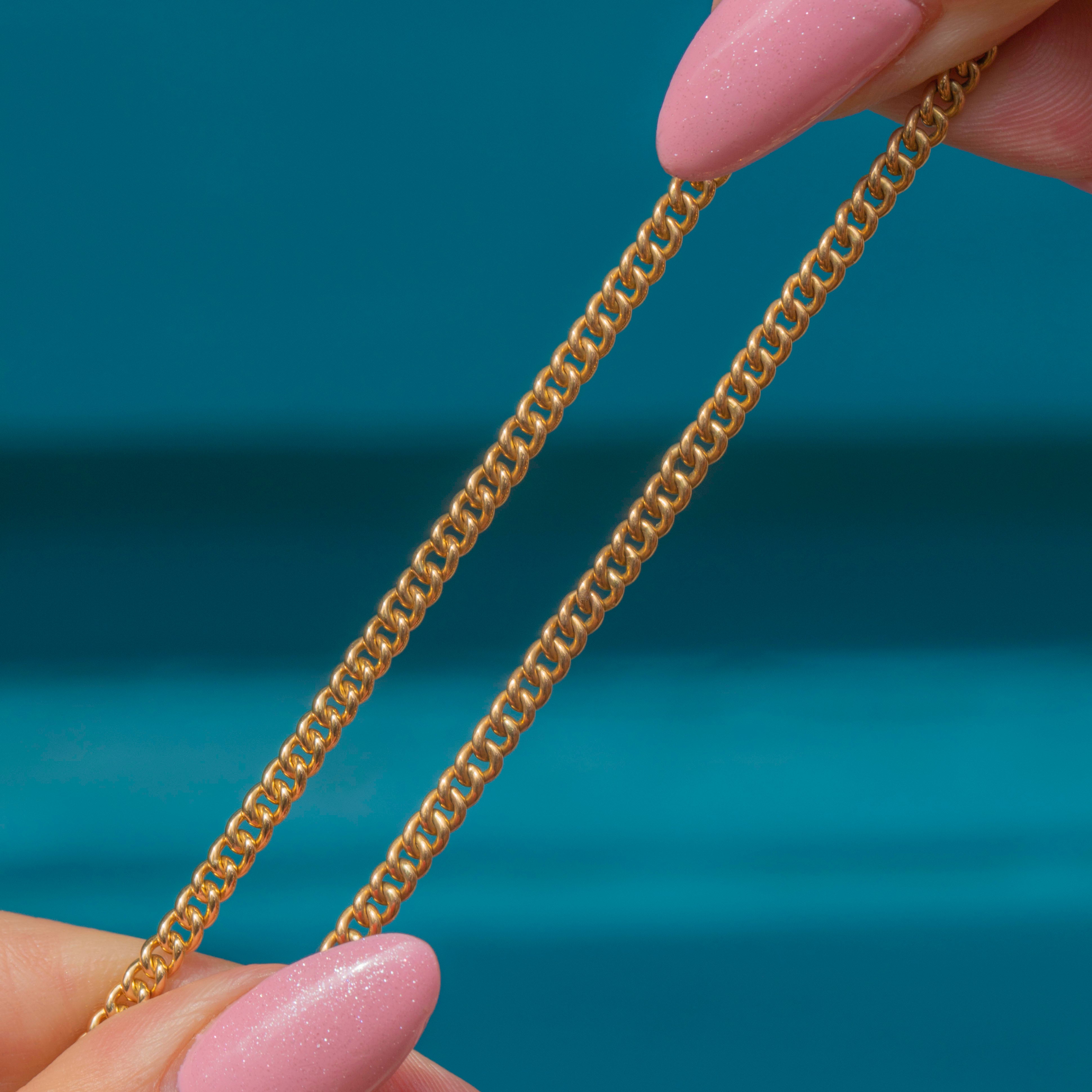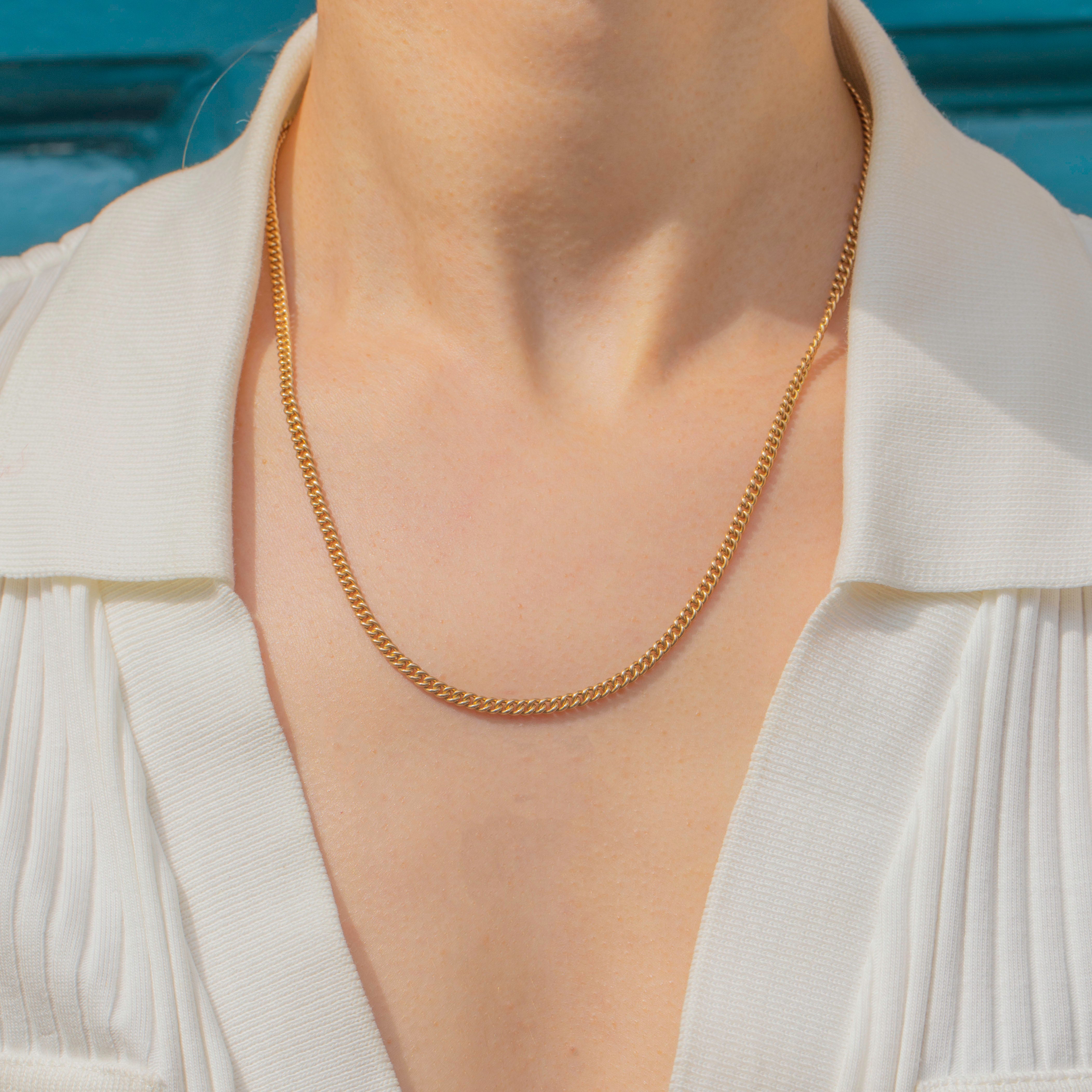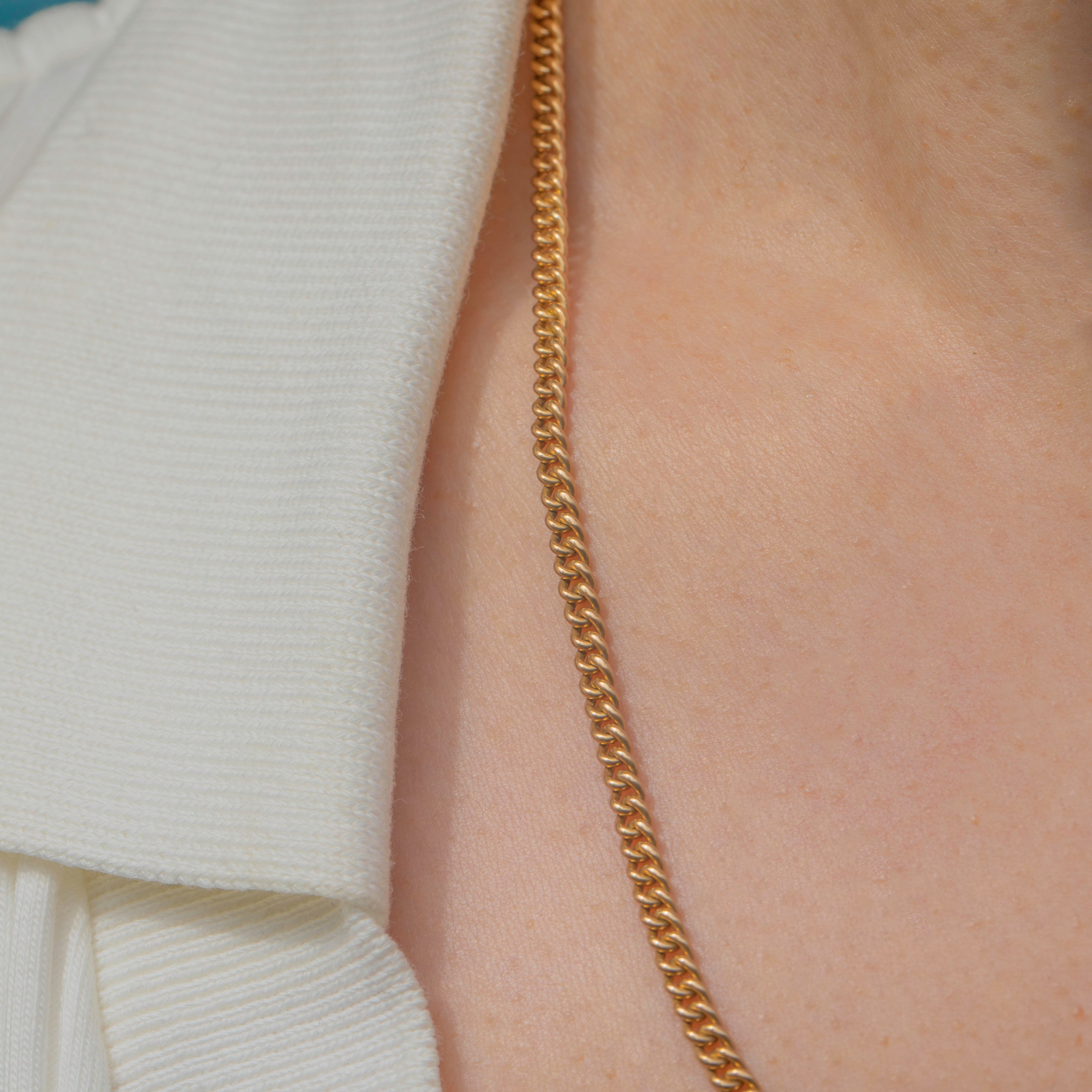 This antique 15ct Gold curb link chain is crafted from luminous 15ct Gold, with its 18" of elegant curb links cascading across your collarbones like liquid Gold.