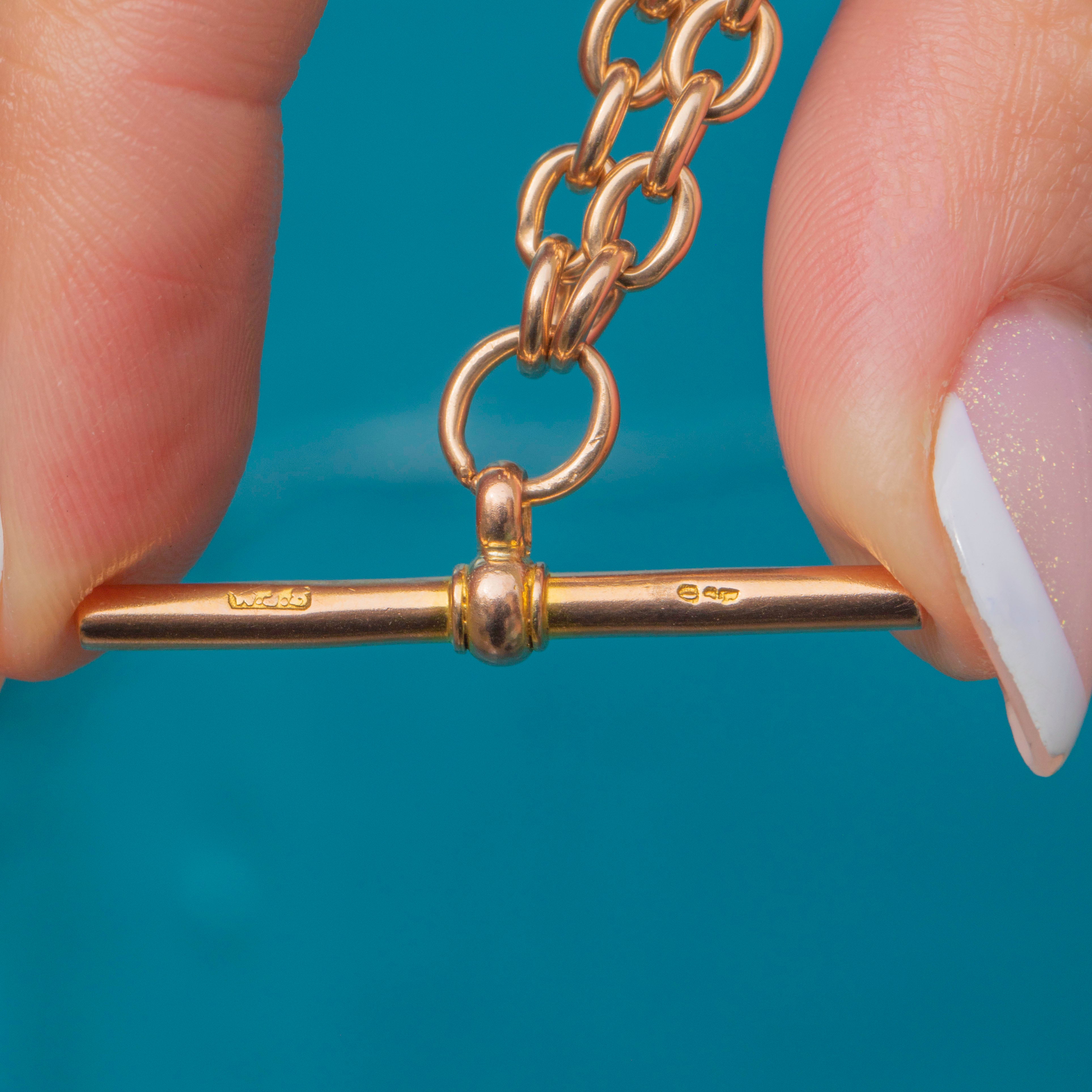 18" Antique 9ct Gold Albert Chain with Dog-Clip & T-Bar