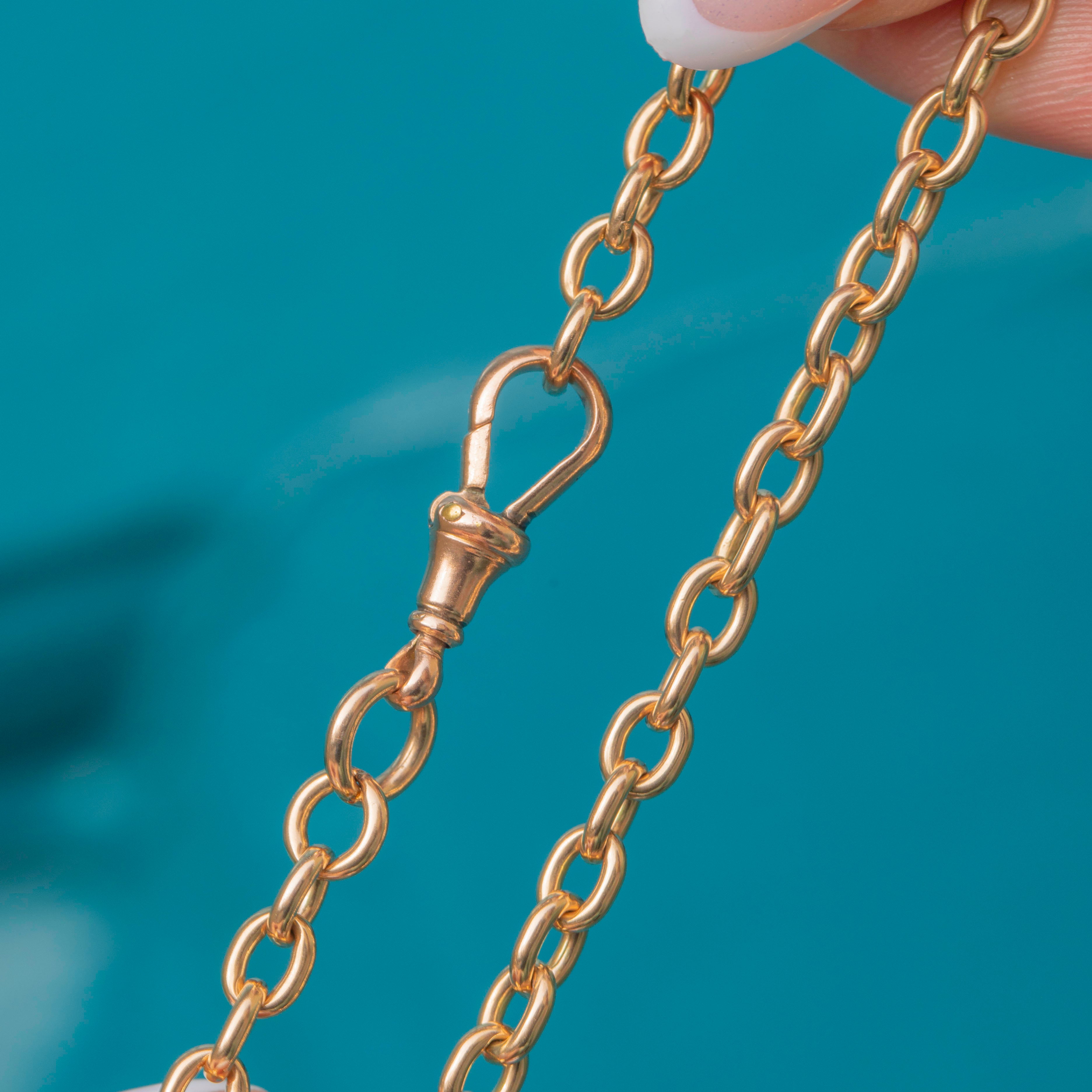This 18" antique 9ct Gold Albert chain is just as beautiful today as when she was first made all those years ago! Crafted from solid 9ct Gold throughout, this antique chain has perfectly smooth oval links, promising you secure and confident wear.