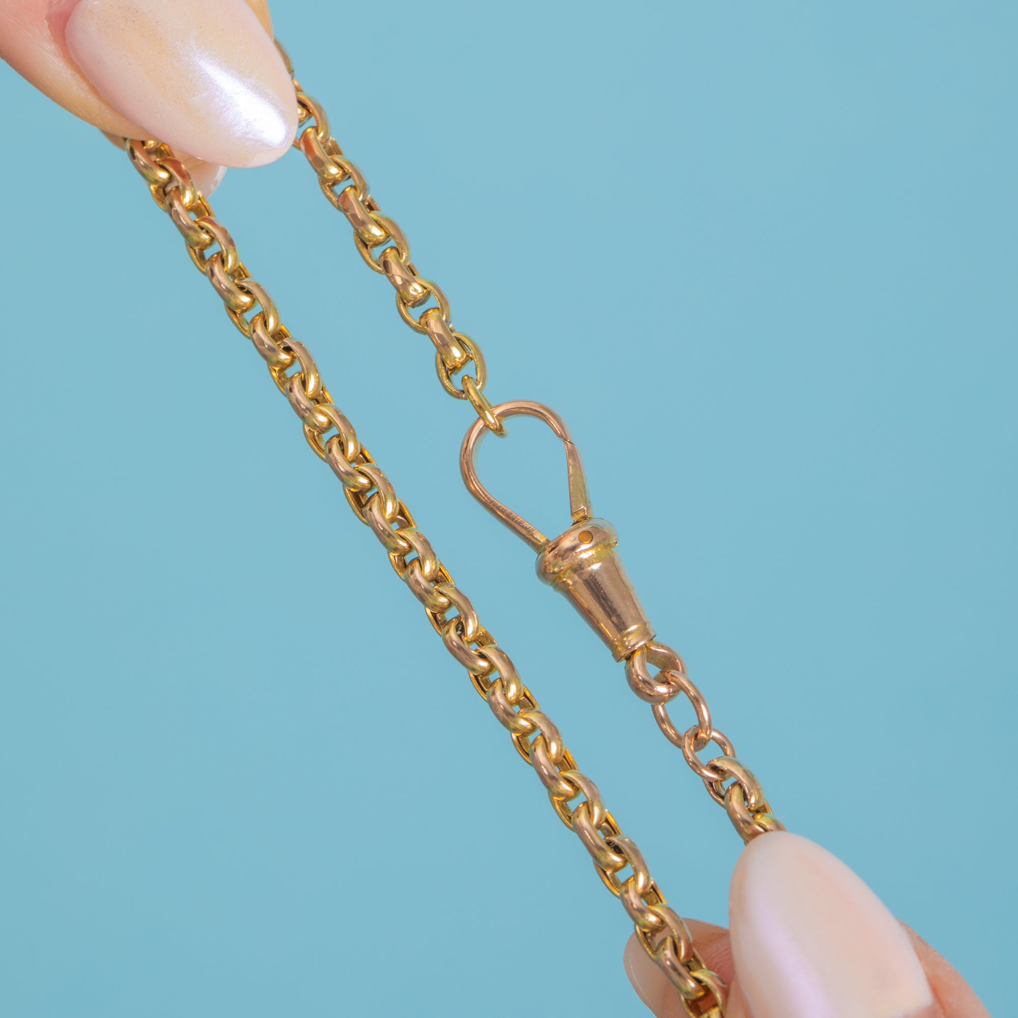 This antique 9ct Gold belcher chain is simply divine! Crafted from delectably sumptuous 9ct Gold, her smooth belcher links gleam under the light like little droplets of golden honey!
