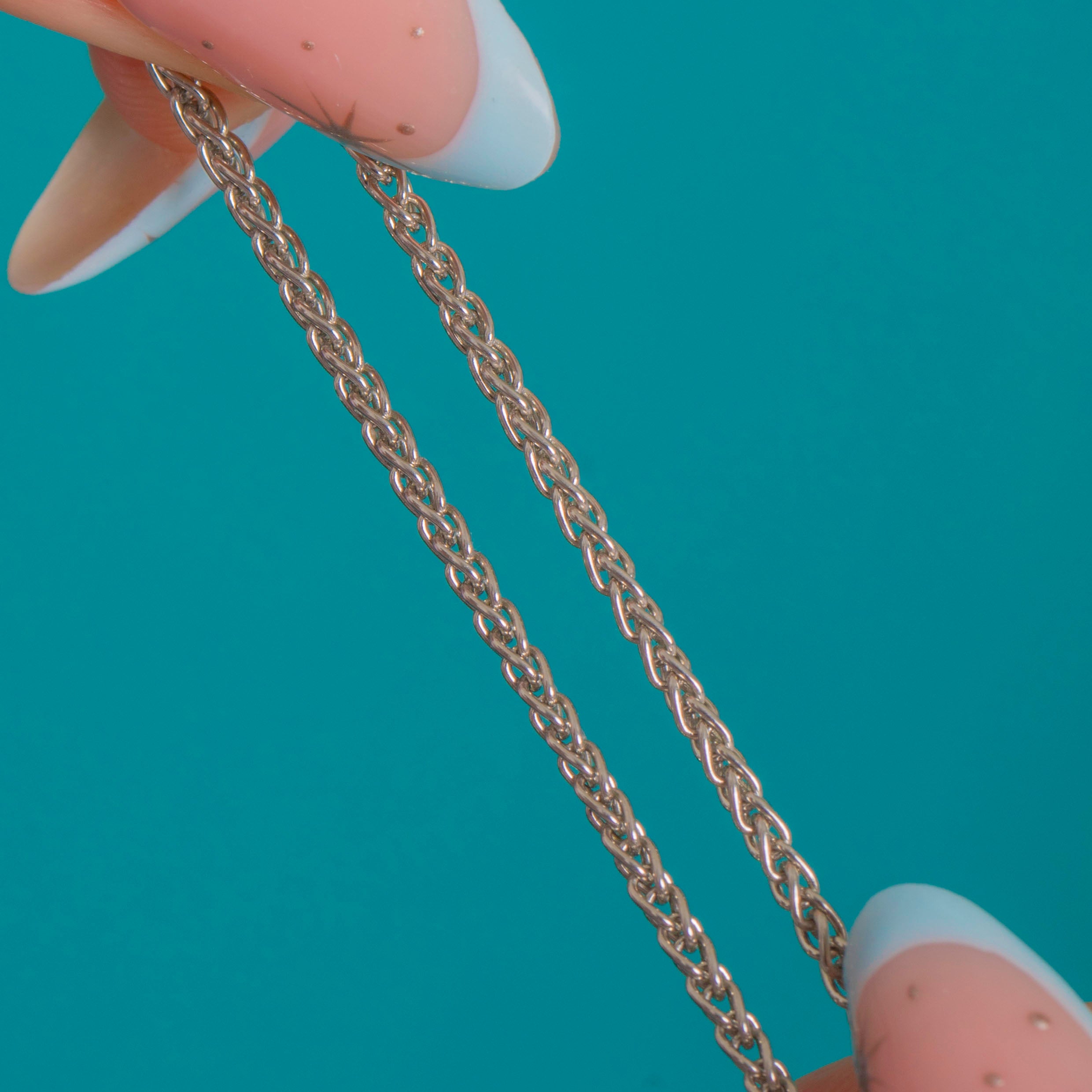 18" Solid Platinum Spiga Wheat Foxtail Chain