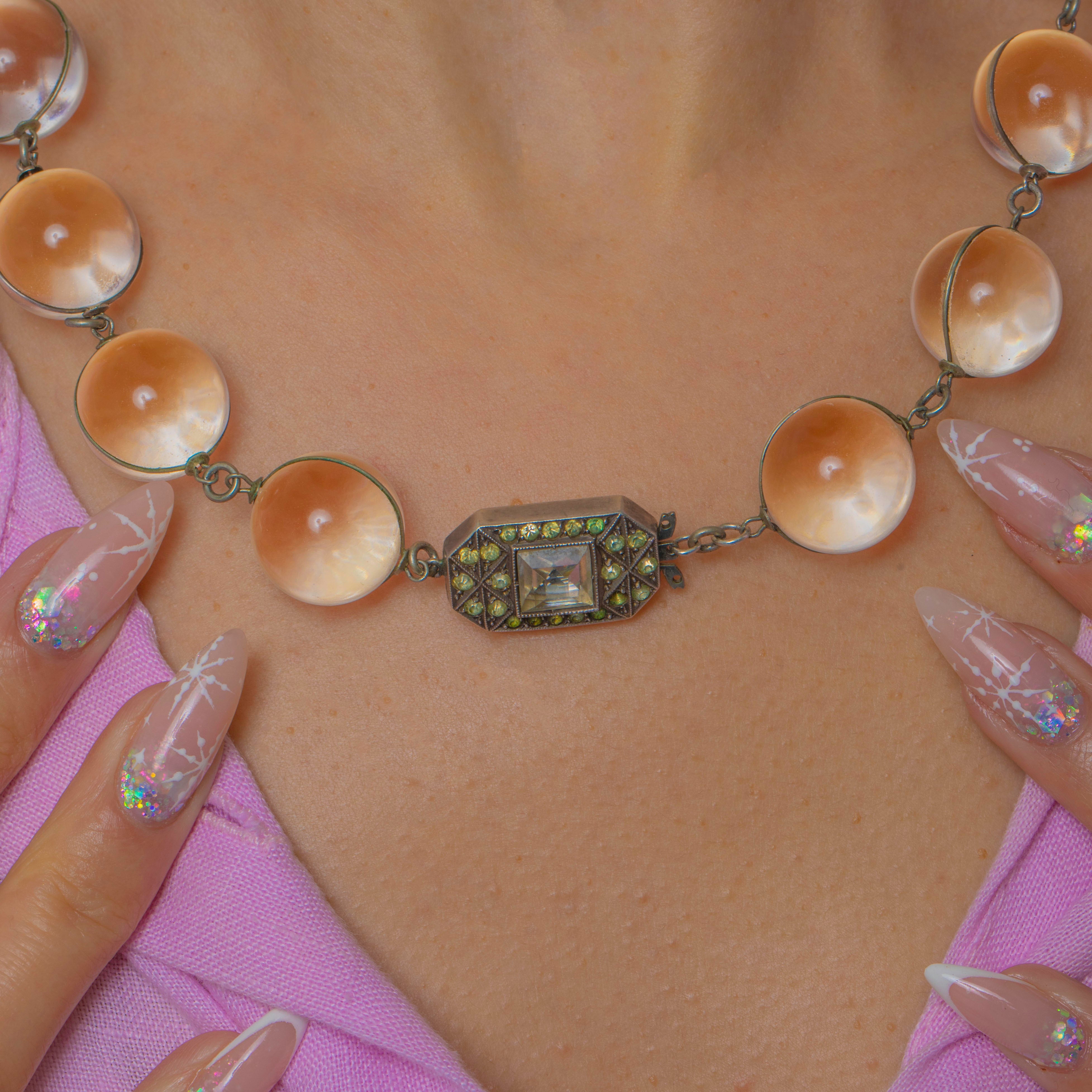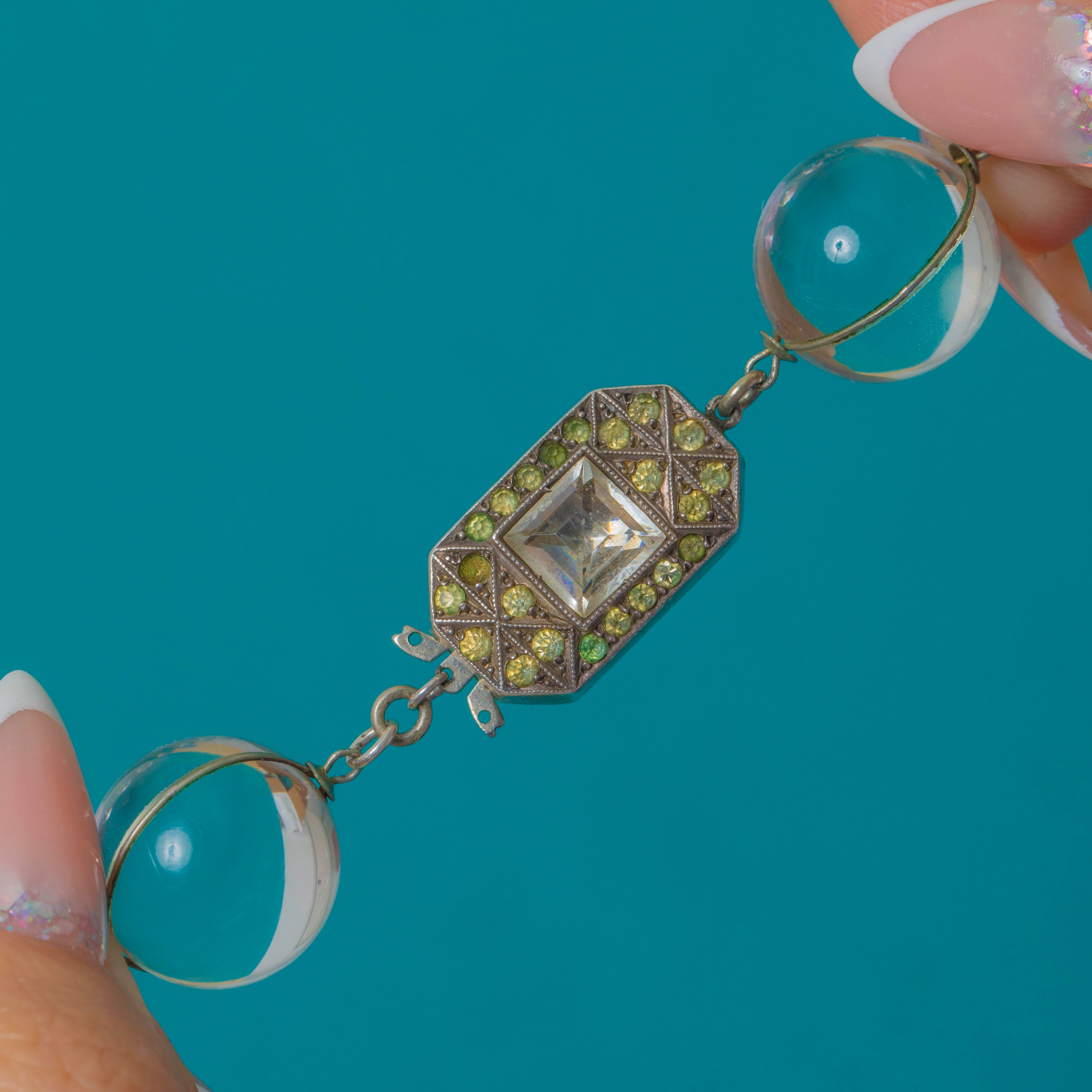 HERVORRAGEND: Die Rock Crystal-Kugeln sind leuchtend, klar und frei von Absplitterungen oder Rissen, und die Paste-Steine sind sicher gefasst und hervorragend erhalten. Der Silberverschluss funktioniert reibungslos mit minimalen altersbedingten Gebrauchsspuren. Ein exquisites Victorian Schmuckstück.