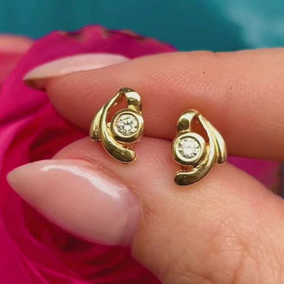 Add a subtle sparkle to your ear stack with these Vintage 18ct Gold Diamond stud earrings. Featuring a twinkling Diamond embraced by a high carat Gold in a swirling design.