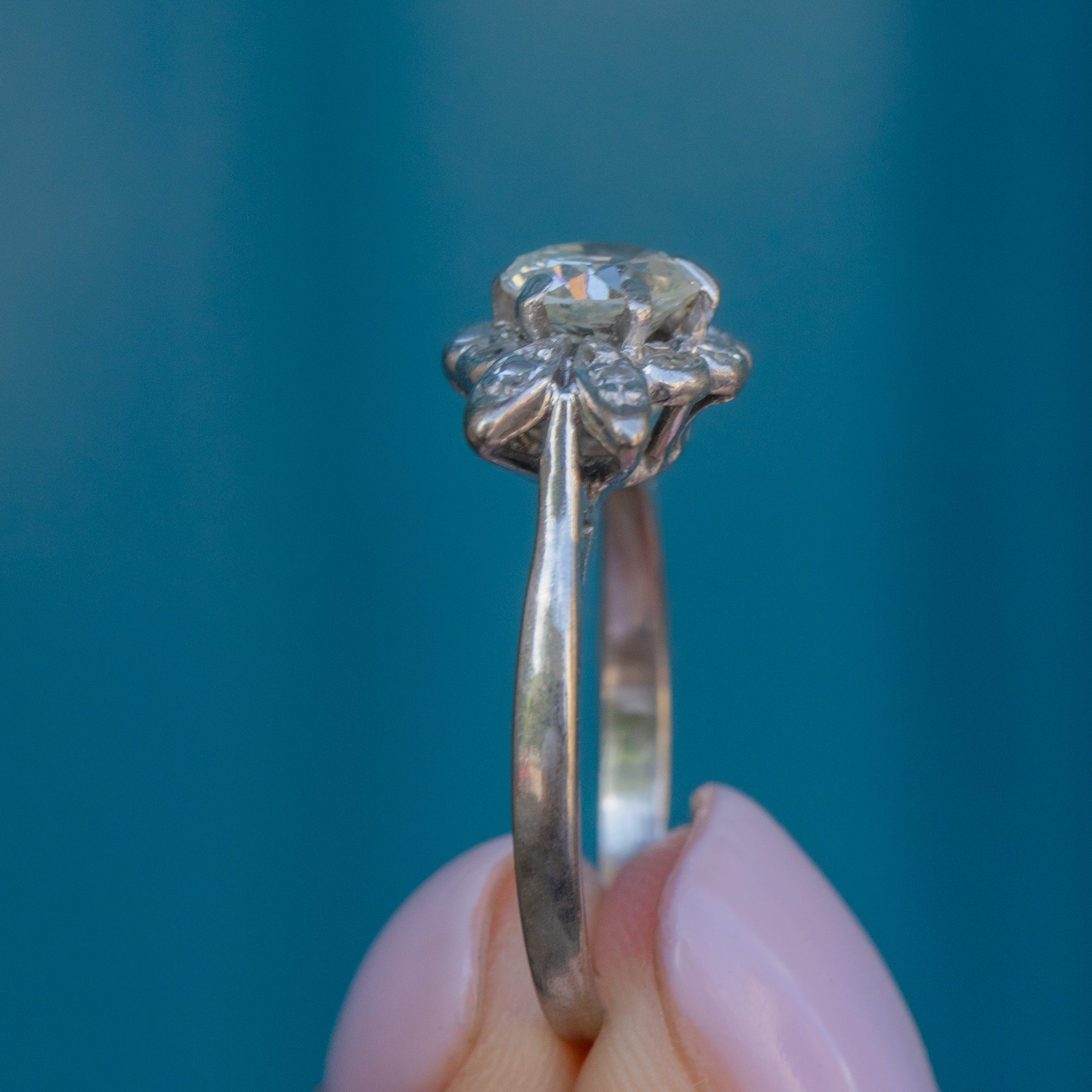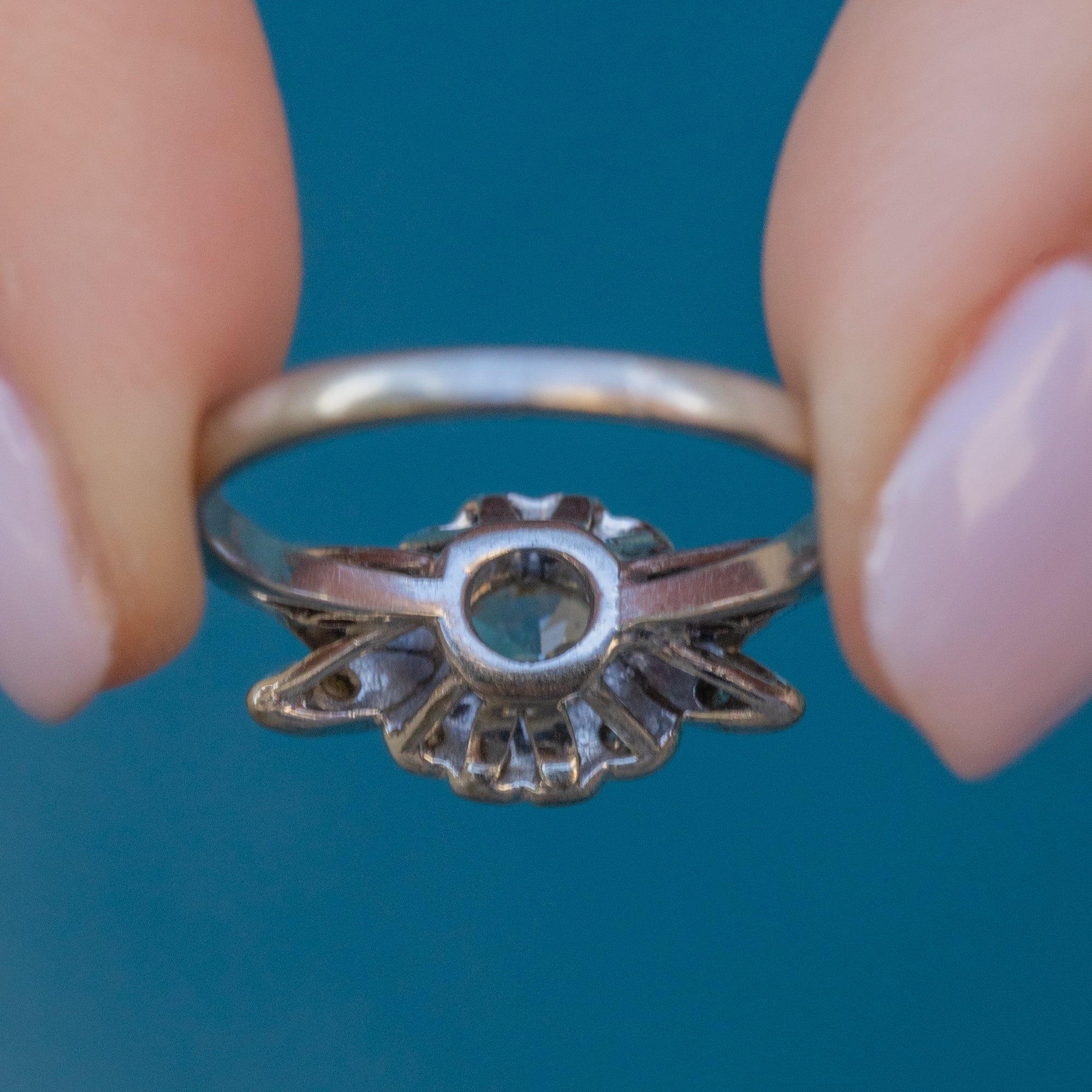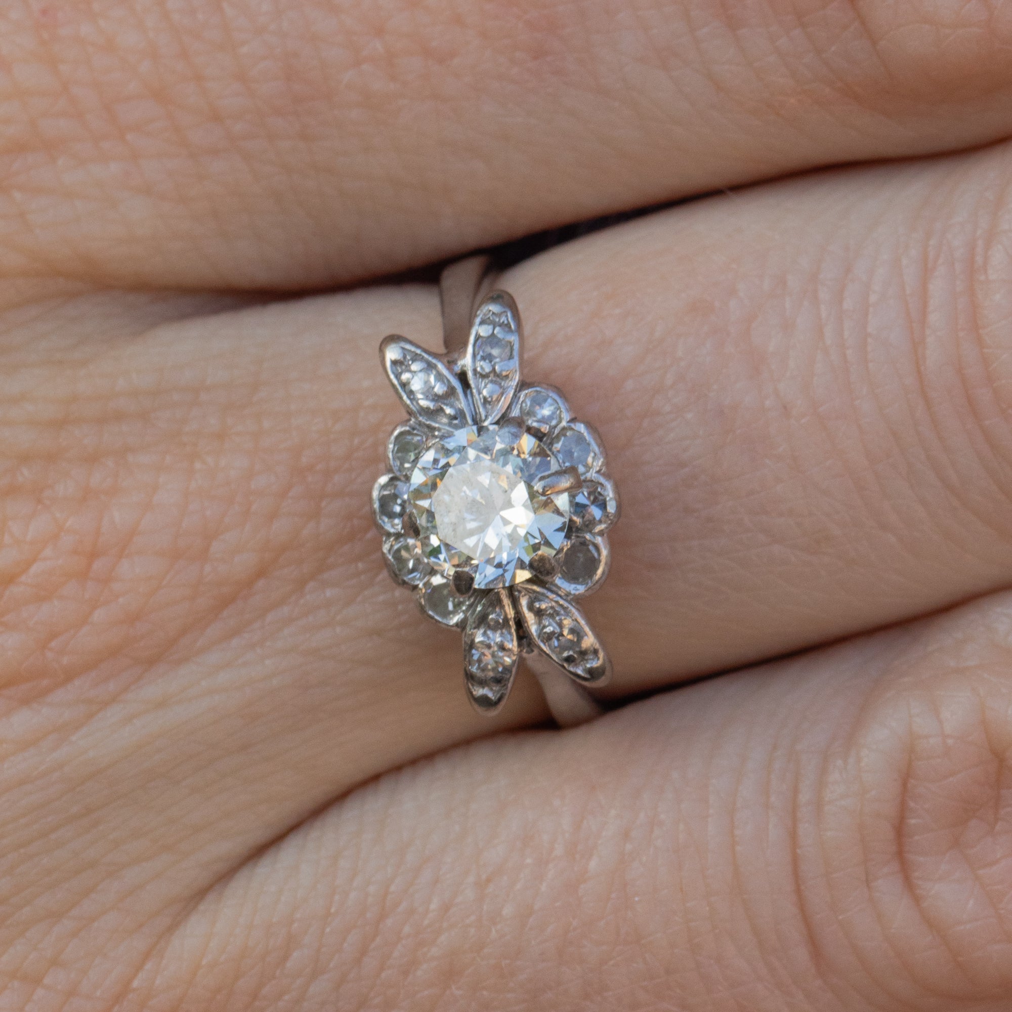 MATERIALS: Tests as 18ct White Gold, Old-European Cut Diamond.