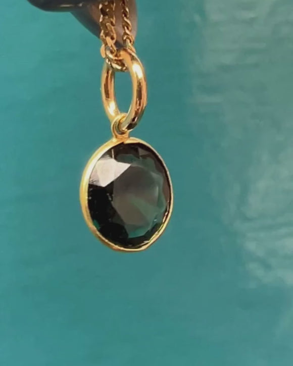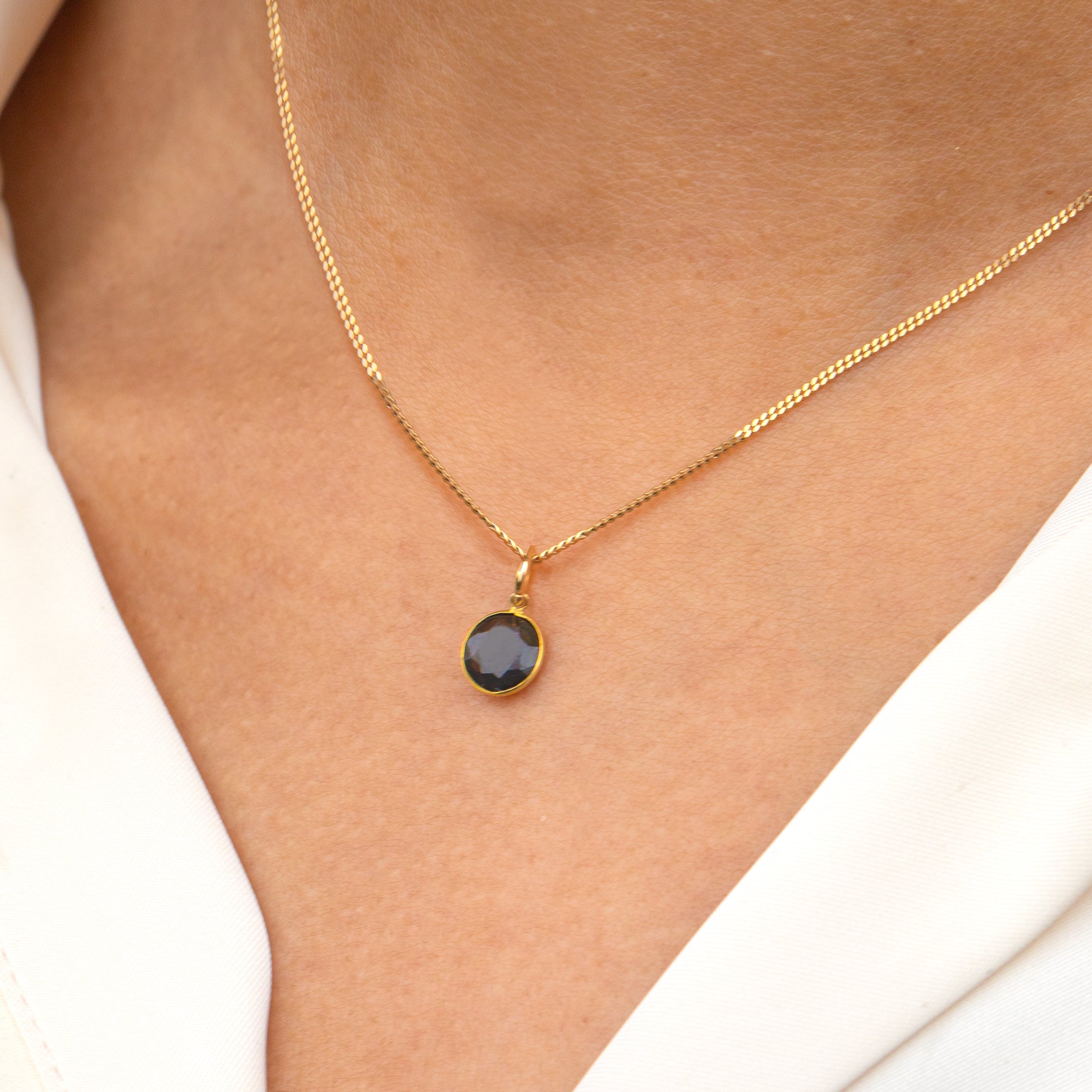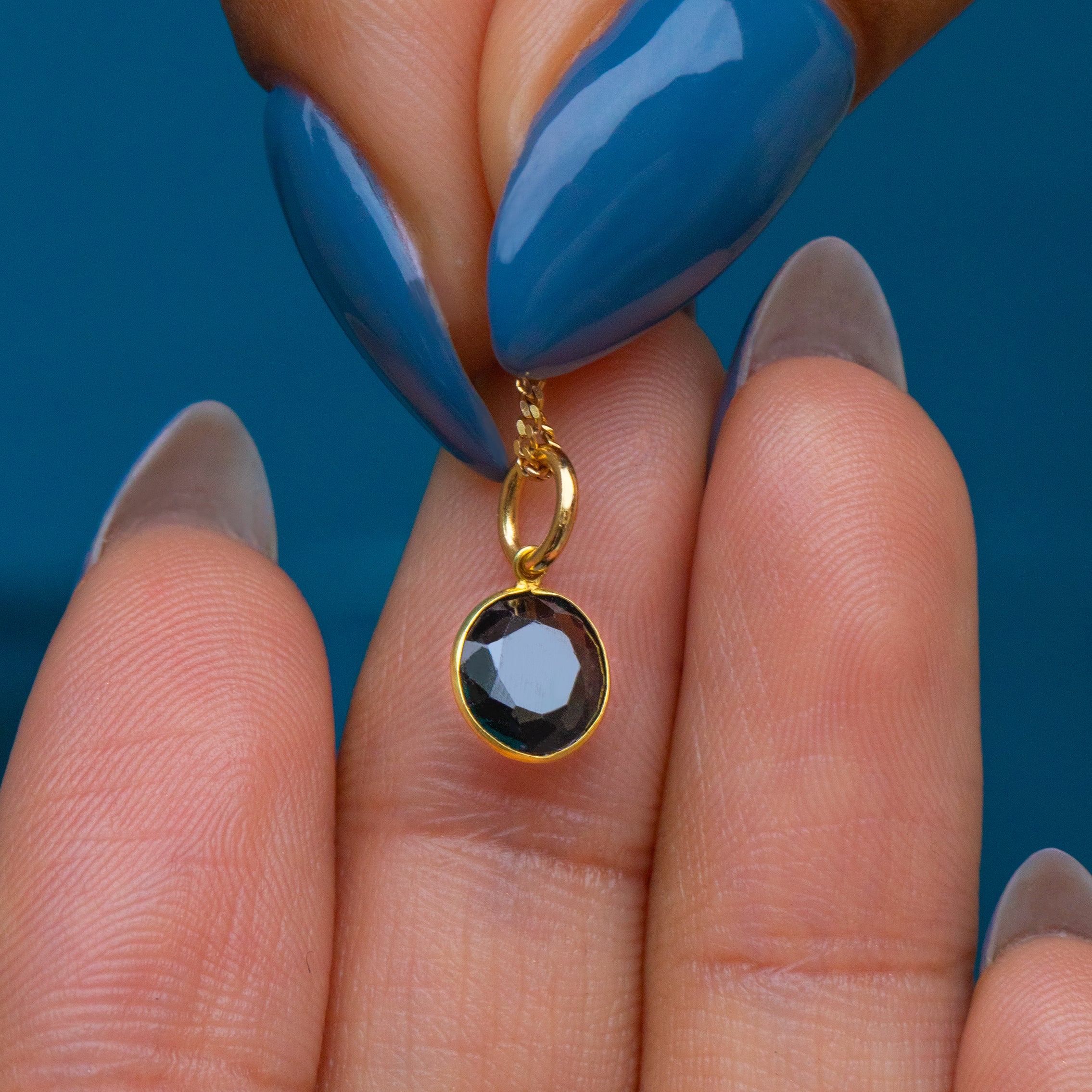How sweet is this 18ct Gold natural dark blue Spinel bezel-set charm?! Her natural Spinel flaunts midnight blue hues, complimented by the buttery tone of the 18ct Gold bezel setting.
