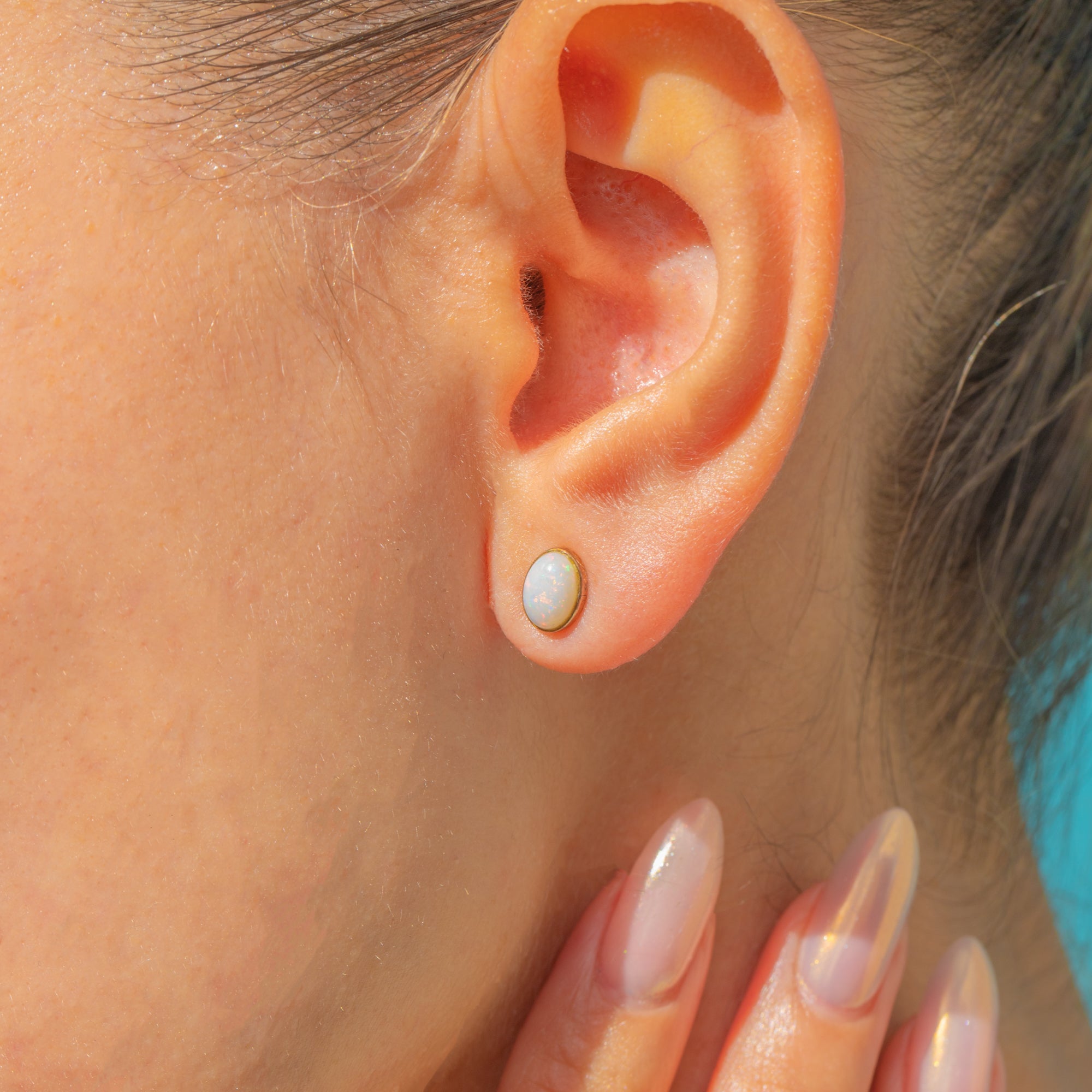 The stones are bezel-set for a sleek, modern finish, offering both security and elegance. Stamped “750” on the butterfly backs, these earrings are a classic design that allows the natural beauty of the Opals to take centre stage.