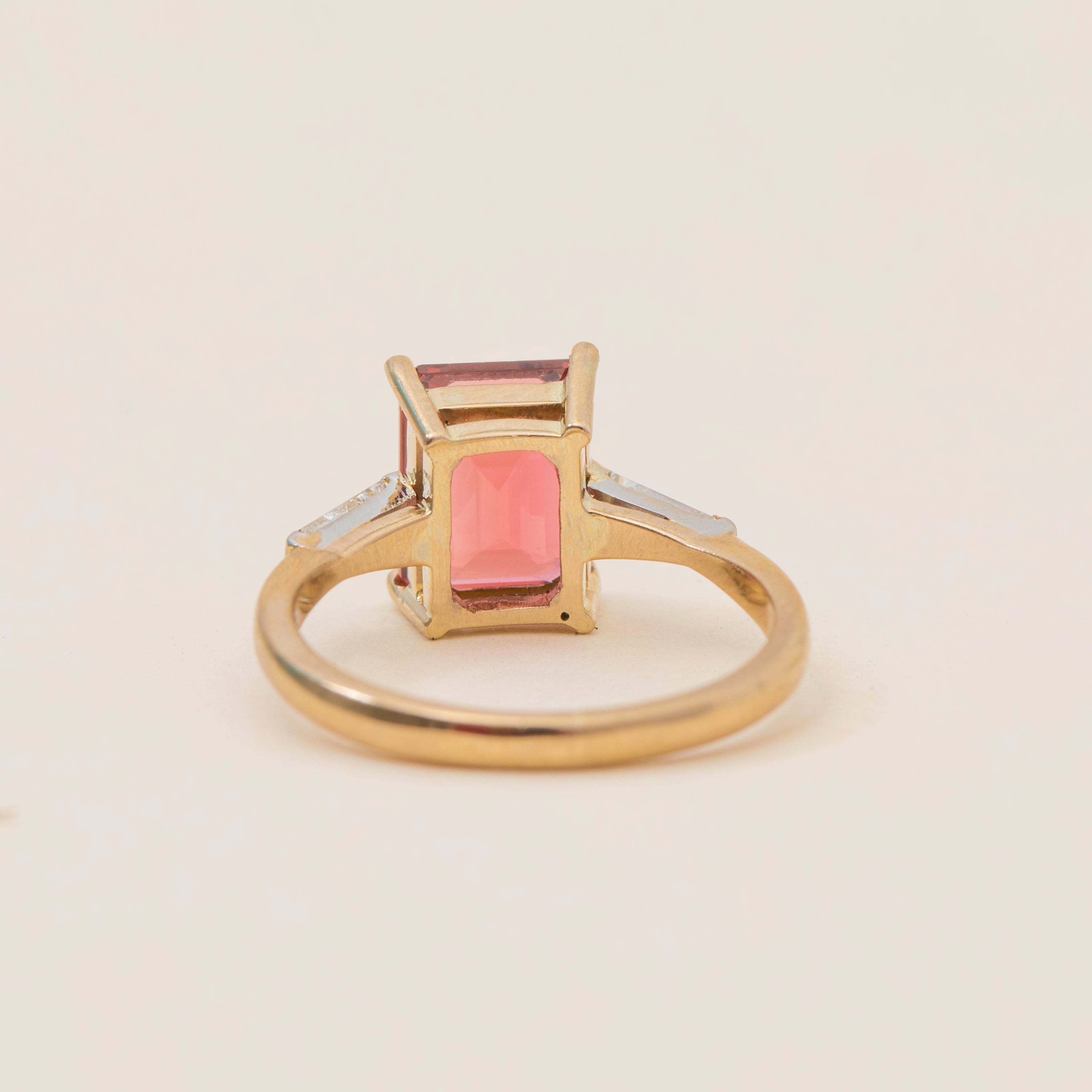 18ct Gold Pink Tourmaline Ring with Baguette Cut Diamond Shoulders