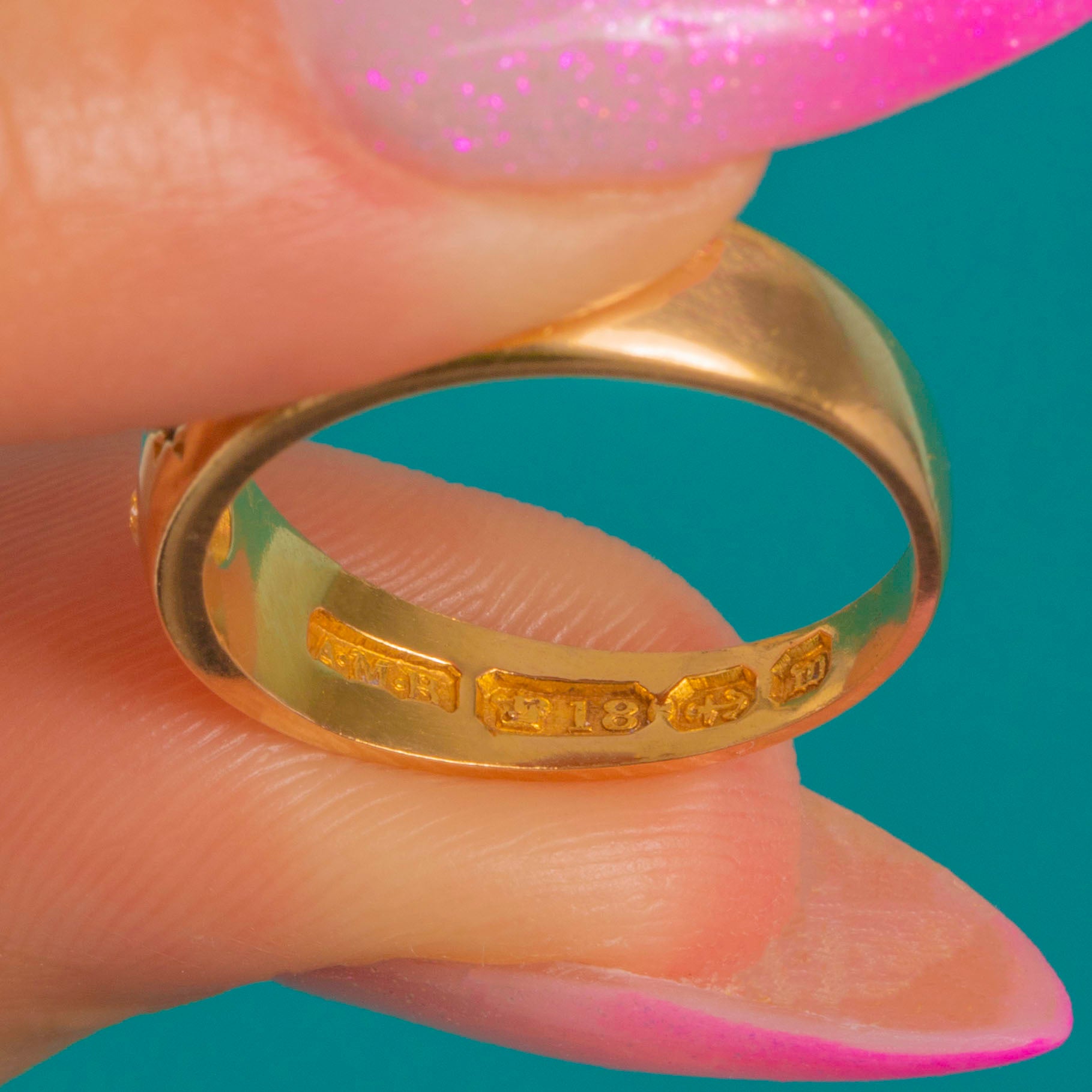 Dated Birmingham 1886, its smooth, gently domed band glides on the finger, while the Sapphire and twinkling Diamonds offer a chic pop of colour and light. A timeless everyday icon with that unmistakable 19th-century allure.