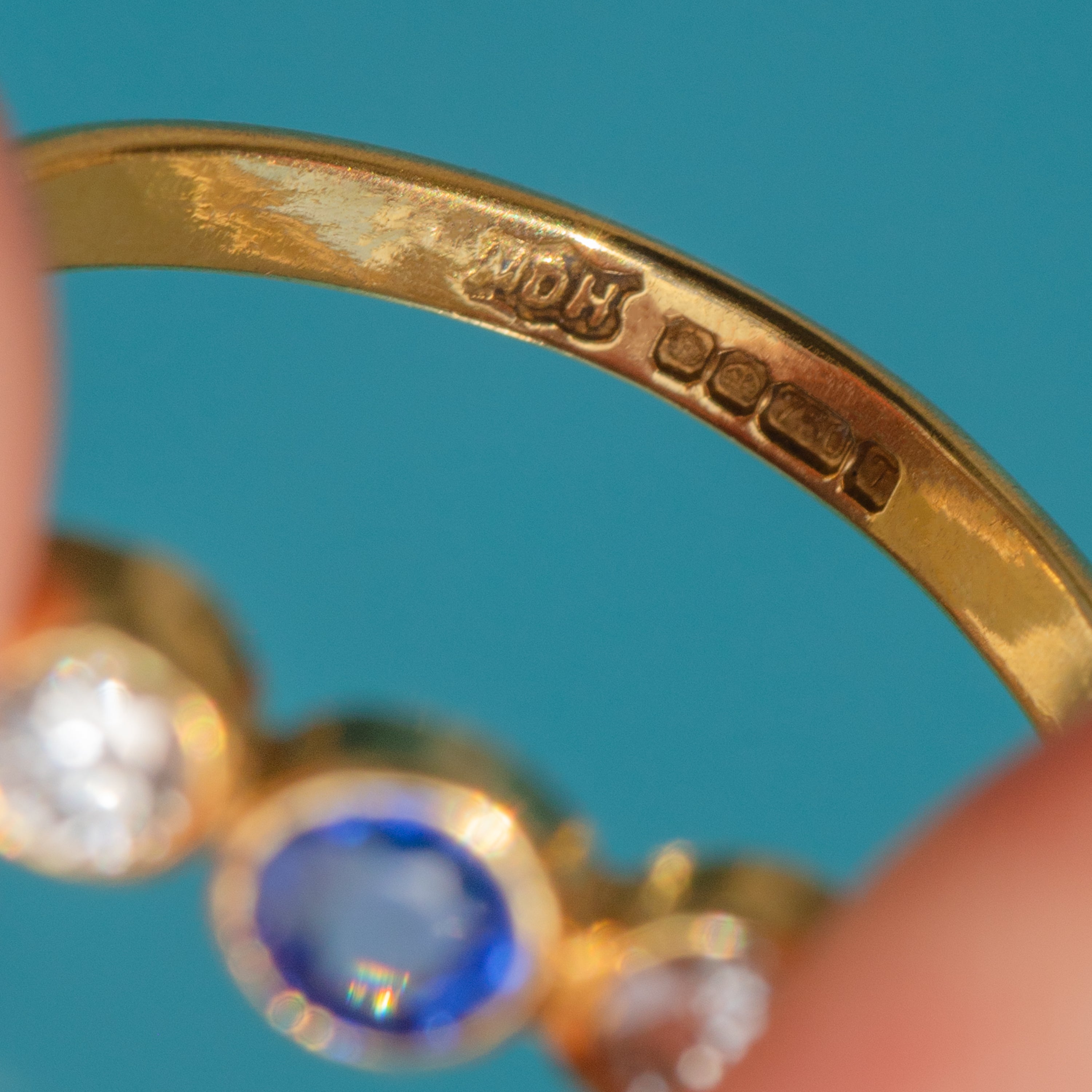 MATERIALS: 18ct Gold, Sapphire (0.15ct), Diamonds (0.15ct).