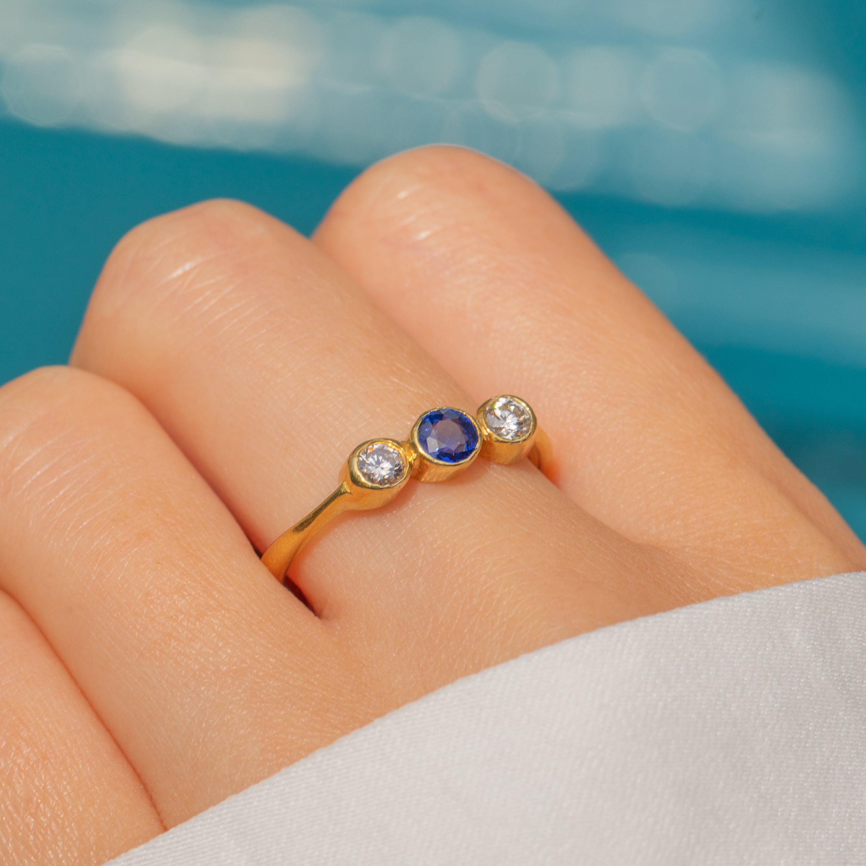 18ct Gold Sapphire Diamond Trilogy Ring Item added
