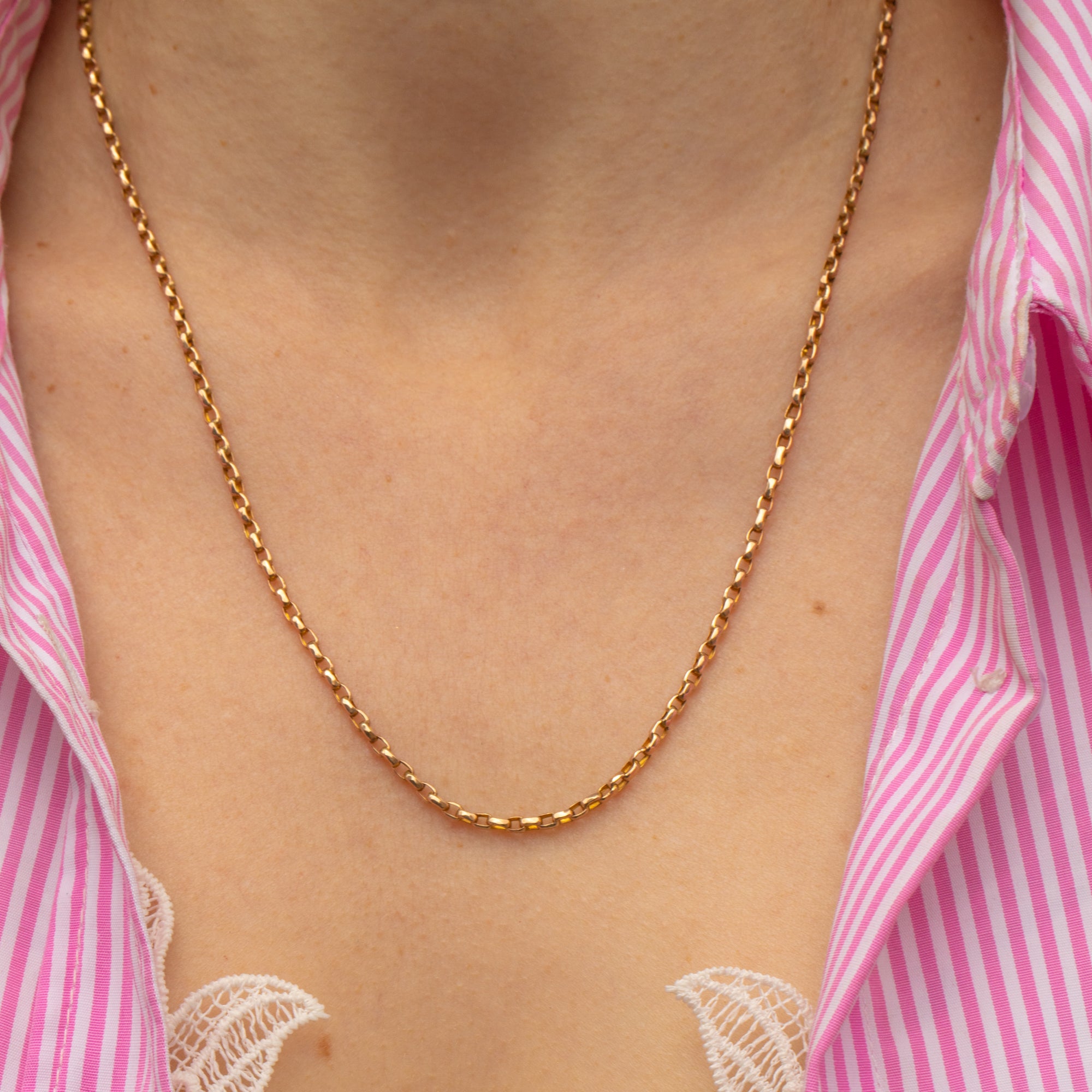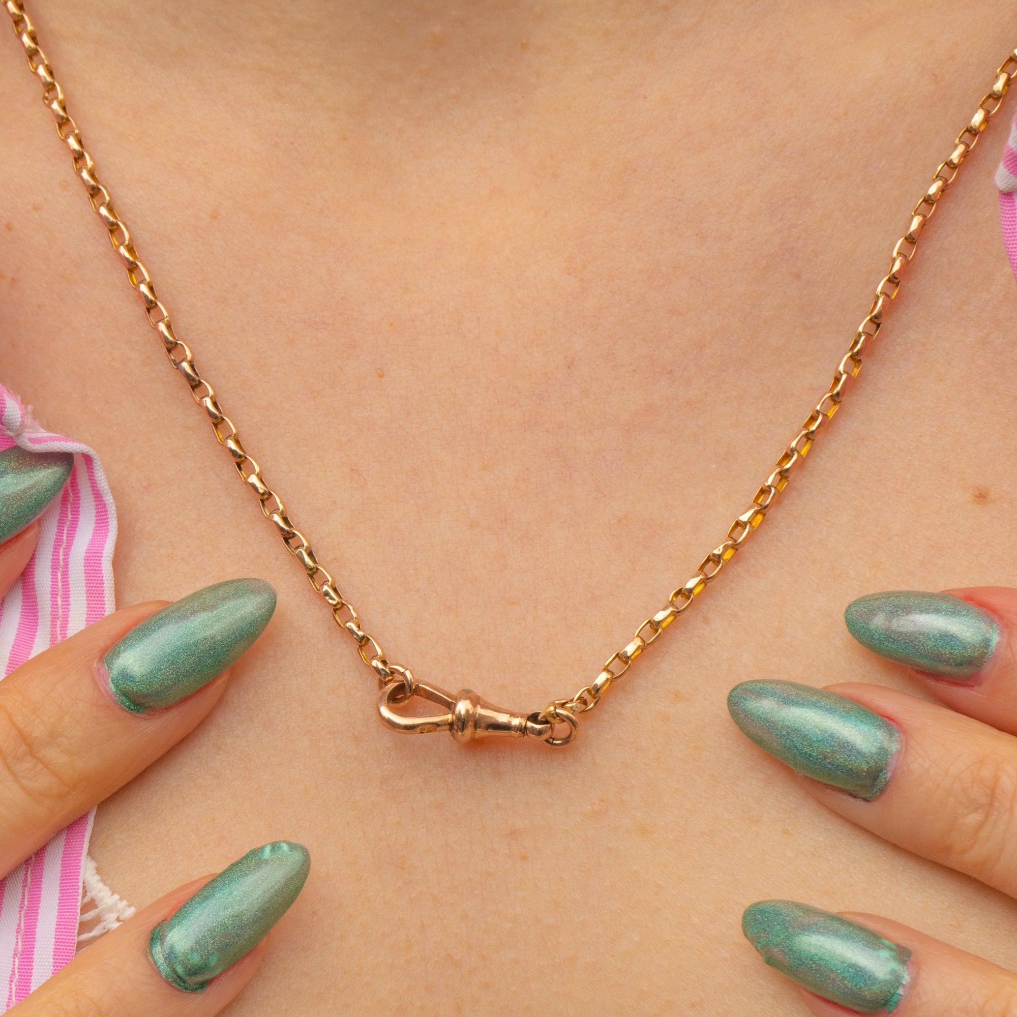 At 19.5" long, this Victorian Gold chain will bring that slightly longer length to your necklace stack. With a chunky dog clip to finish, you can easily suspend your favourite charm or pendant from it for a personal touch!