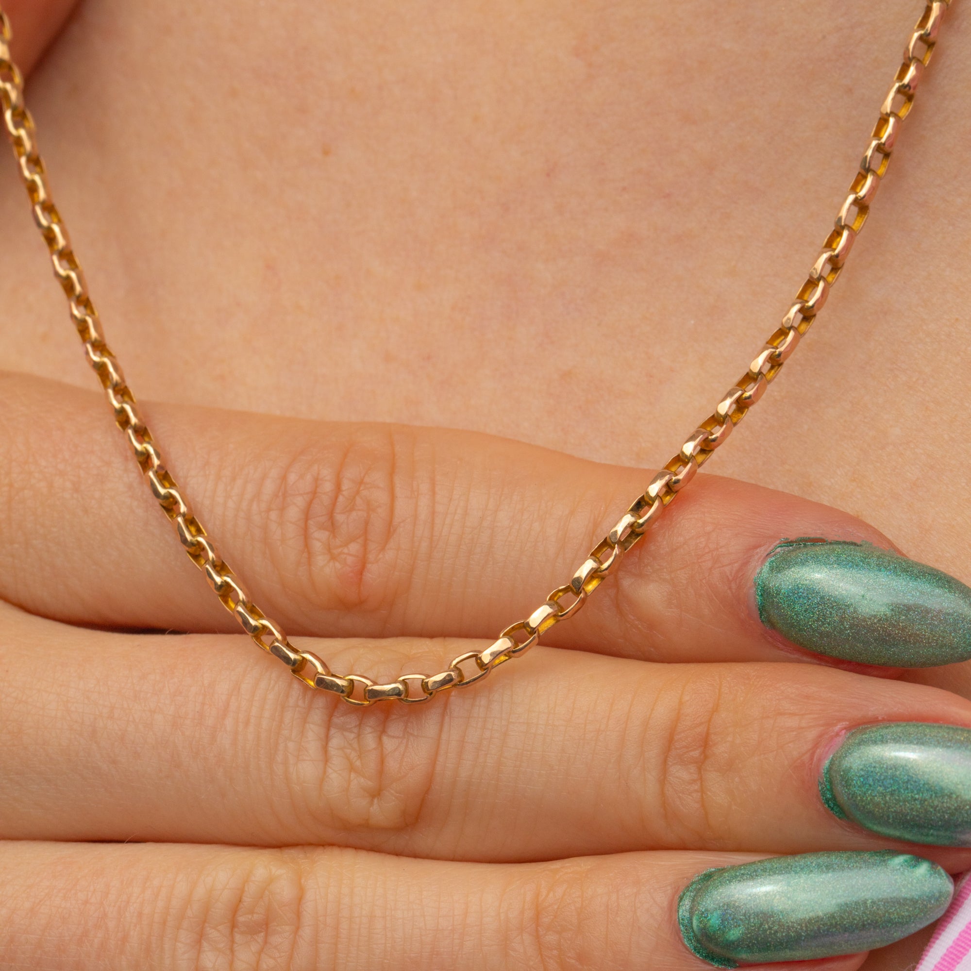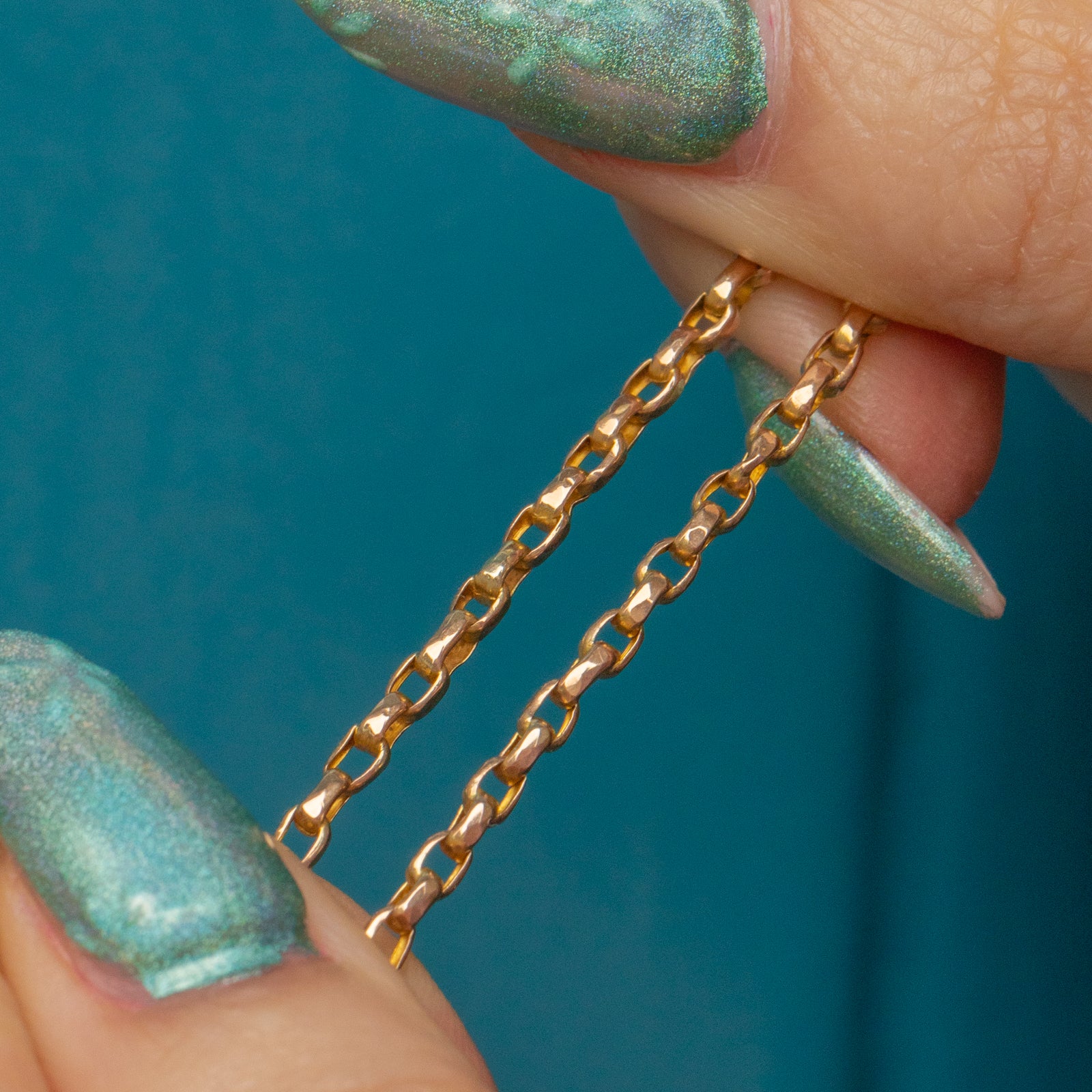 This splendid antique 9ct Gold belcher chain will make a fine addition to your collection! Honey hues trickle from one rectangular link to the next, with their softly faceted forms catching the light beautifully.