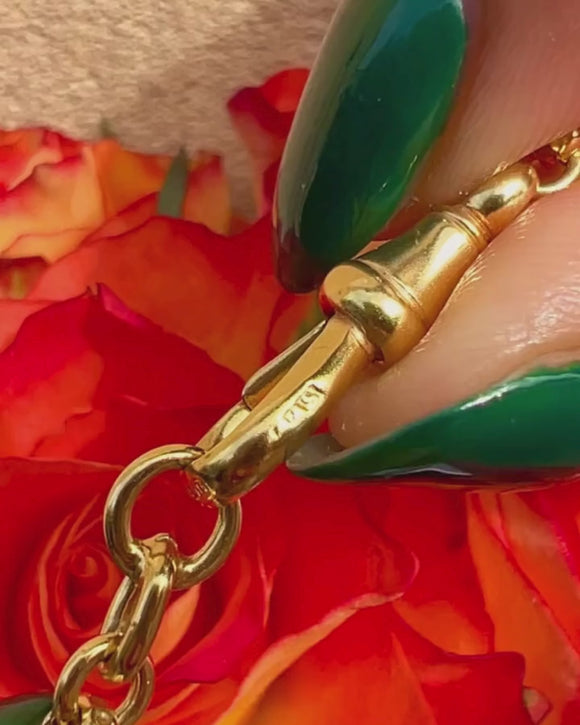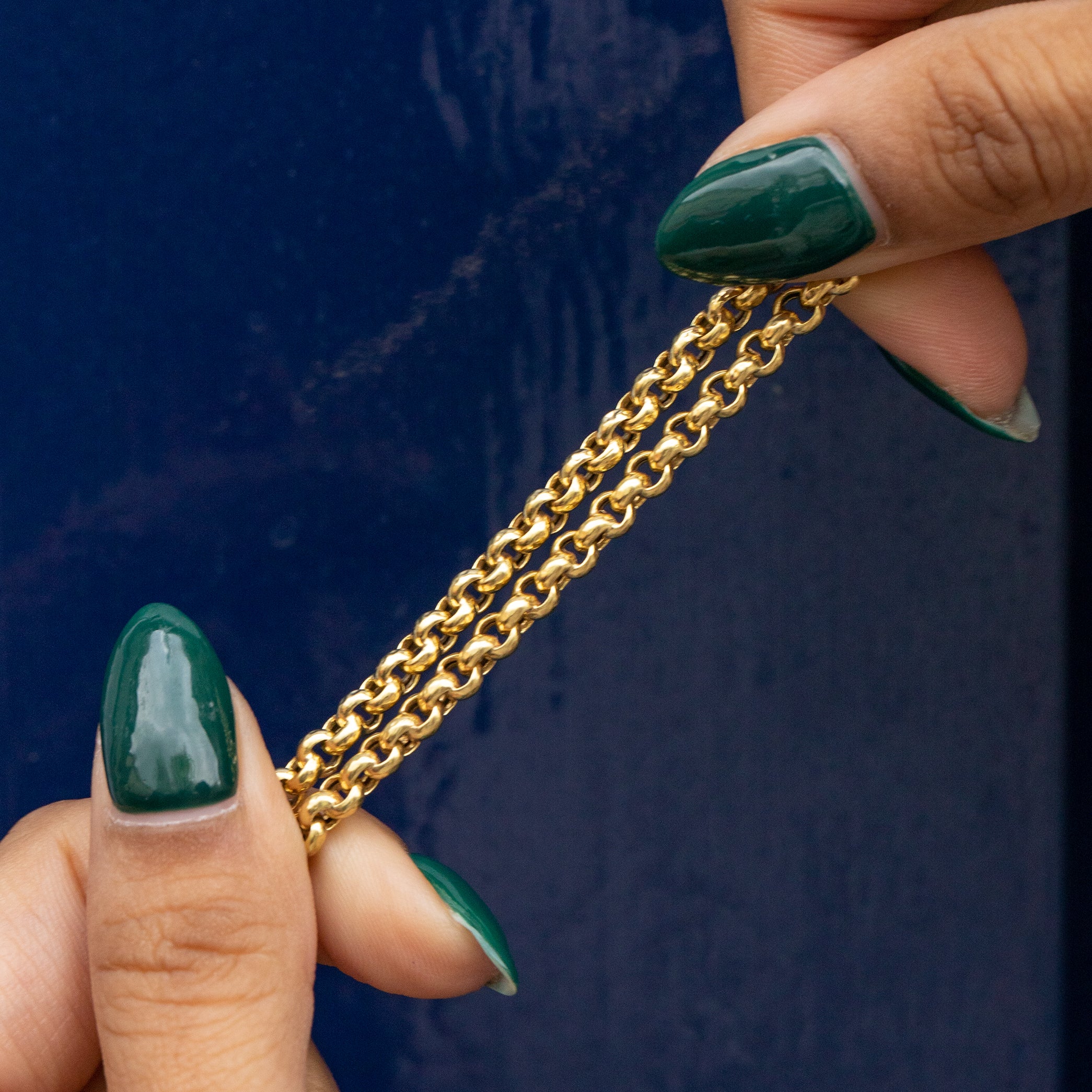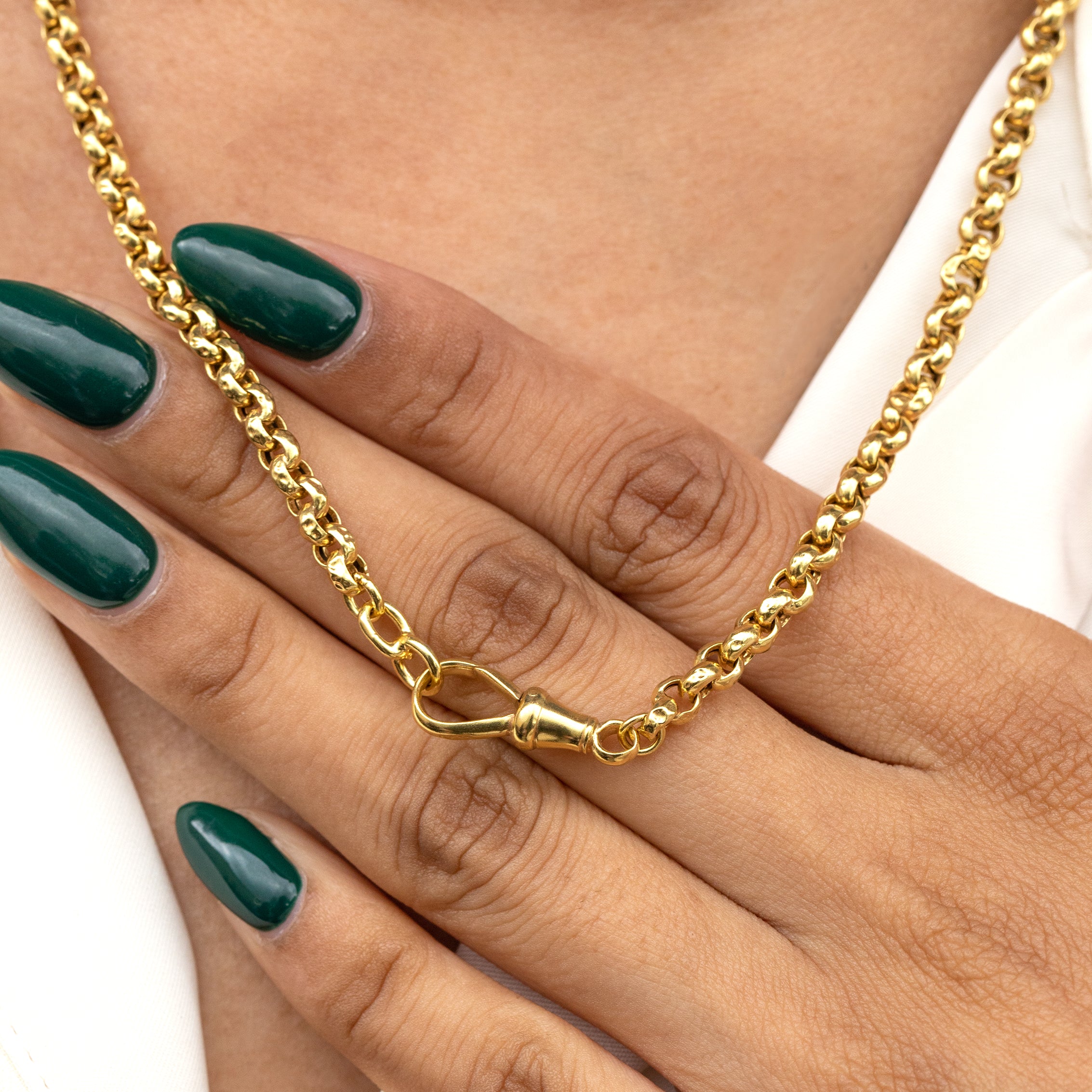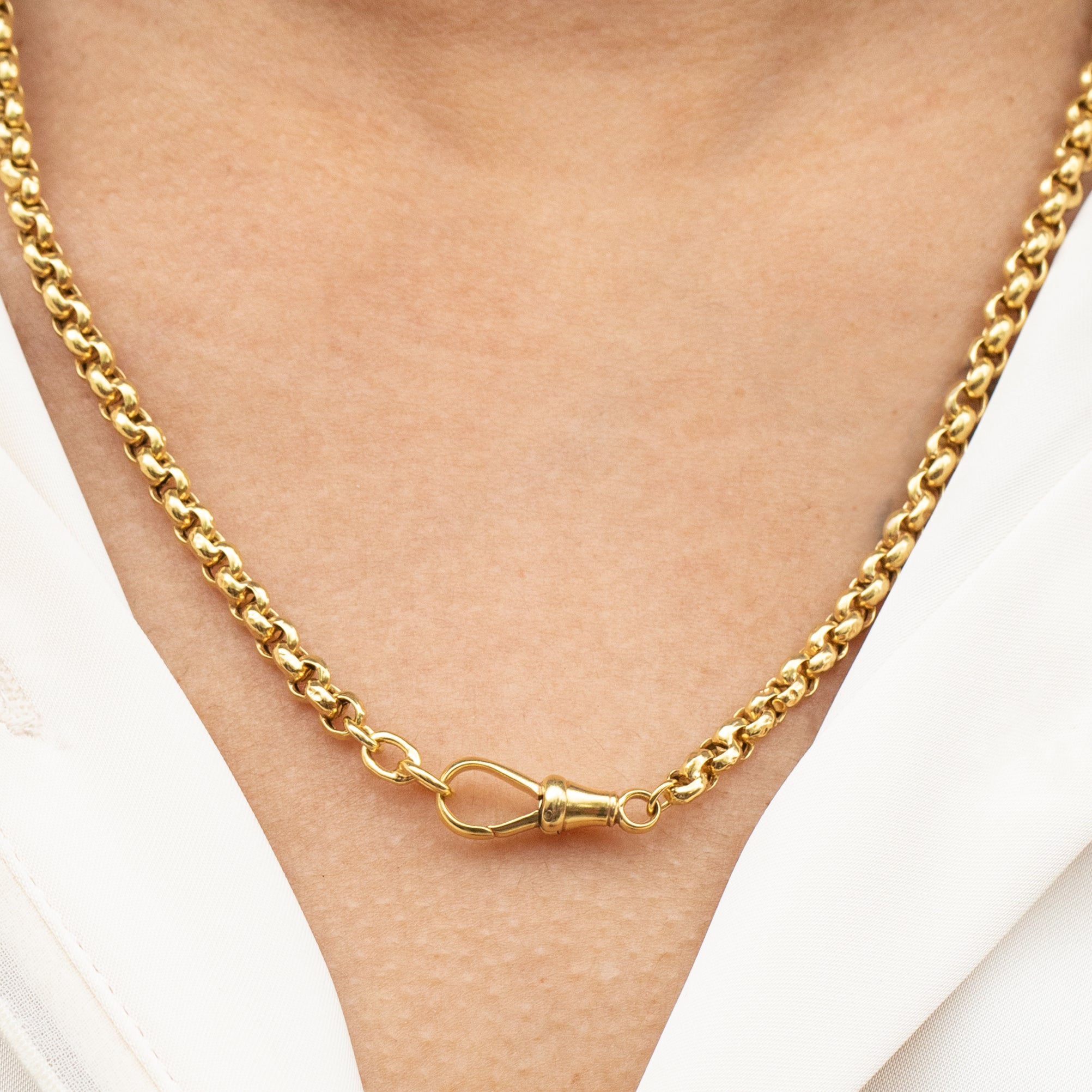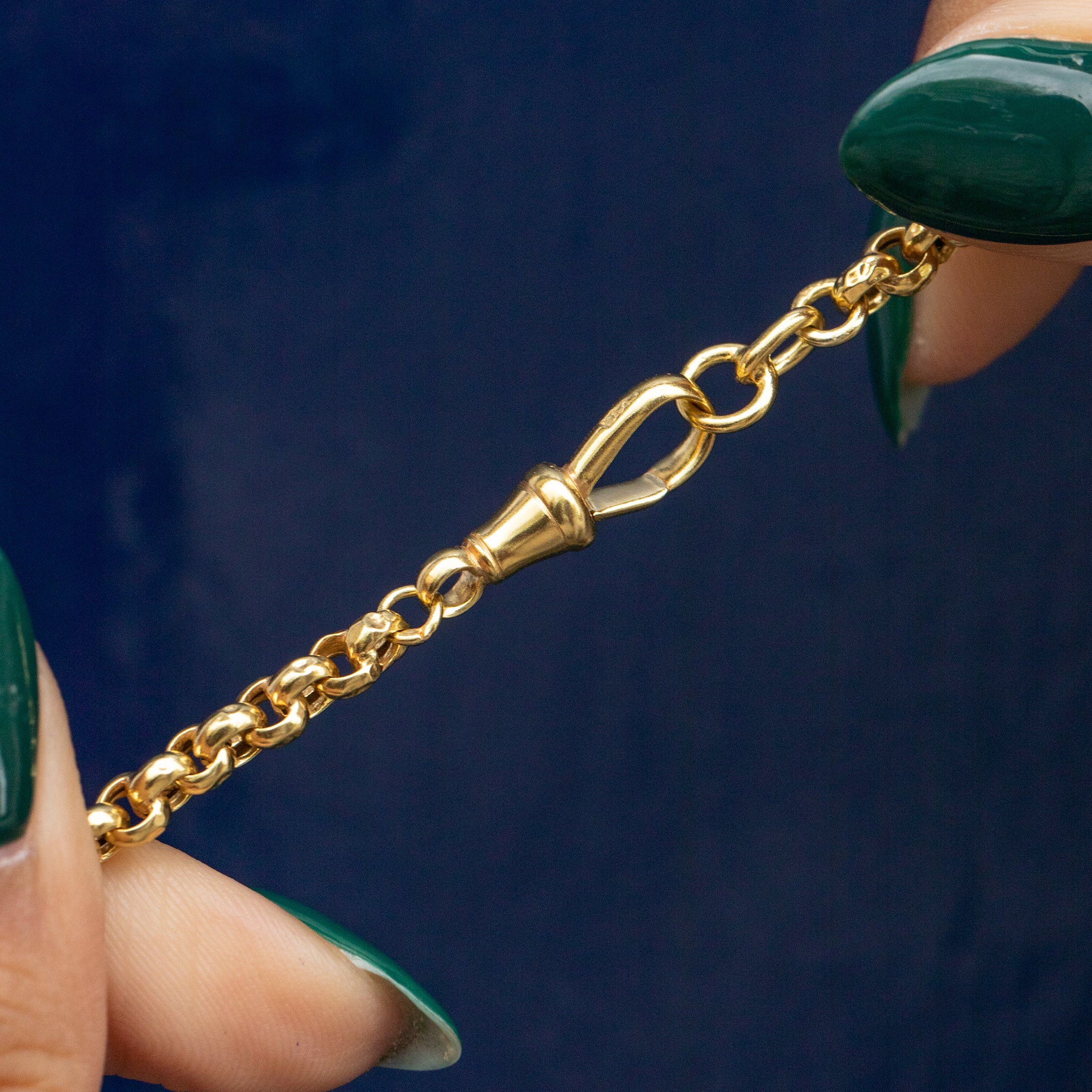 At 19" long, this Victorian Gold chain will drape elegantly across your collarbones, with her curvaceous chunky links bringing depth and texture to any ensemble. Crafted entirely from buttery 9ct Gold with an authentic antique dog-clip to finish, this antique belcher chain will get you all the right kind of attention!