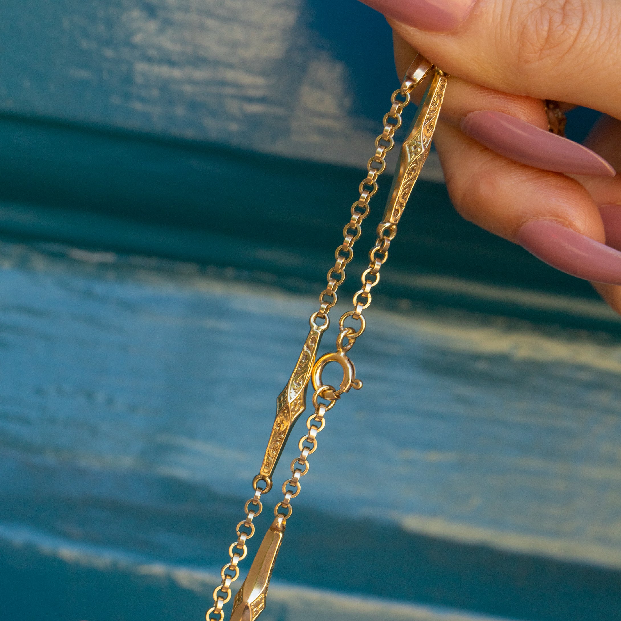 This antique fancy Gold chain will elegantly drape across your collarbones and is the perfect standalone piece. A fine investment piece, this authentic piece of Victorian jewellery will make a wonderful heirloom, guaranteed to be admired for generations to come!