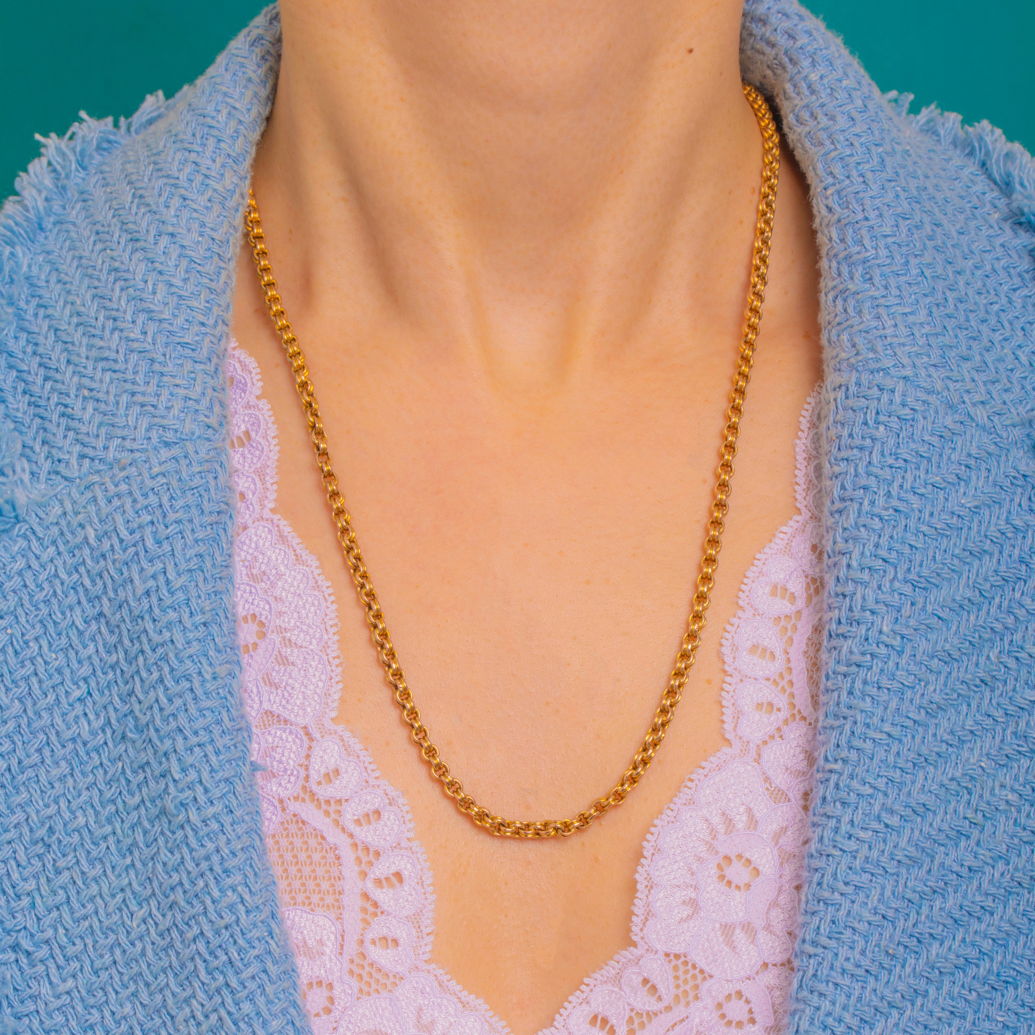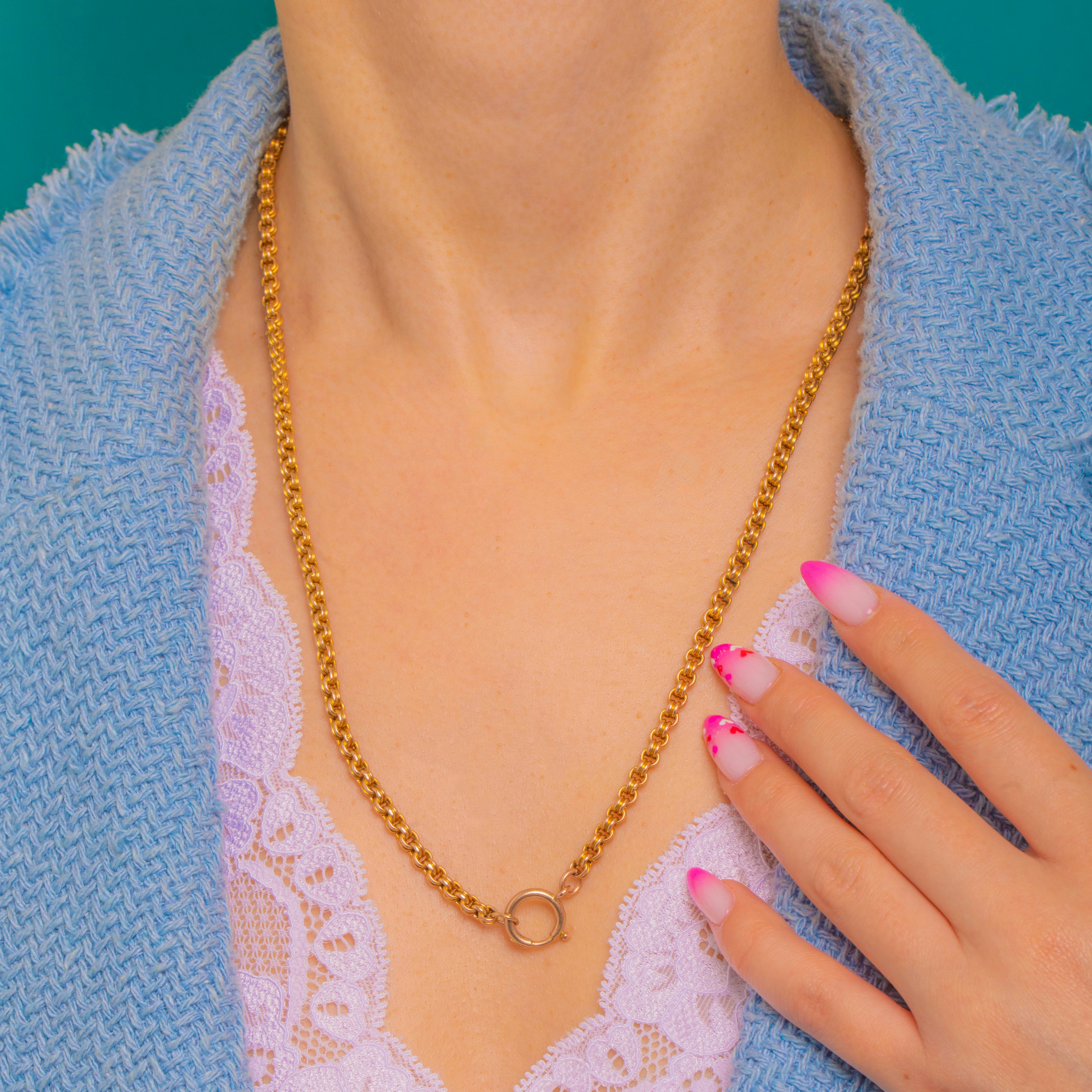 Timeless and effortless, this Victorian double Belcher chain is crafted in glowing 9ct Gold and finished with a wonderfully proportioned large bolt ring clasp. The rounded Belcher links give a smooth, tactile drape and a classic silhouette that works beautifully solo or layered.