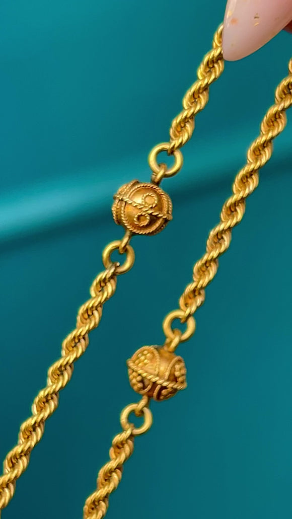 122 cm Leuchtende 15ct Gelbgold Kordel-Longuard-Kette, Cannetille-Orb-Enden