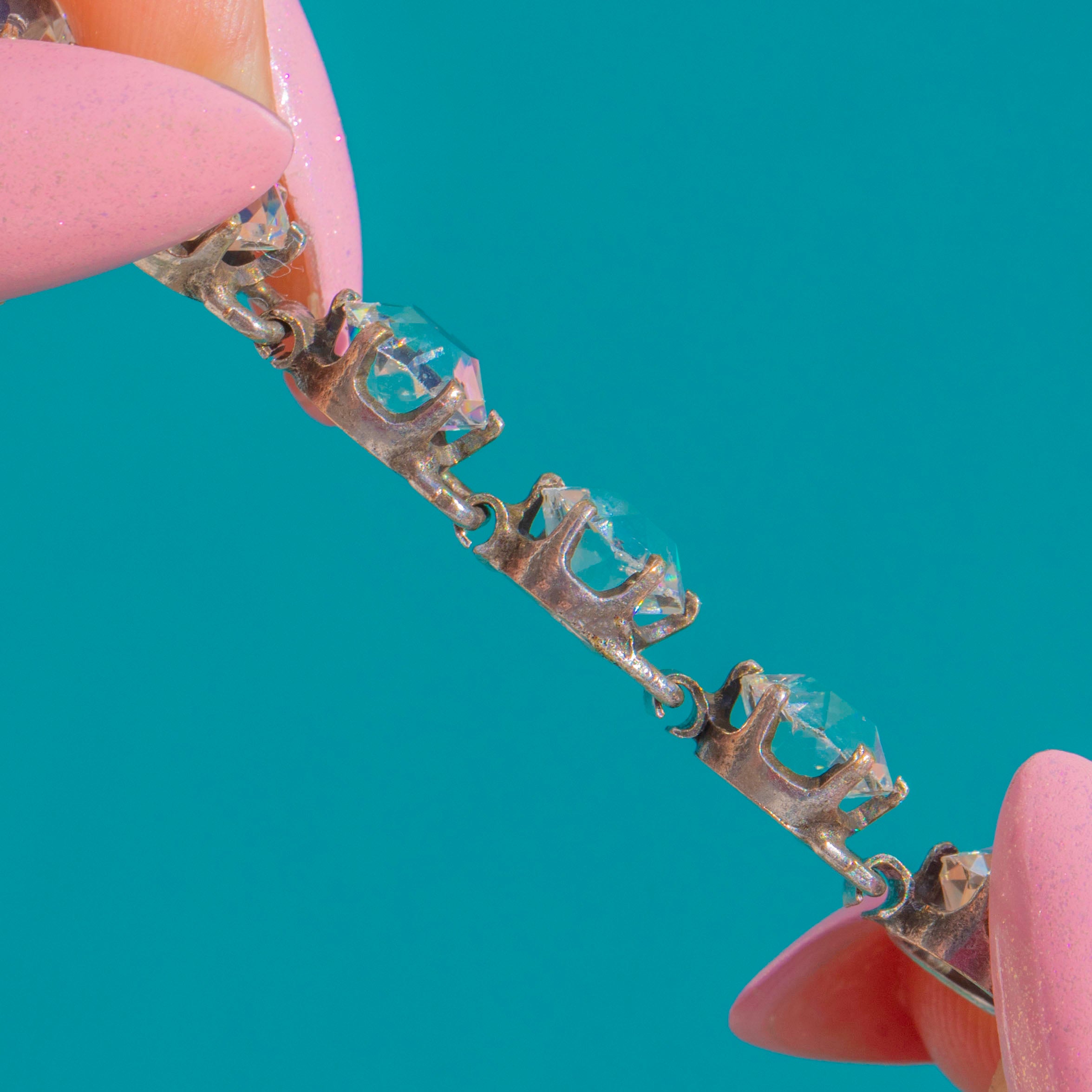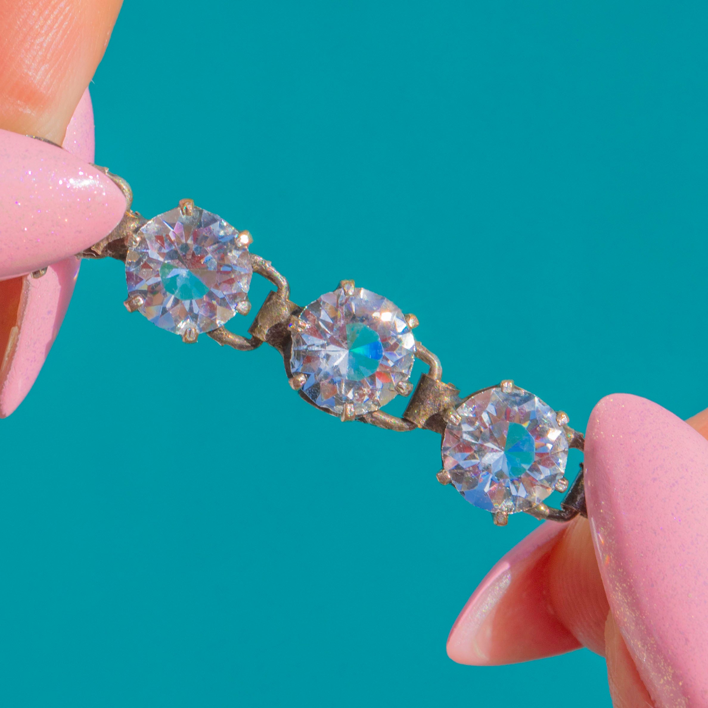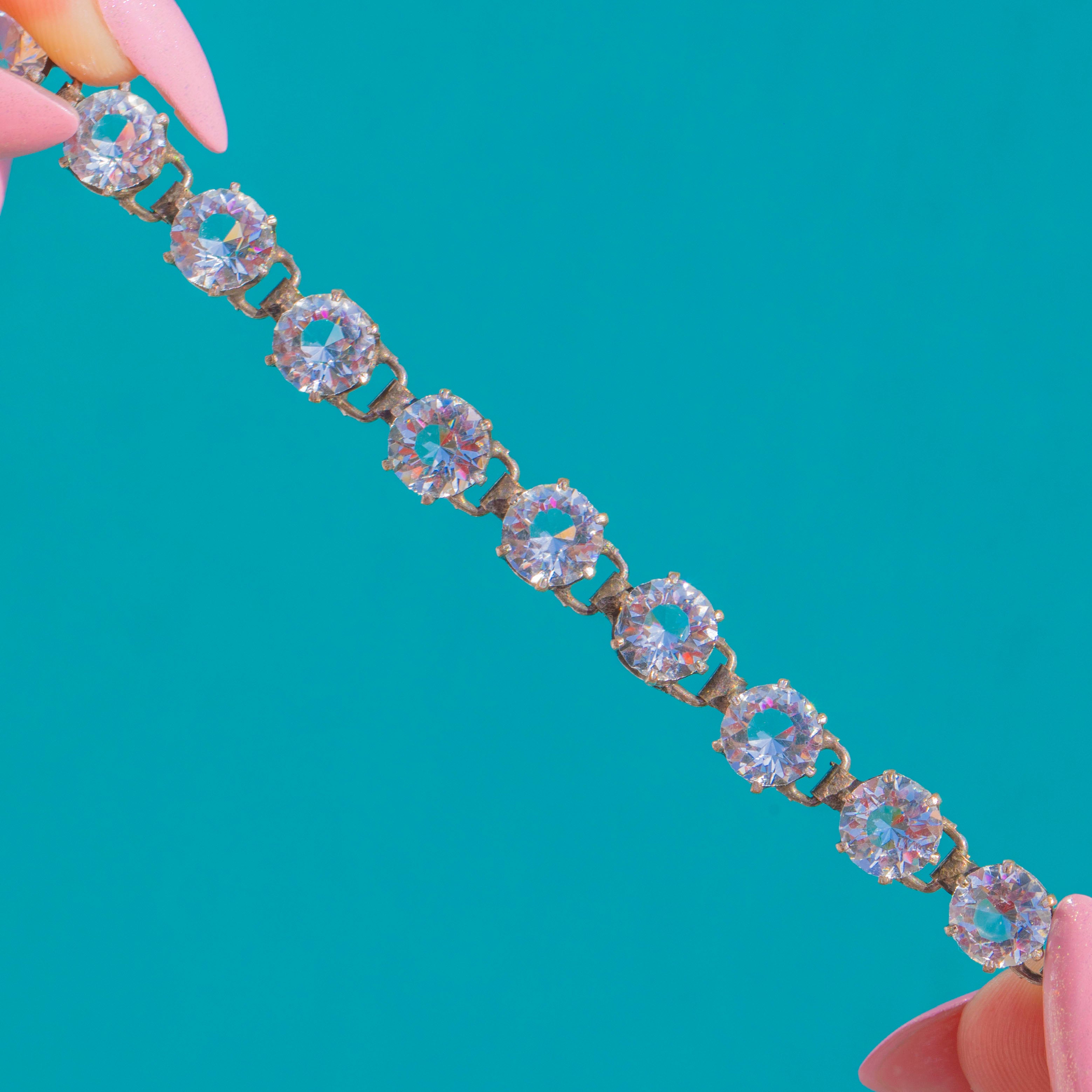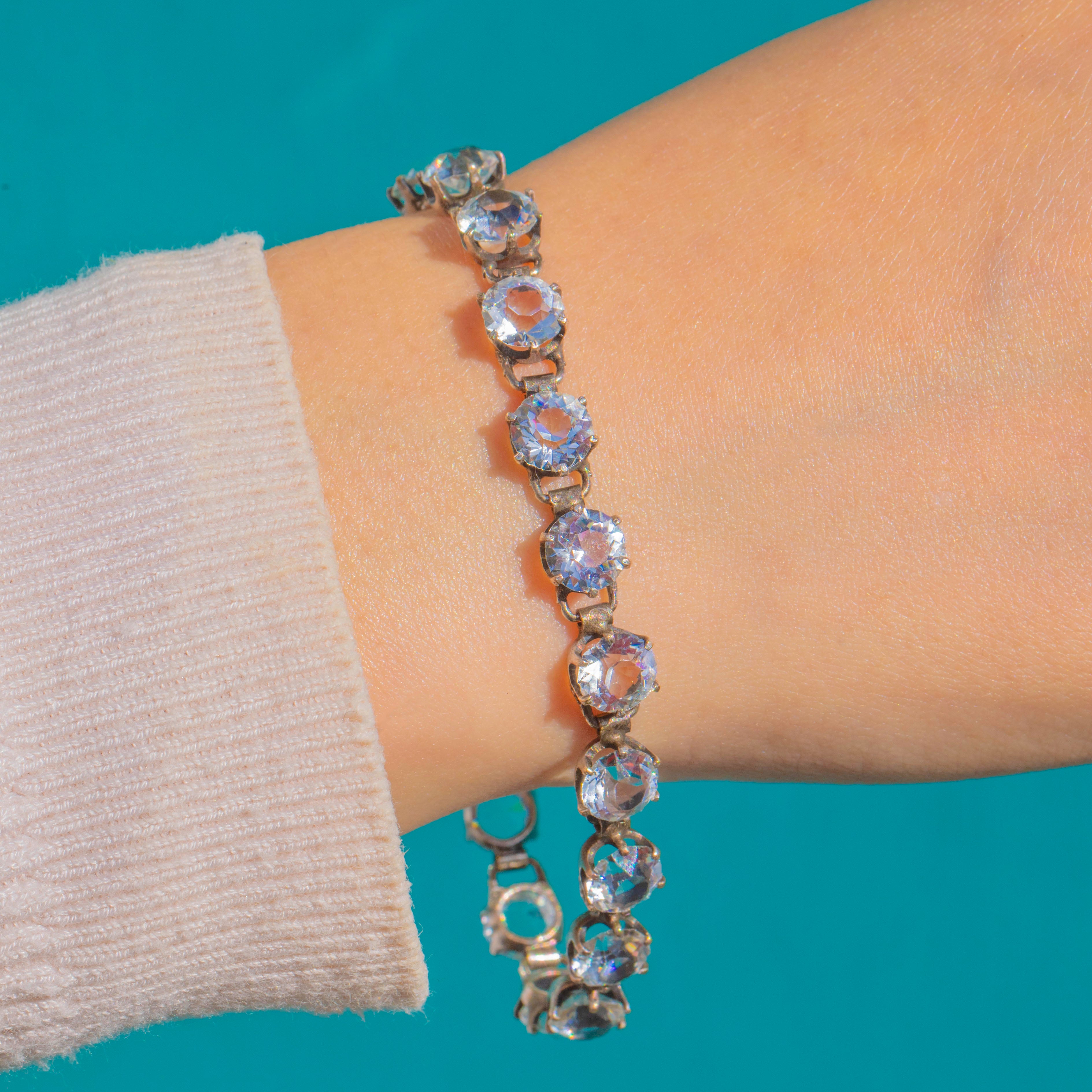 7" Art Deco Silber Riviere-Armband mit weißen Paste-Steinen