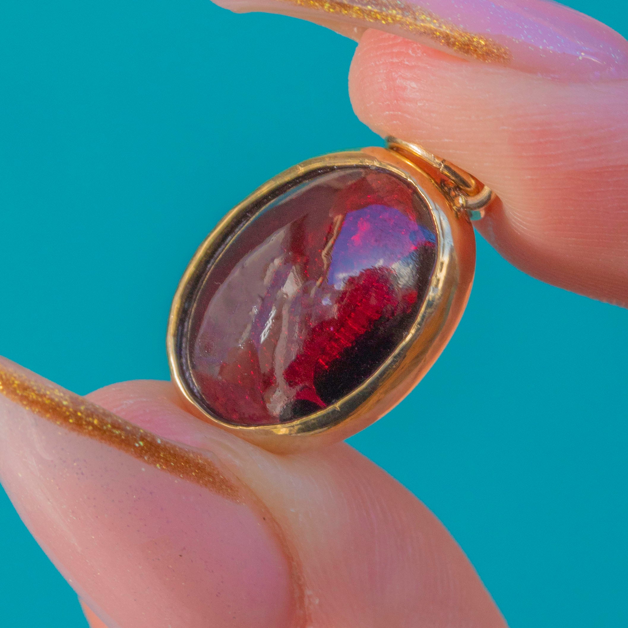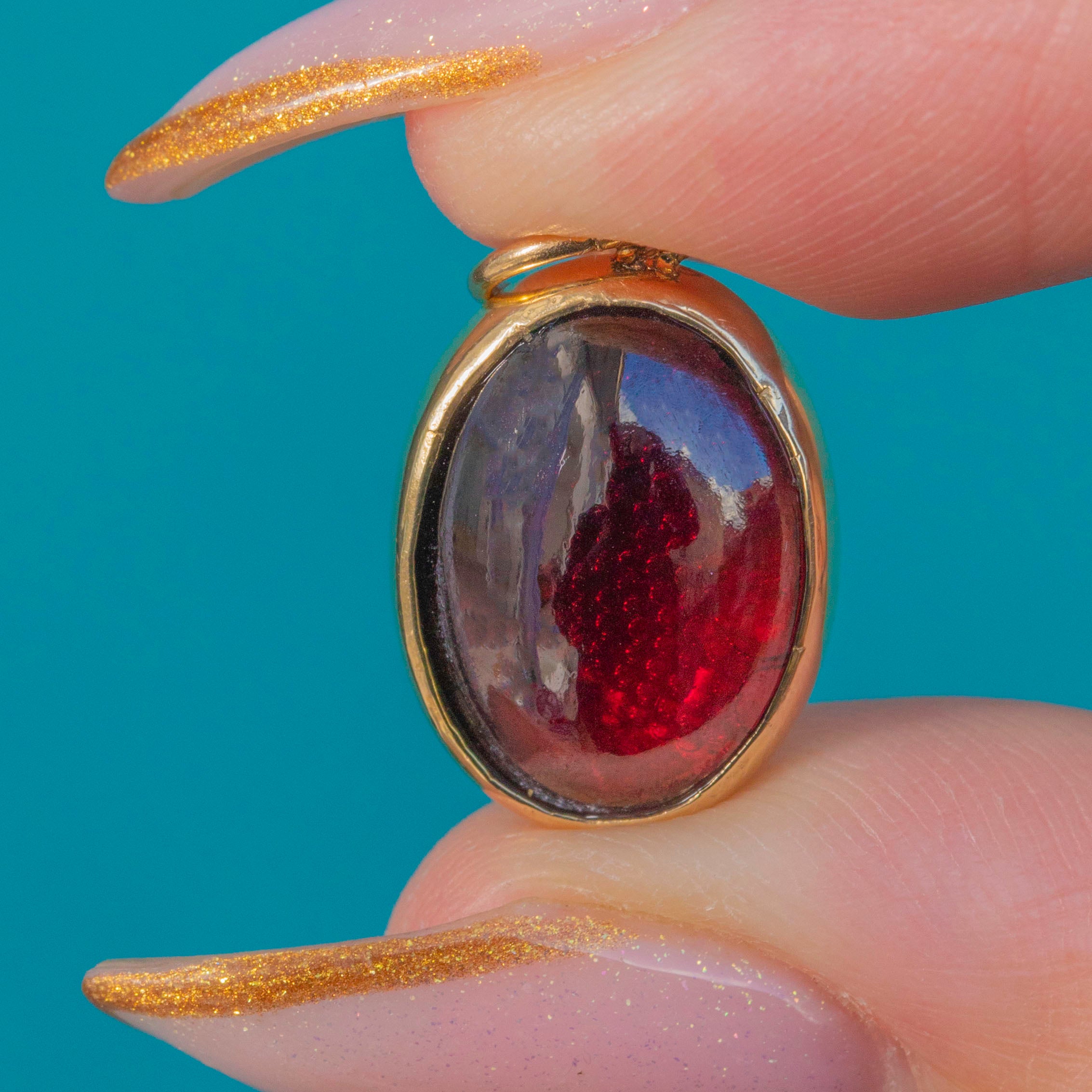 Solid 9ct Gold Bezel-Set Garnet Cabochon Charm