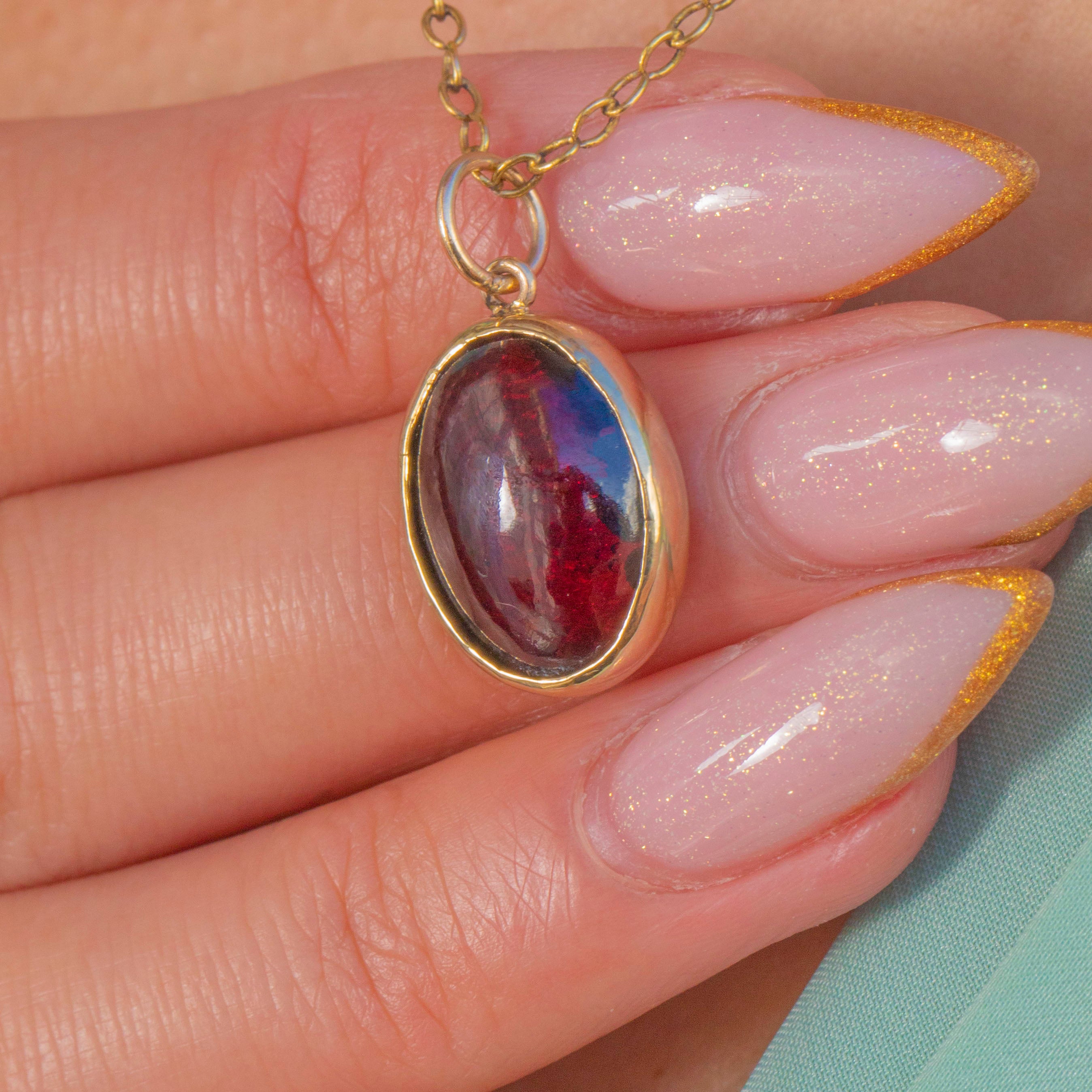 The clean oval bezel gives the Garnet wonderful presence on the neckline, while the fully hallmarked 9ct Gold frame adds warmth and durability. A charming and versatile piece to style alone or layered with your favourite chains.