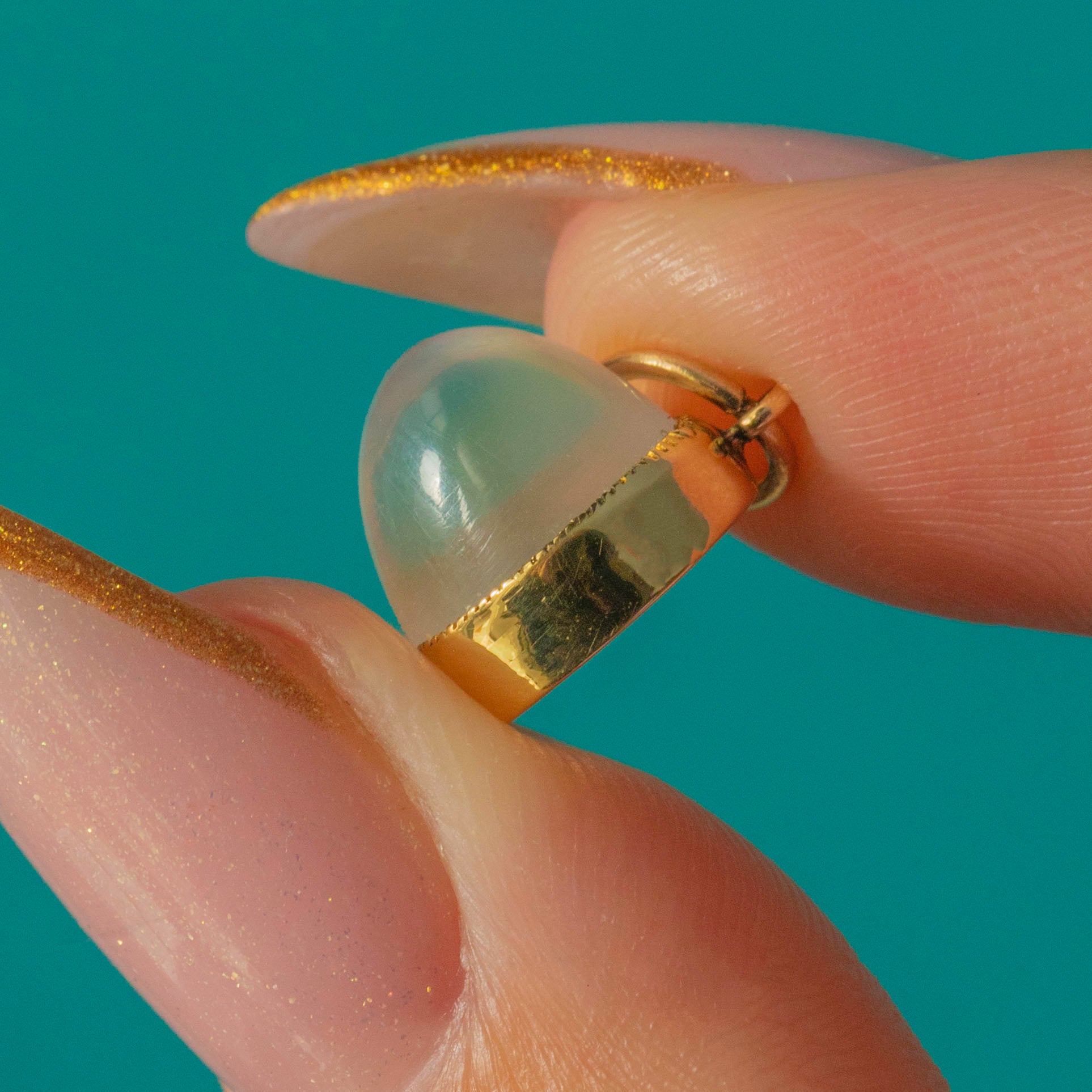 EXCELLENT: The Moonstone cabochon is smooth and glossy with no chips, cracks or notable abrasions, and displays lovely adularescence. The 9ct Gold bezel and jump ring are secure with only light surface wear consistent with age. A well-preserved Vintage pendant, ready to wear and enjoy.