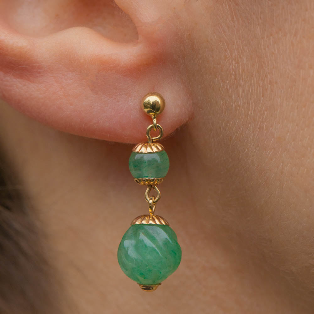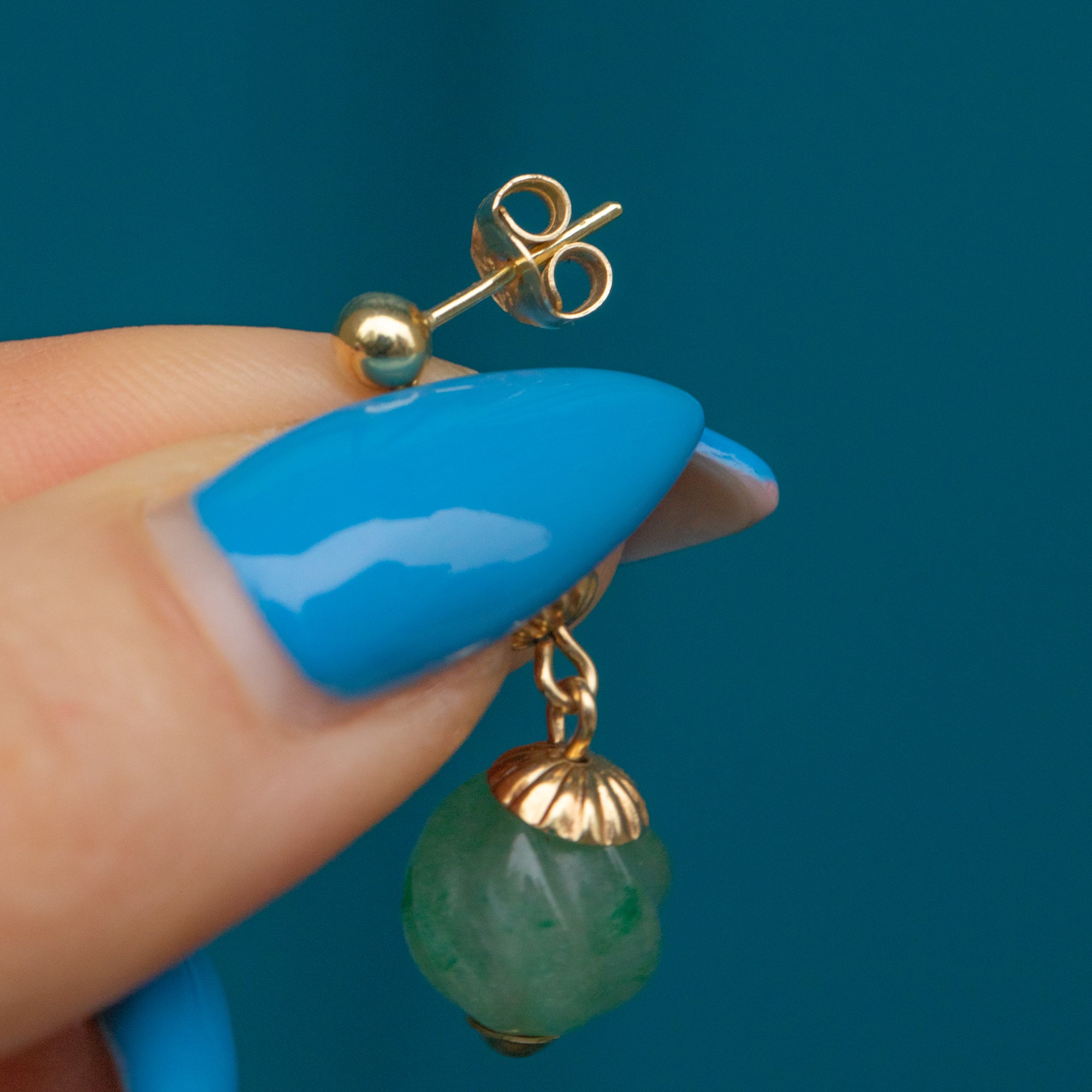 Each Jade bead is framed by decorative 9ct Gold details, their buttery hue perfectly complementing the forest green gems to create an elegant colour palette. With bundles of vintage charm, these Jade earrings will be your go-to pair when you want to spruce up your outfit!