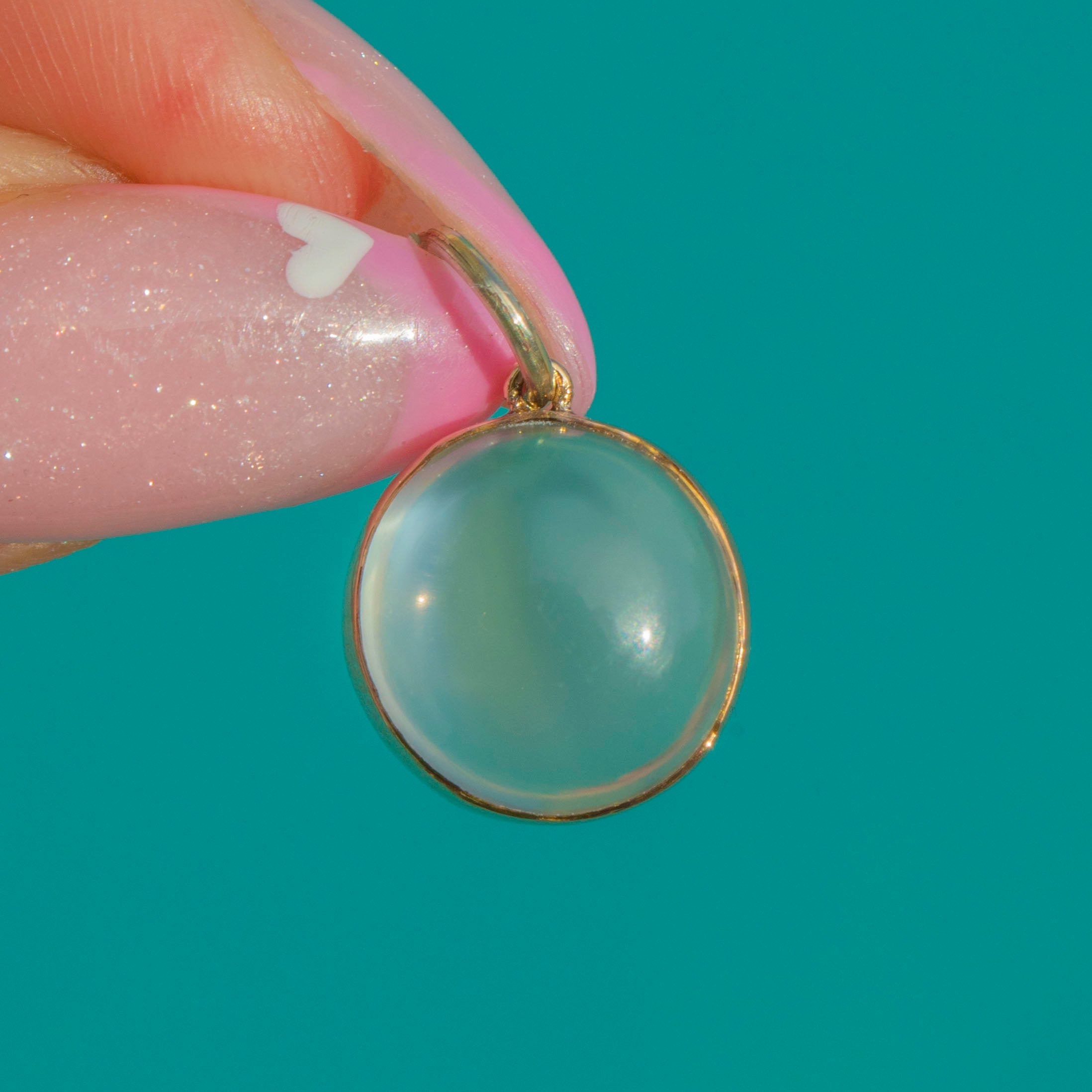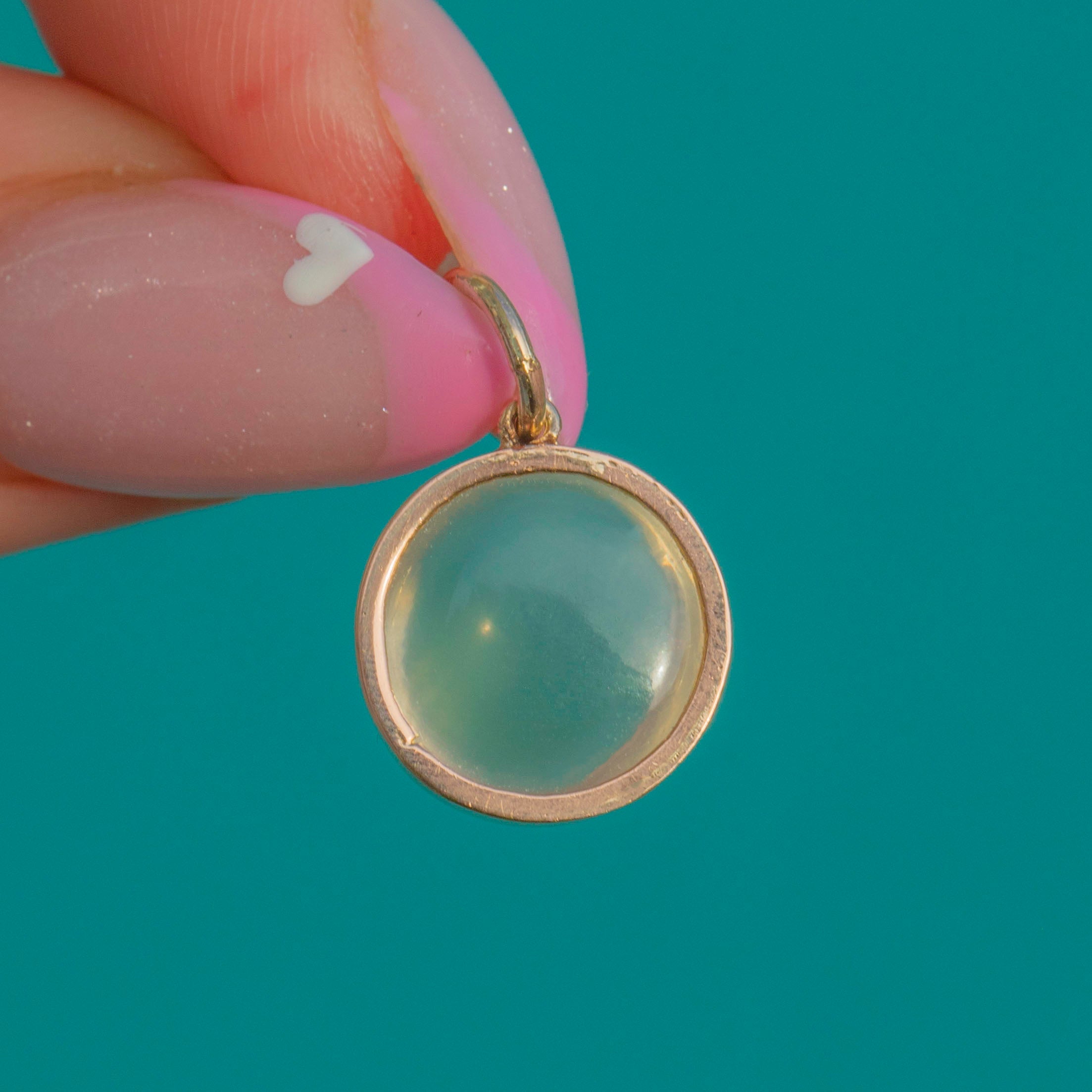 This enchanting Victorian Cat’s Eye Moonstone charm captures the magical play of light so loved in antique jewellery.