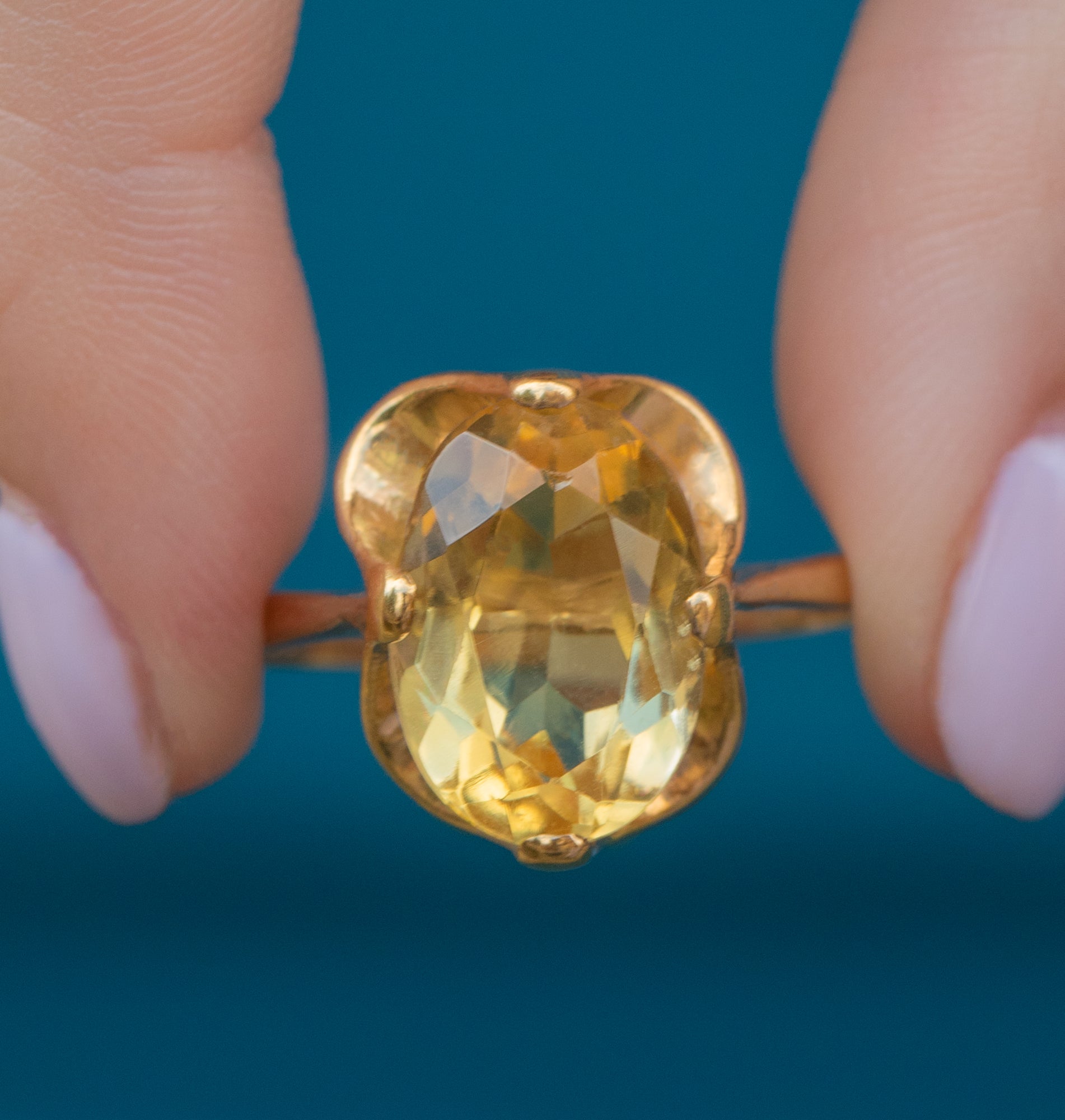 Bound together honey-hued 9ct Gold, dated with English hallmarks to 1972, as you lift the lid of your jewellery box this Vintage Citrine ring will glow, sure to brighten even the darkest of days!