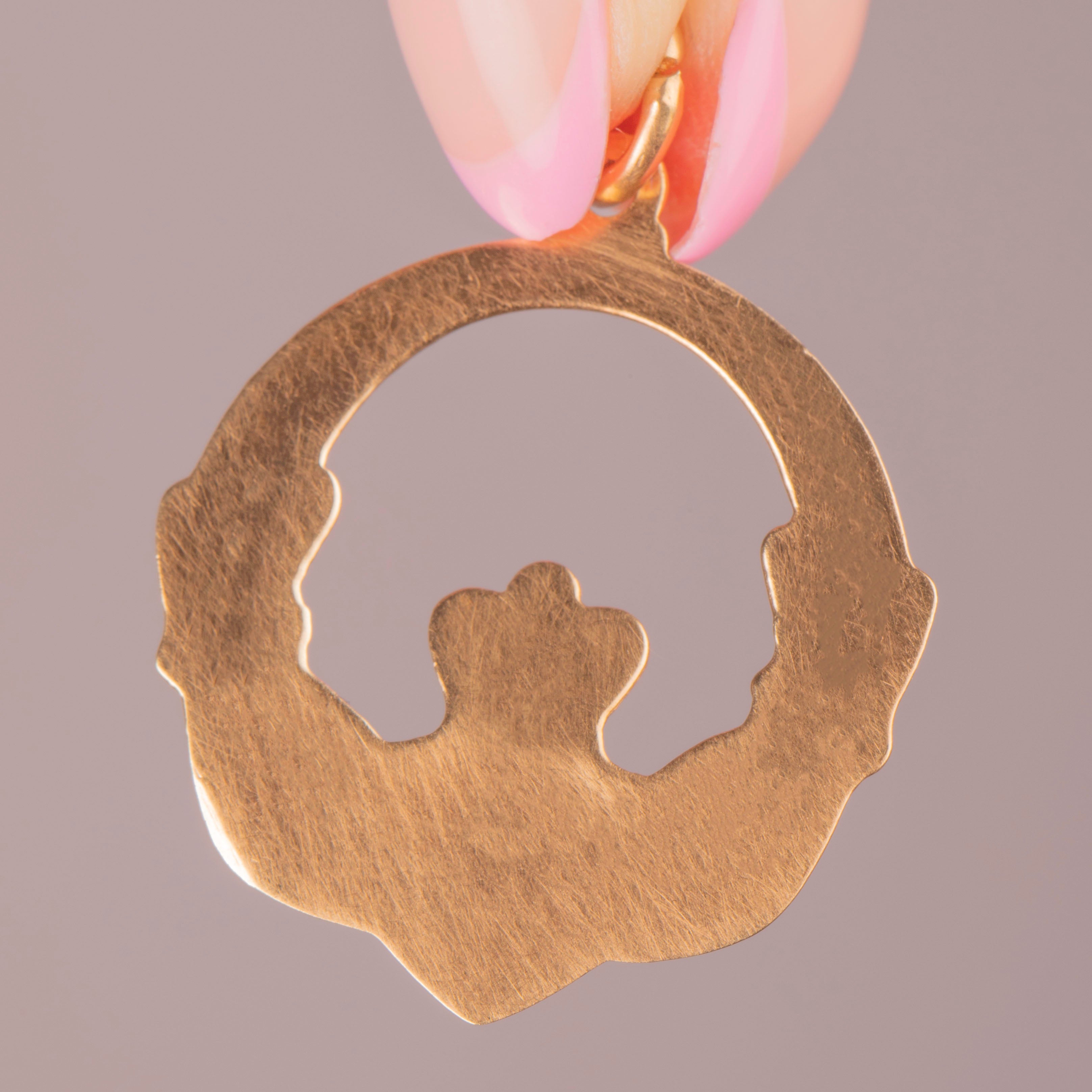 Not only a historic and powerful motif, this Vintage pendant is crafted entirely from buttery 9ct Gold, making her a splendorous piece to suspend across your décolletage. With an understanding of this Gold Claddagh pendants rich symbolism, she would make the ideal gift for a loved one.