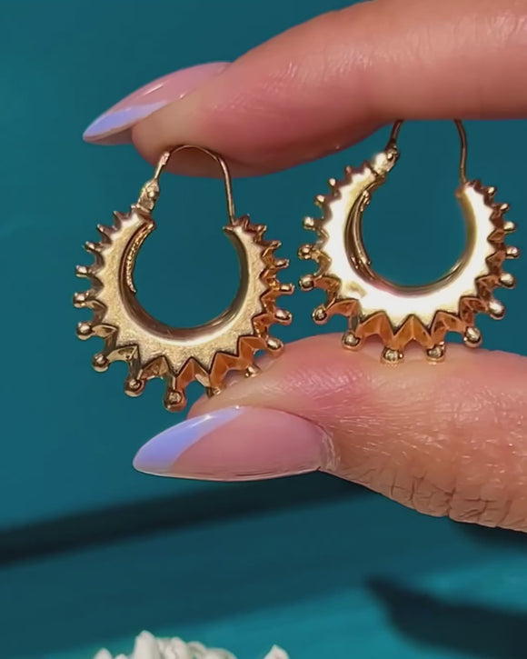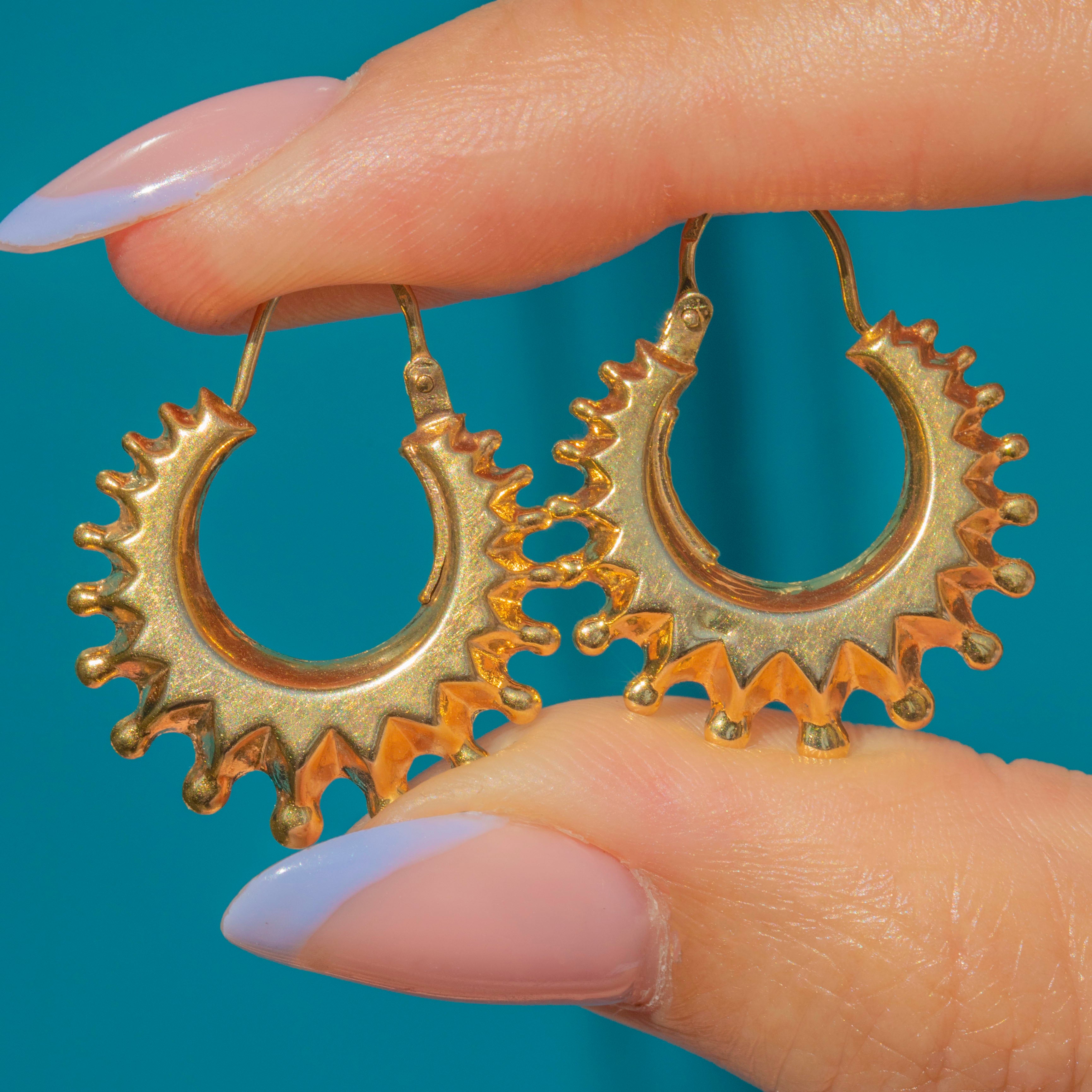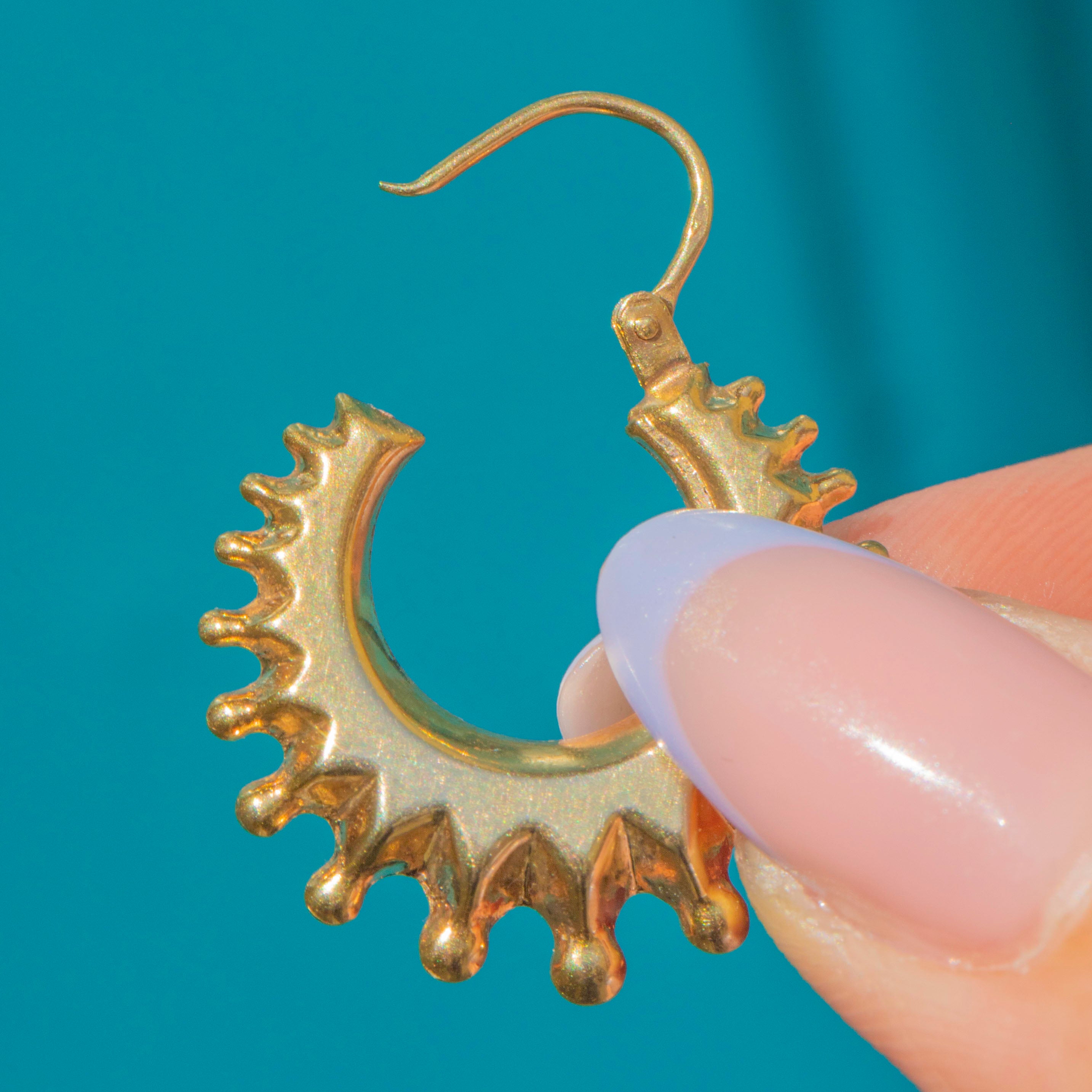 These vintage Creole hoops are crafted from radiant 9ct Gold, their distinct forms creating a striking silhouette as they suspend elegantly from your lobes.