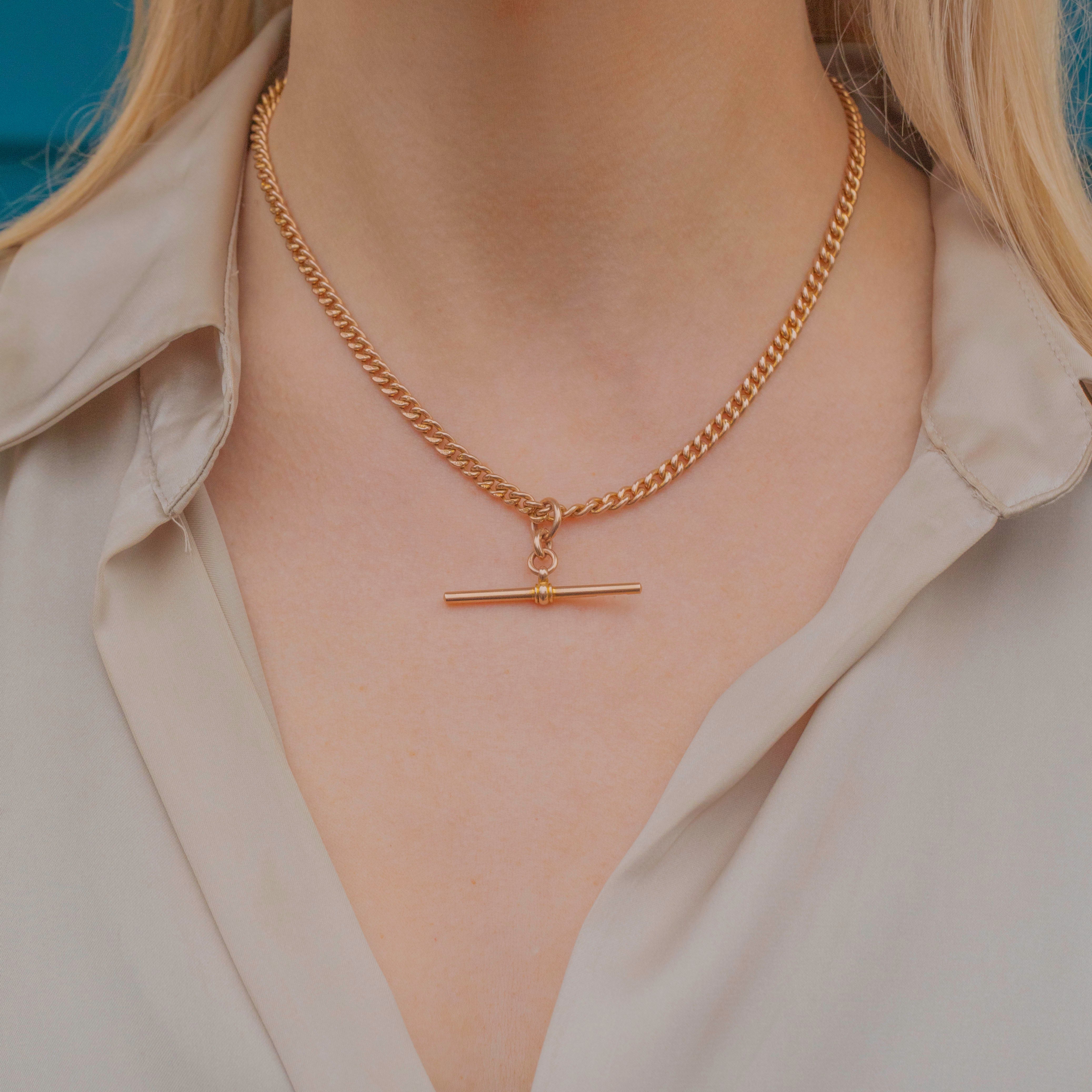 What's great about this chain is the fact that it has a detachable T-bar, so you can also style it as a plain curb chain. This Gold Albert chain has timeless allure!