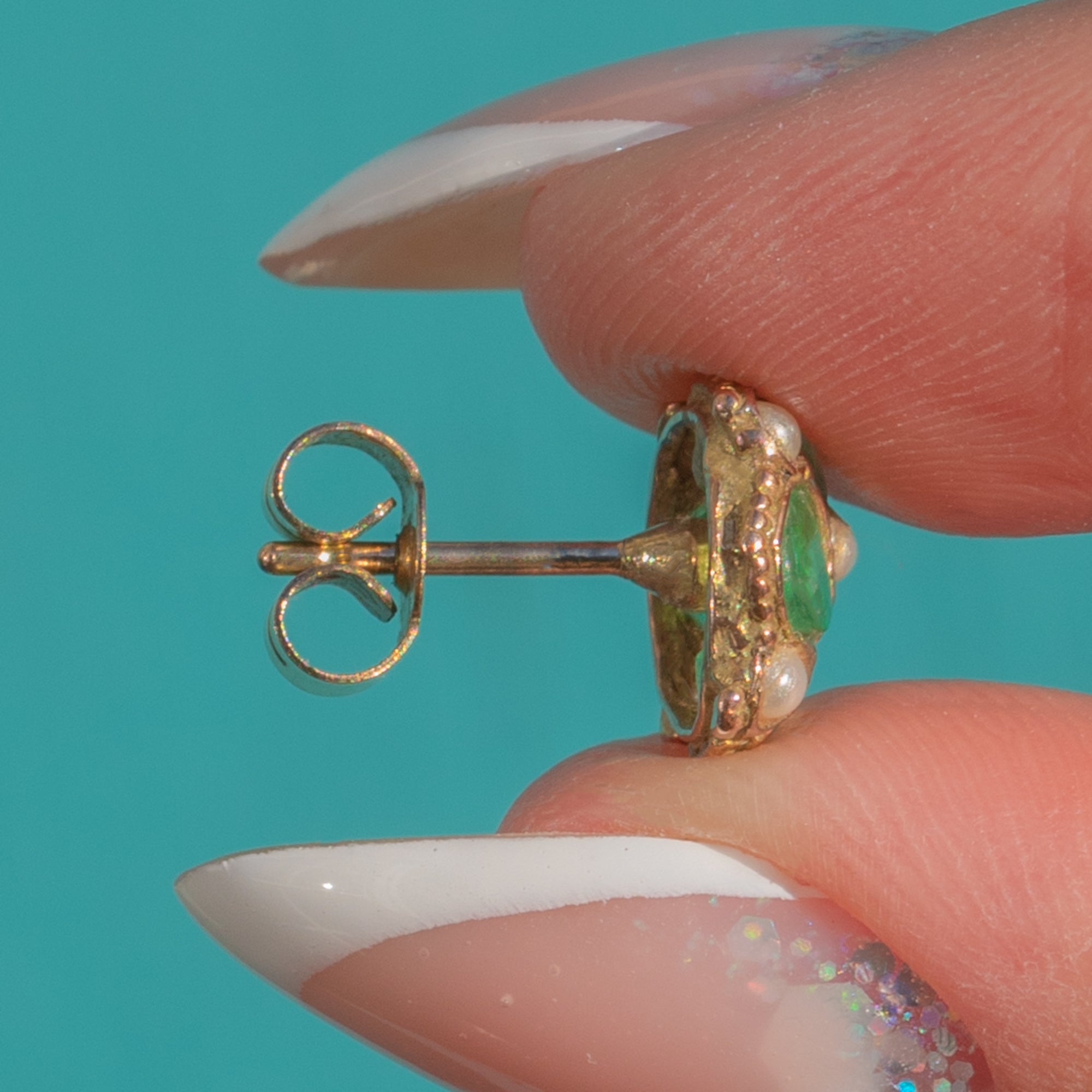 Die satten Grüntöne und die hübschen, gezwickten Goldeinfassungen verleihen ein herrlich antikes Flair, während die dezente Größe sie mühelos alltagstauglich macht. Mit ihrem originalen Victorian Charakter und ihrer wunderbar femininen Ausstrahlung verleihen diese Ohrringe jedem Stil einen Hauch zeitloser Eleganz.