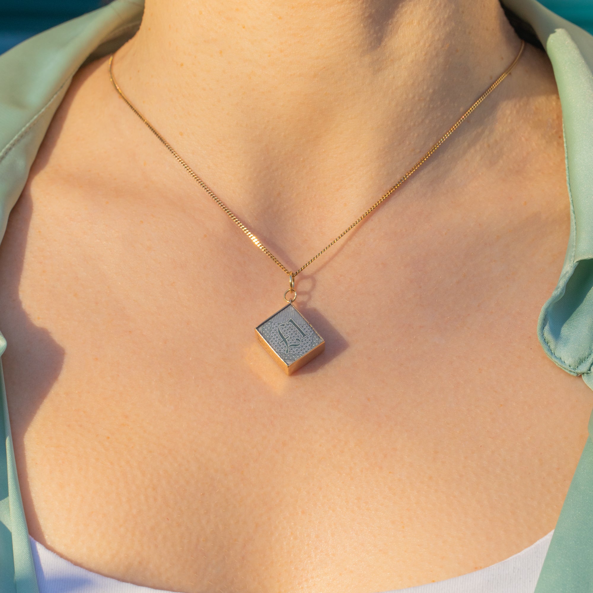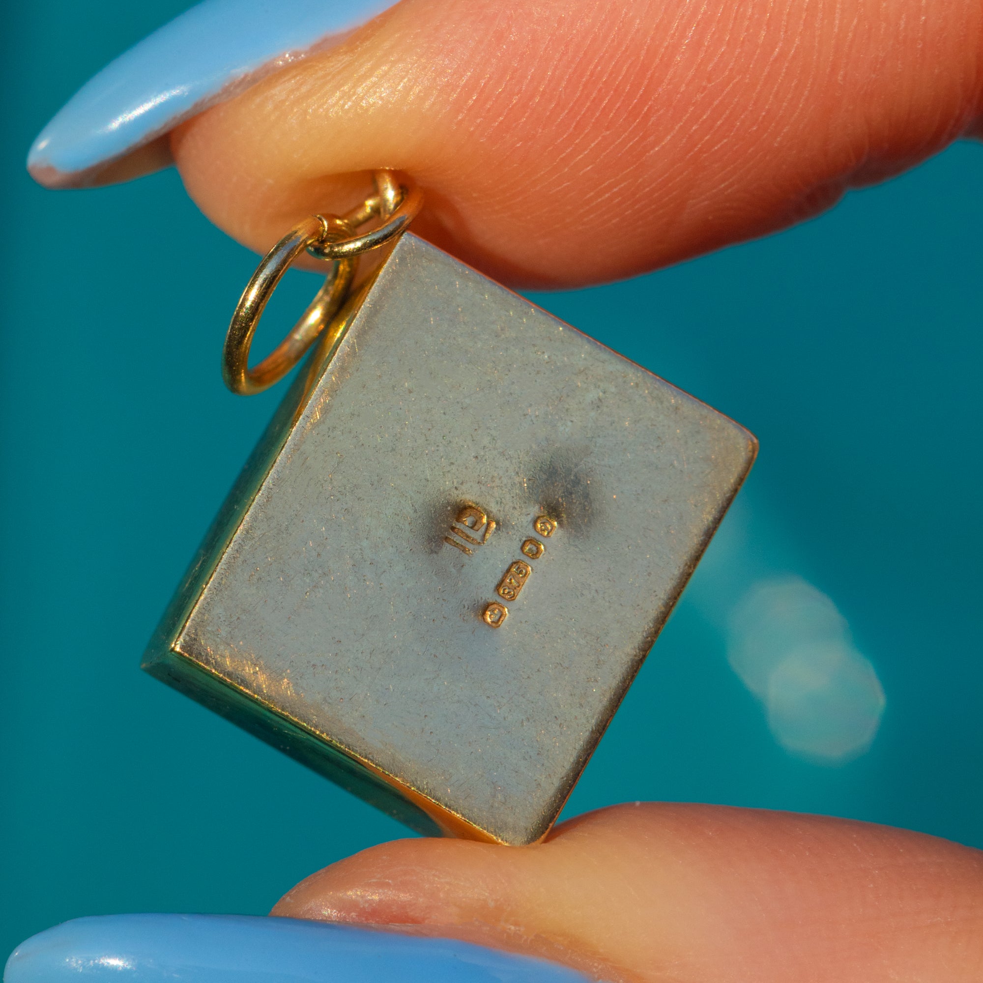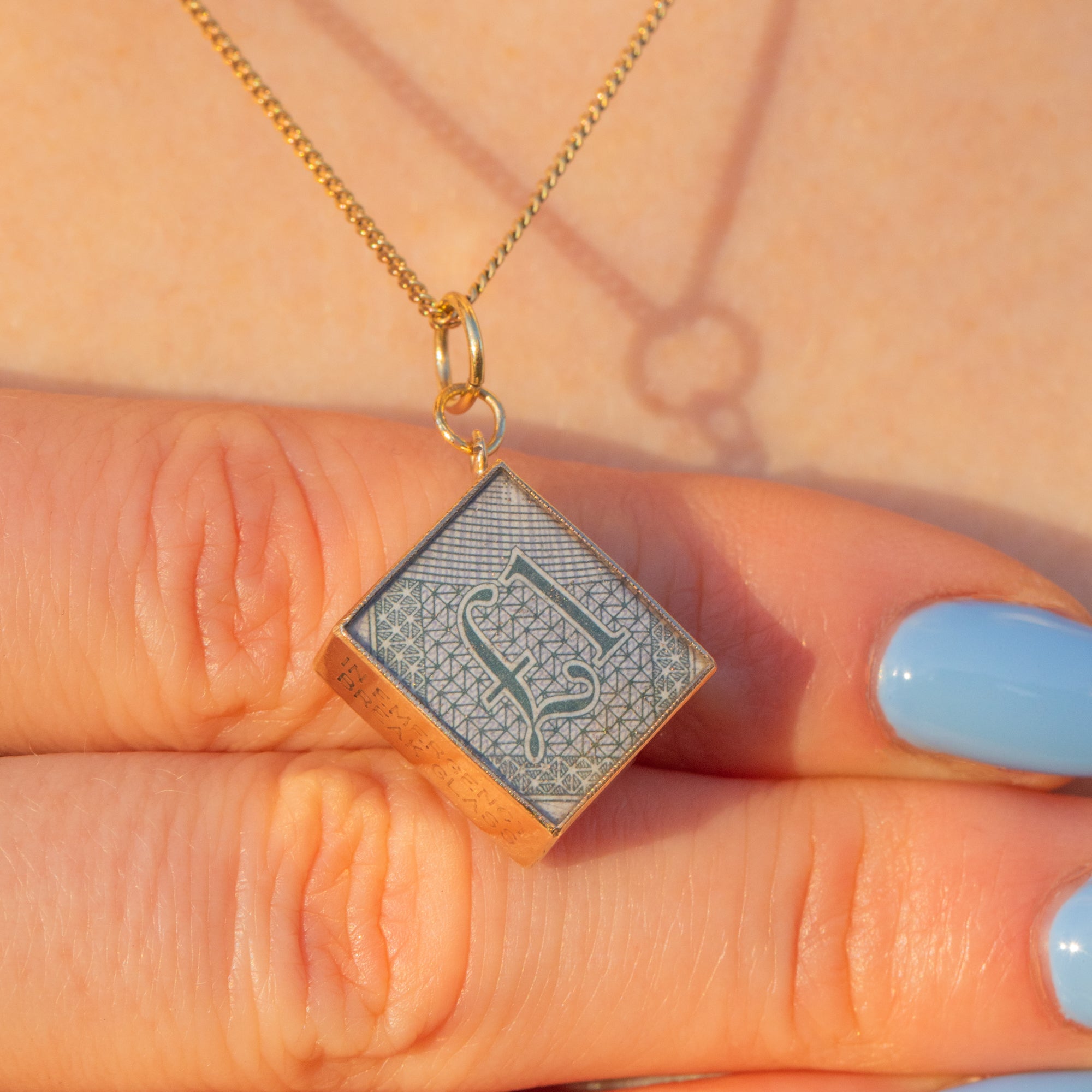 EXCELLENT. This 9ct Gold emergency one pound note charm is in fabulous condition! The 9ct Gold is buttery throughout and has kept its rectangular form well. With a jump ring soldered onto her corner, she hangs at a slight angle, which we think is super cute! A wonderful vintage charm packed with historic value!