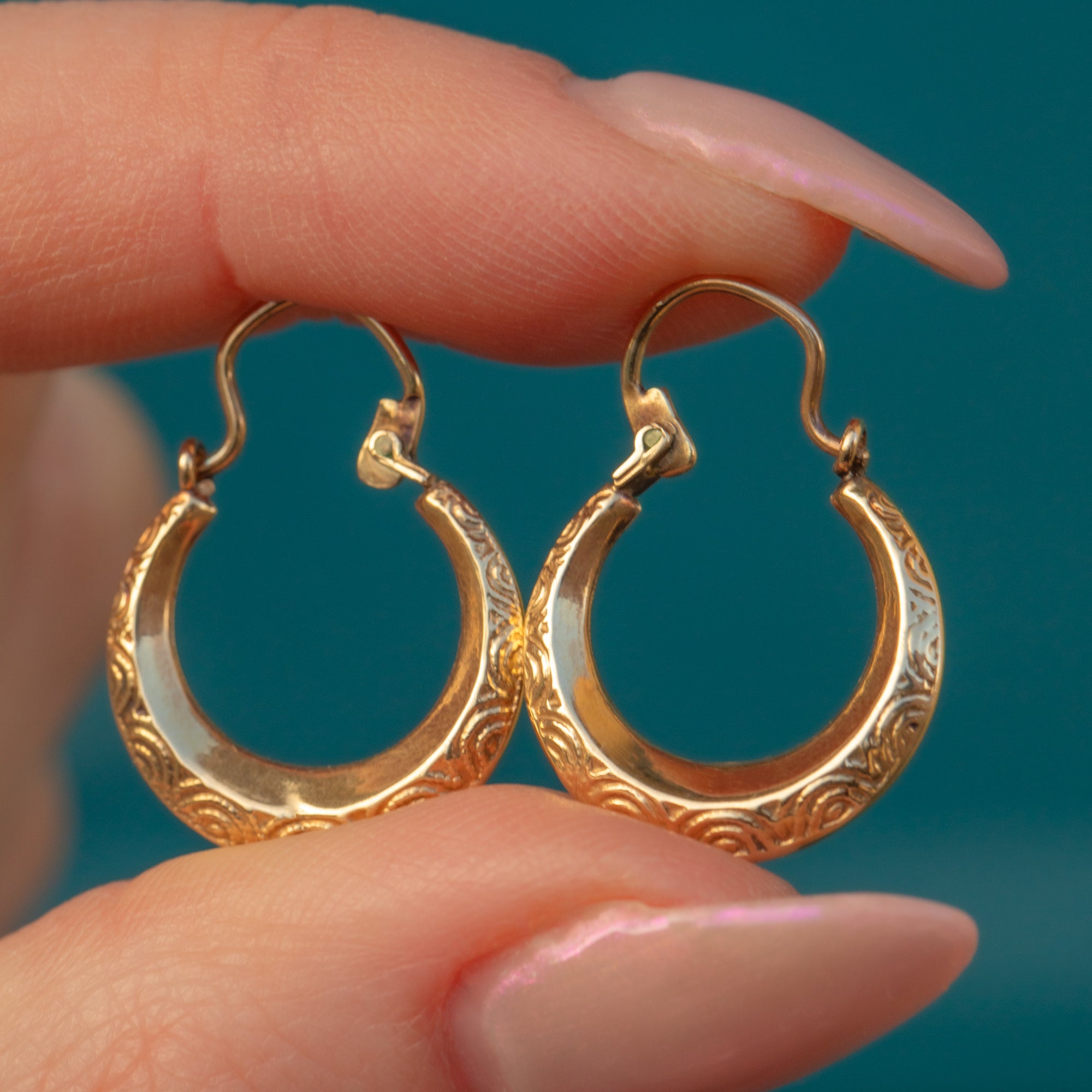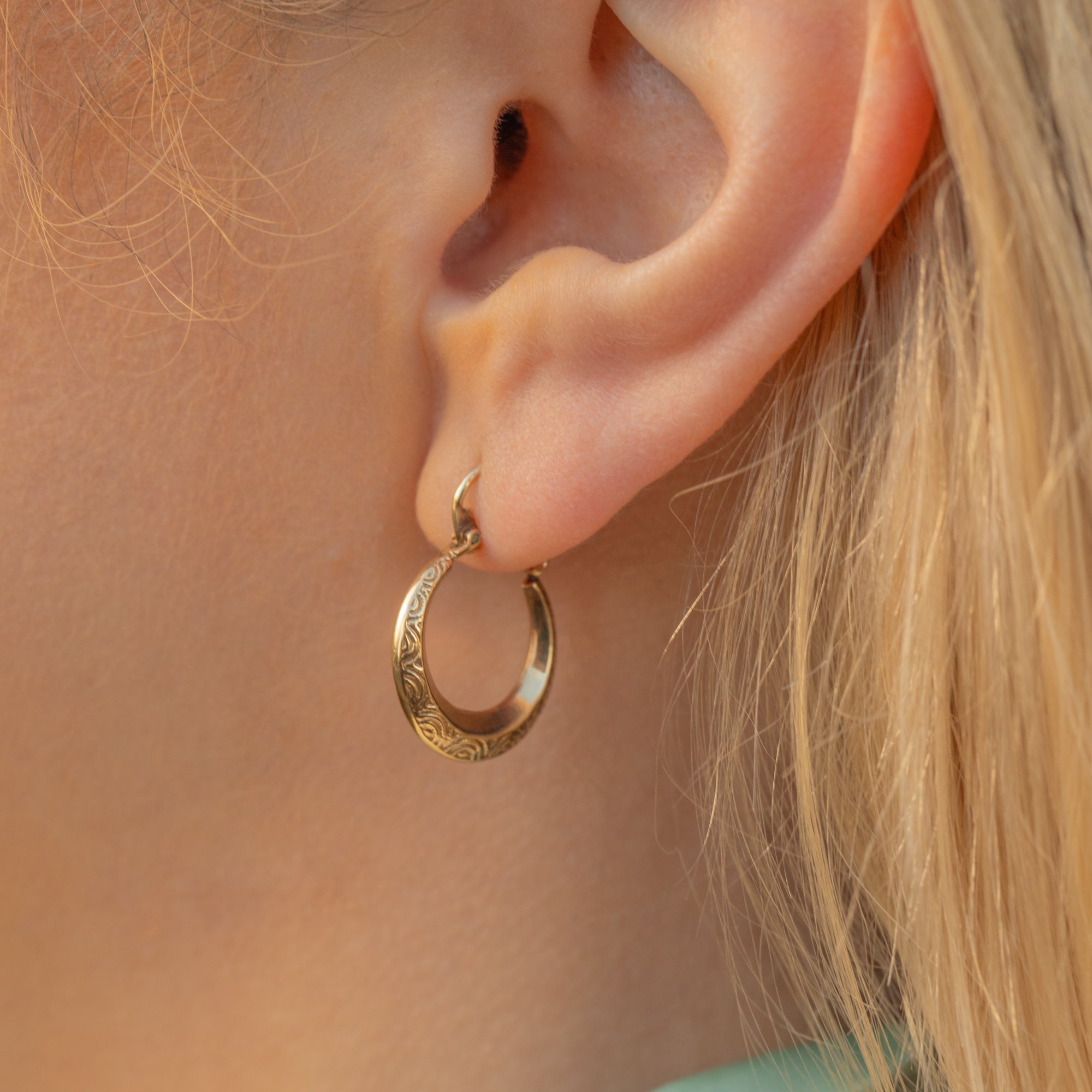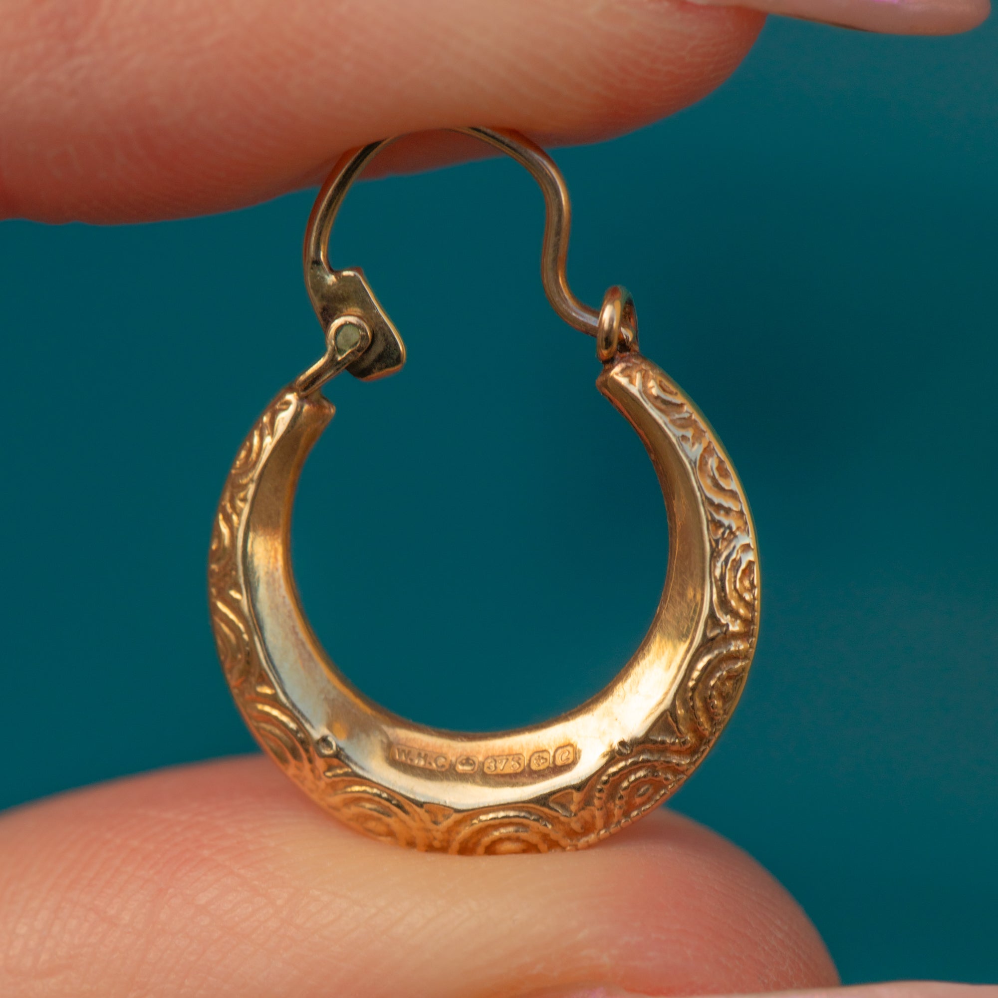 A classic design, these vintage Gold huggies are delicately engraved, providing some wonderful texture to her lustrous Gold. Wonderfully versatile, these vintage huggie hoop earrings are a fabulous investment for your collection.