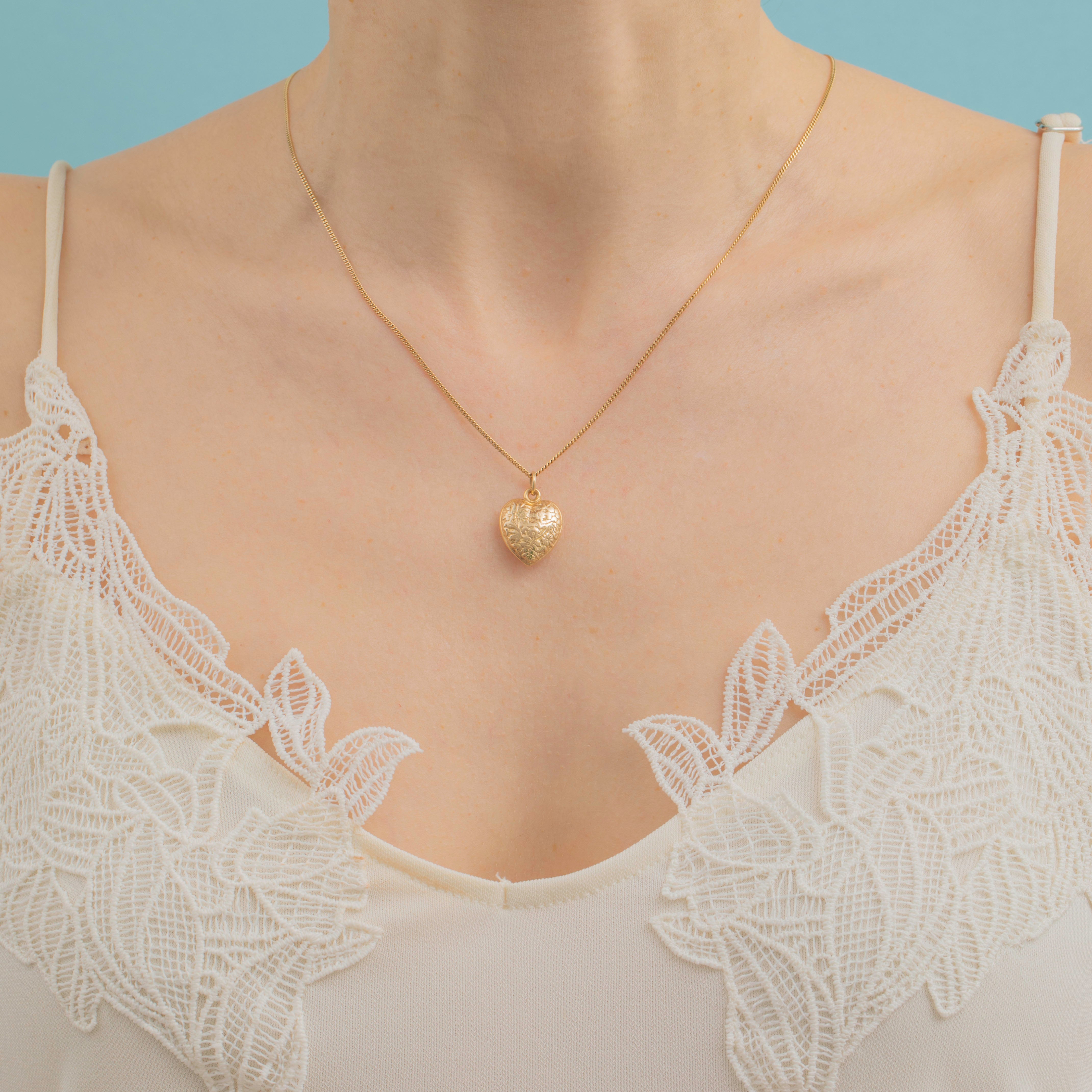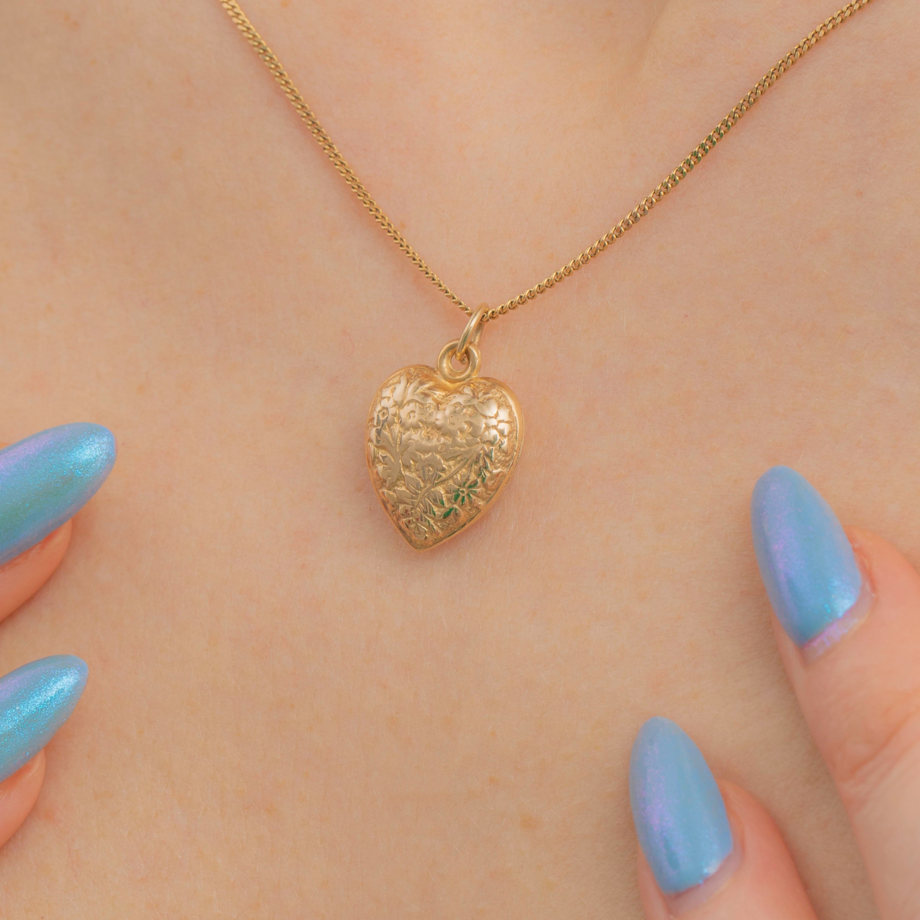 This 9ct Gold engraved puffy heart pendant is just adorable! Crafted from bright and buttery 9ct Gold, she features intricate floral engravings giving her wonderful texture and depth.