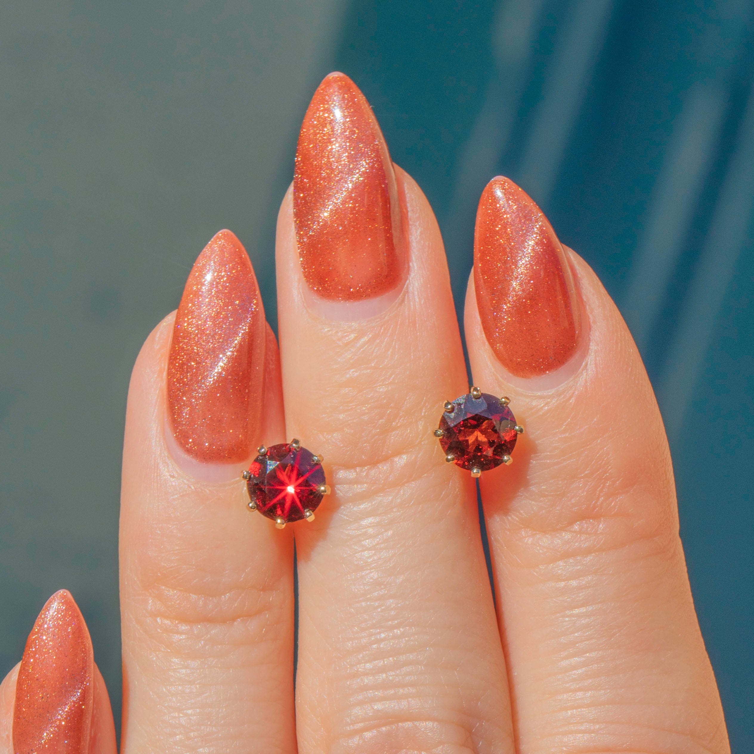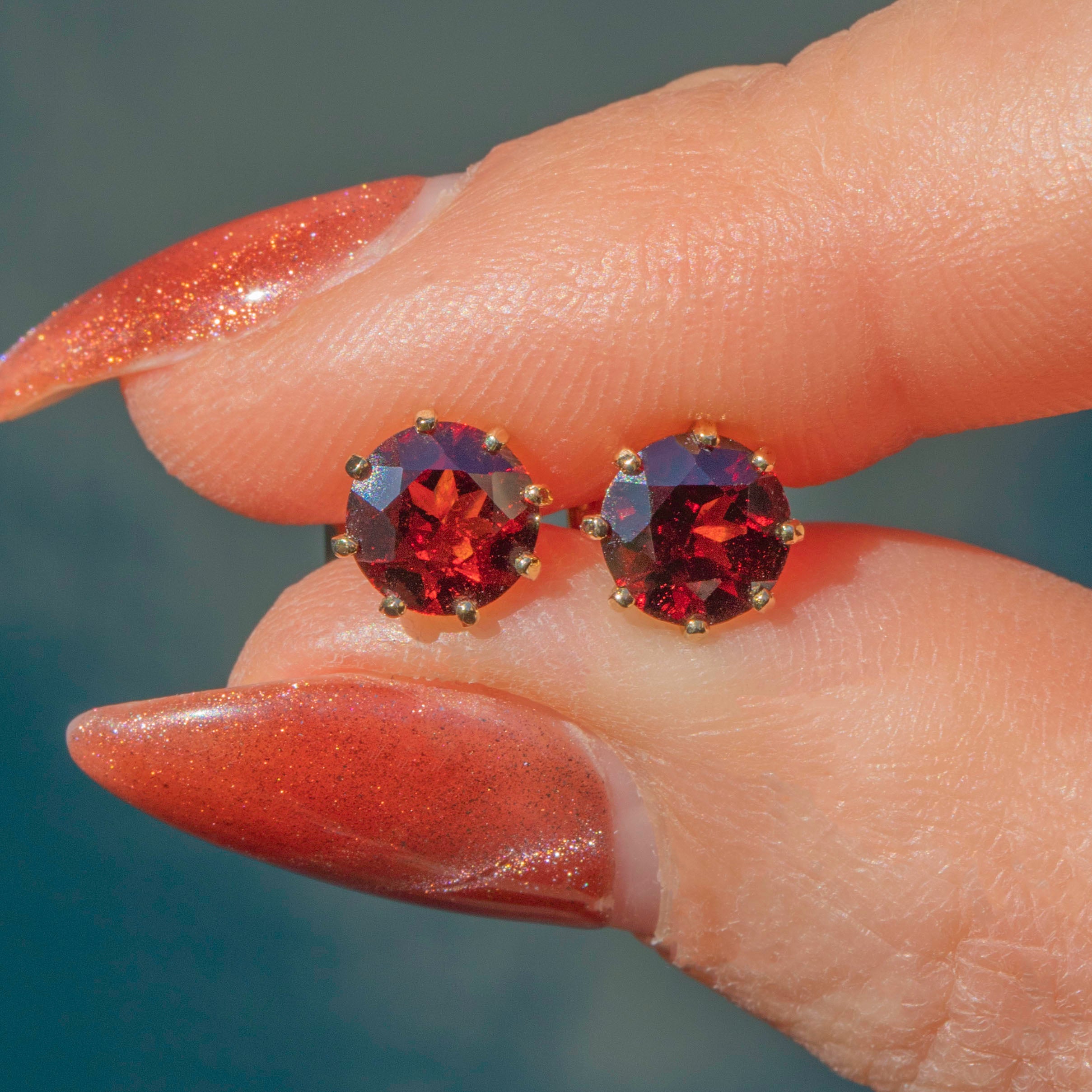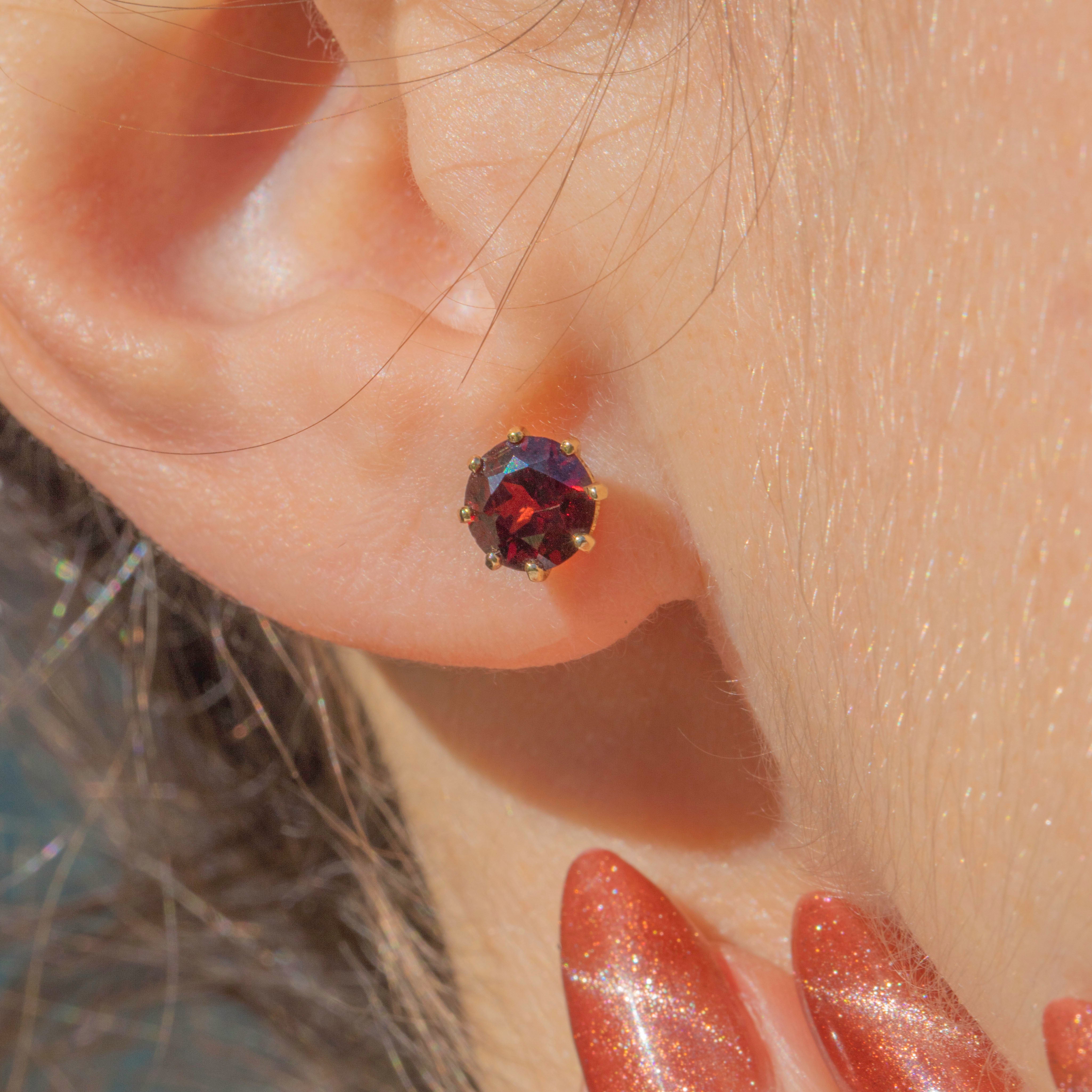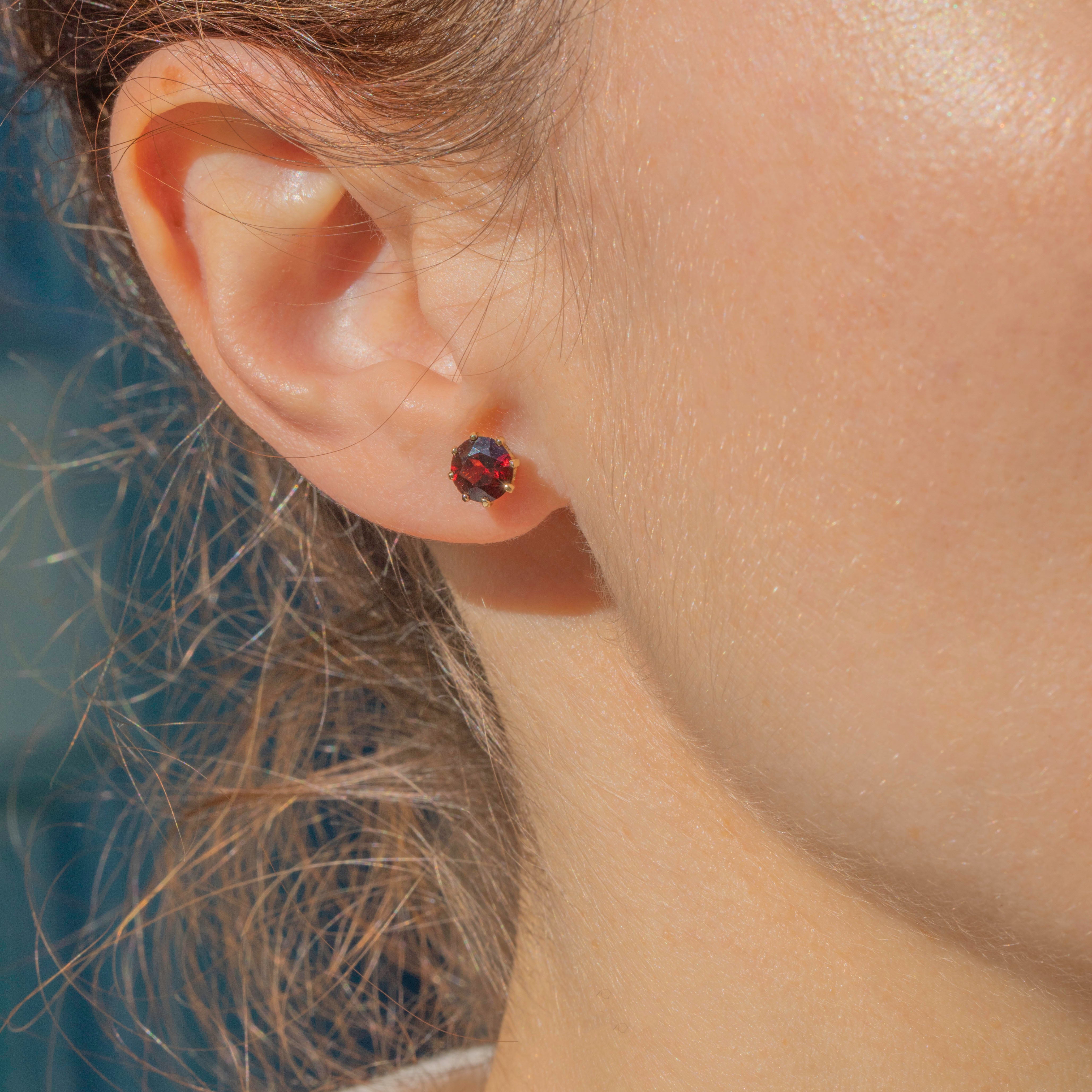 Add a pop of colour to your ensemble with these pretty 9ct Gold Garnet stud earrings! Juicy berry red hues seep from each crisply cut facet, revealing flashes of crimson as they catch the light.