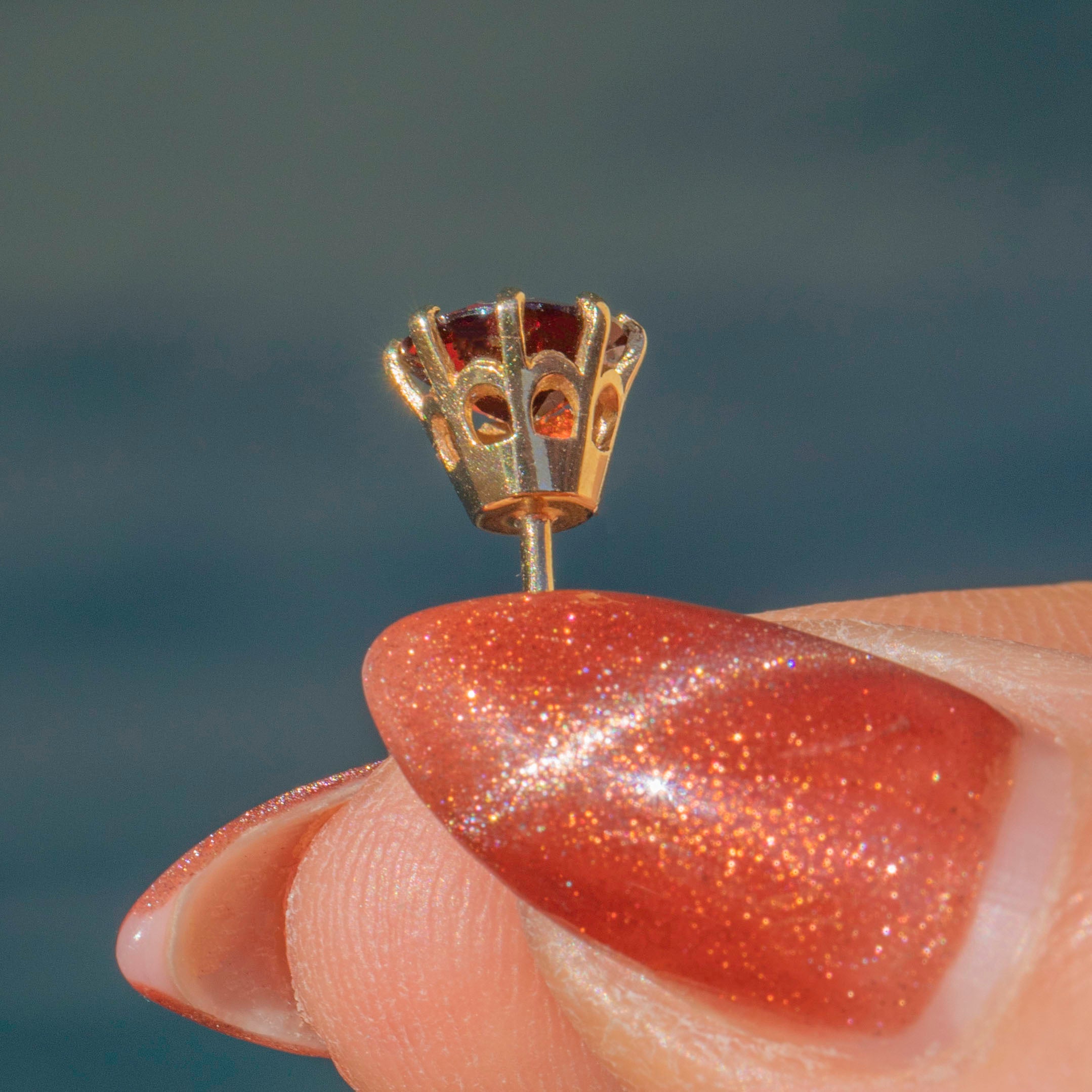 EXCELLENT: These 9ct Gold Garnet stud earrings are in excellent condition. Each Garnet is radiant, saturated in colour and secure in its setting. There is a minor fleabite on the side of one Garnet, however, this is very difficult to spot without a jeweller's loupe. With secure butterfly backs, you can wear these Garnet stud earrings with confidence!