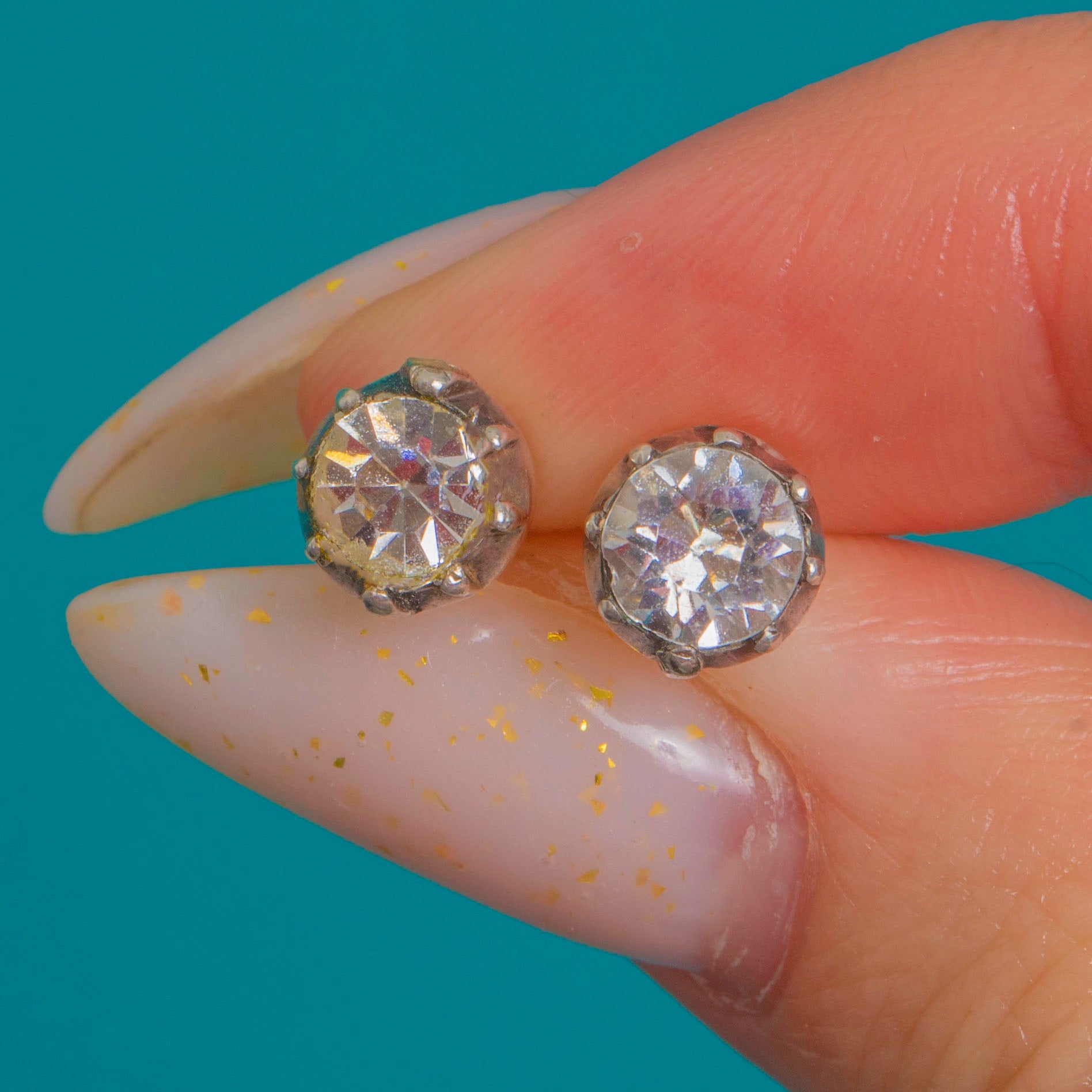 EXCELLENT: Paste stones are bright and well-presented with only the lightest surface wear visible under magnification. The collet settings and posts are secure and in excellent order with minimal signs of age. These earrings have been well cared for and are ready to wear.