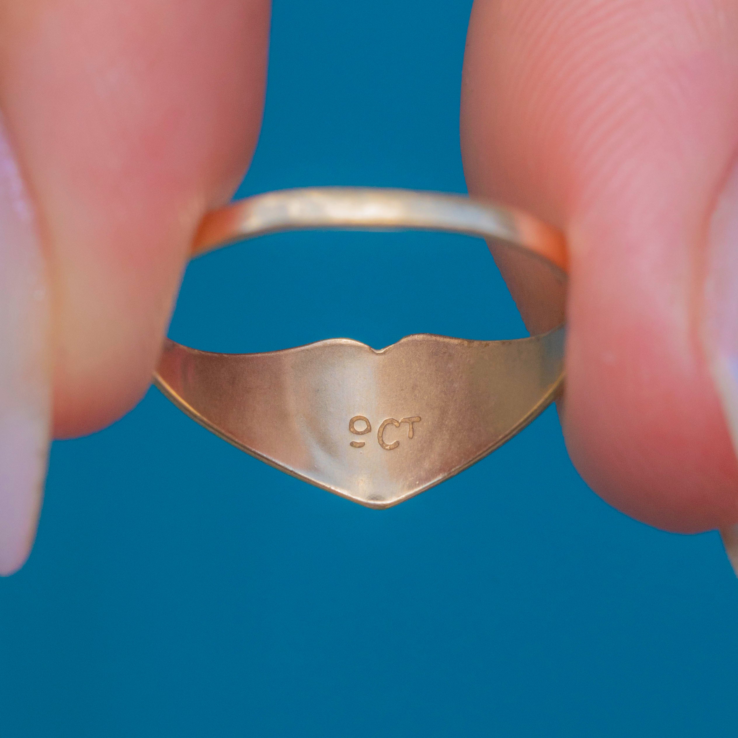 EXCELLENT: Free from any dings or dents, this vintage ring has been extremely well cared for over the years. The Gold is buttery and smooth with a high-shine polish, and feels comfortable to wear.
