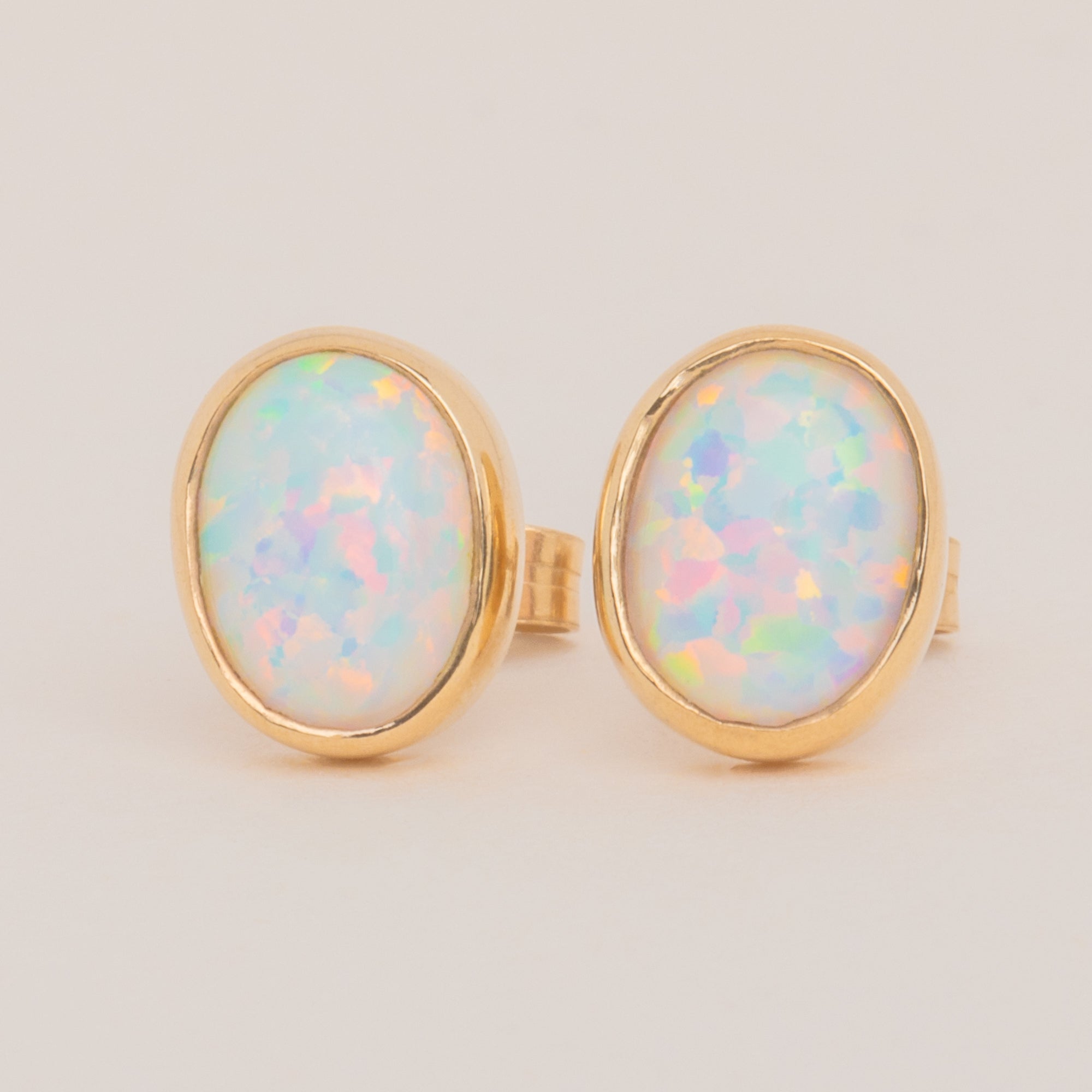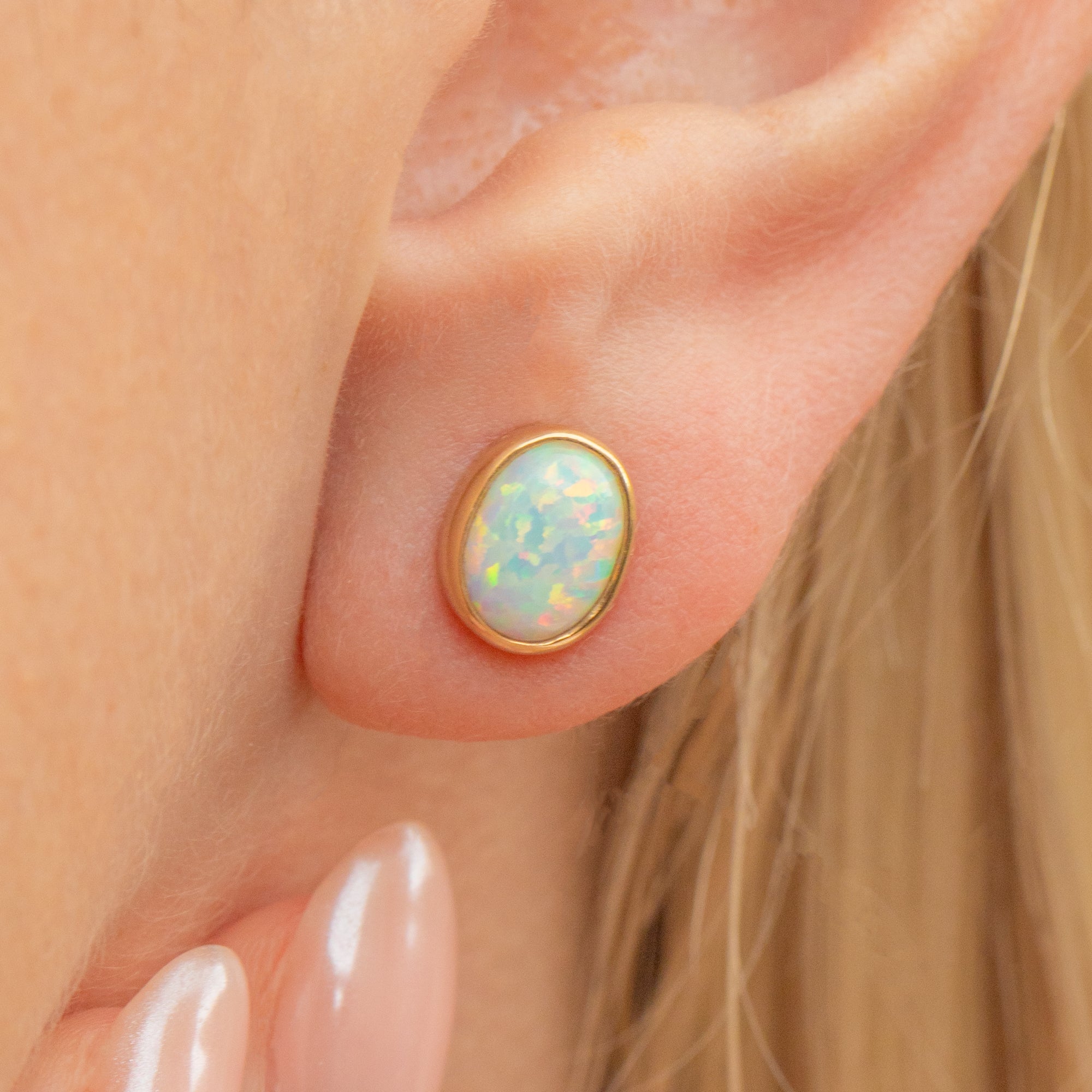 These 9ct Gold Opal bezel stud earrings are sure to wow any onlooker!