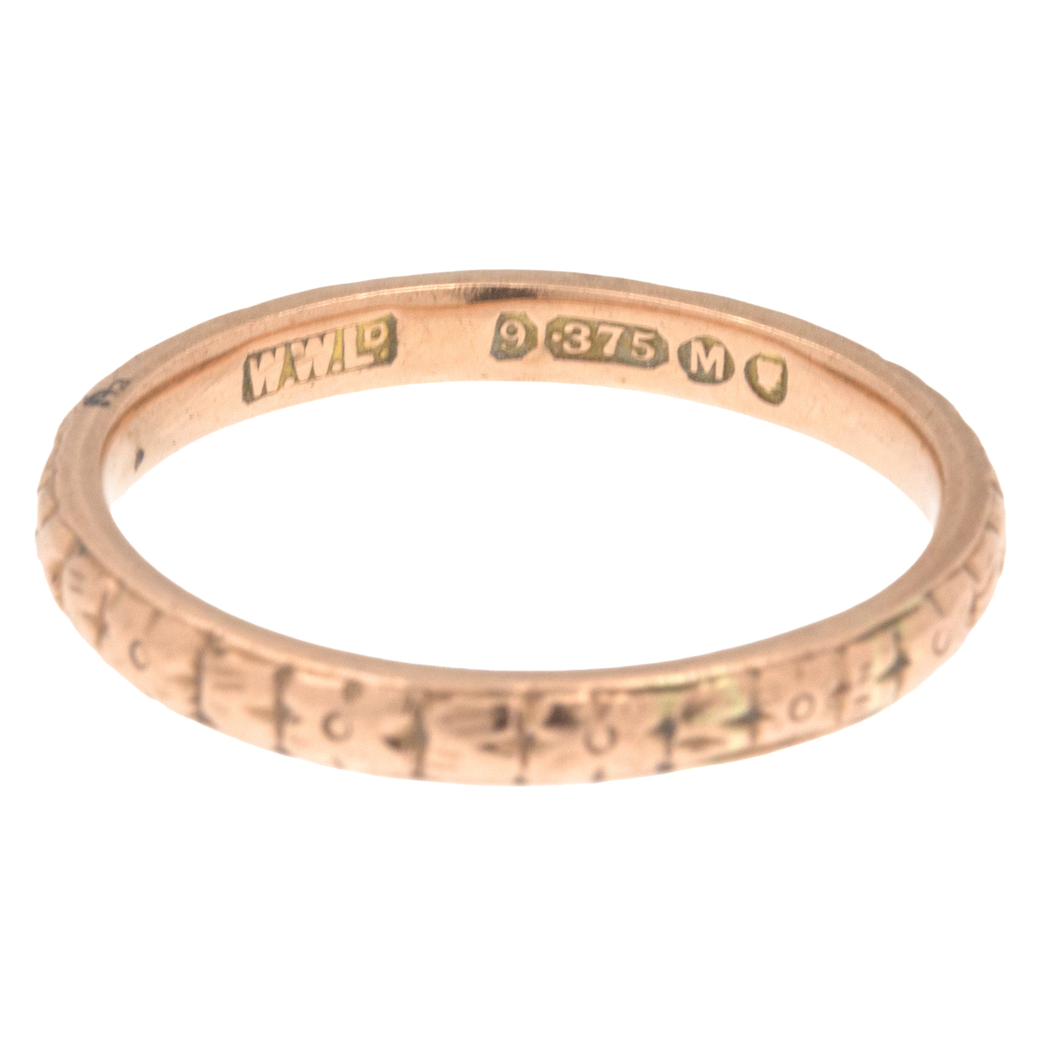 What a stunning piece this 9ct Gold orange blossom wedding band is, boasting a full set of hallmarks dating back to 1947!