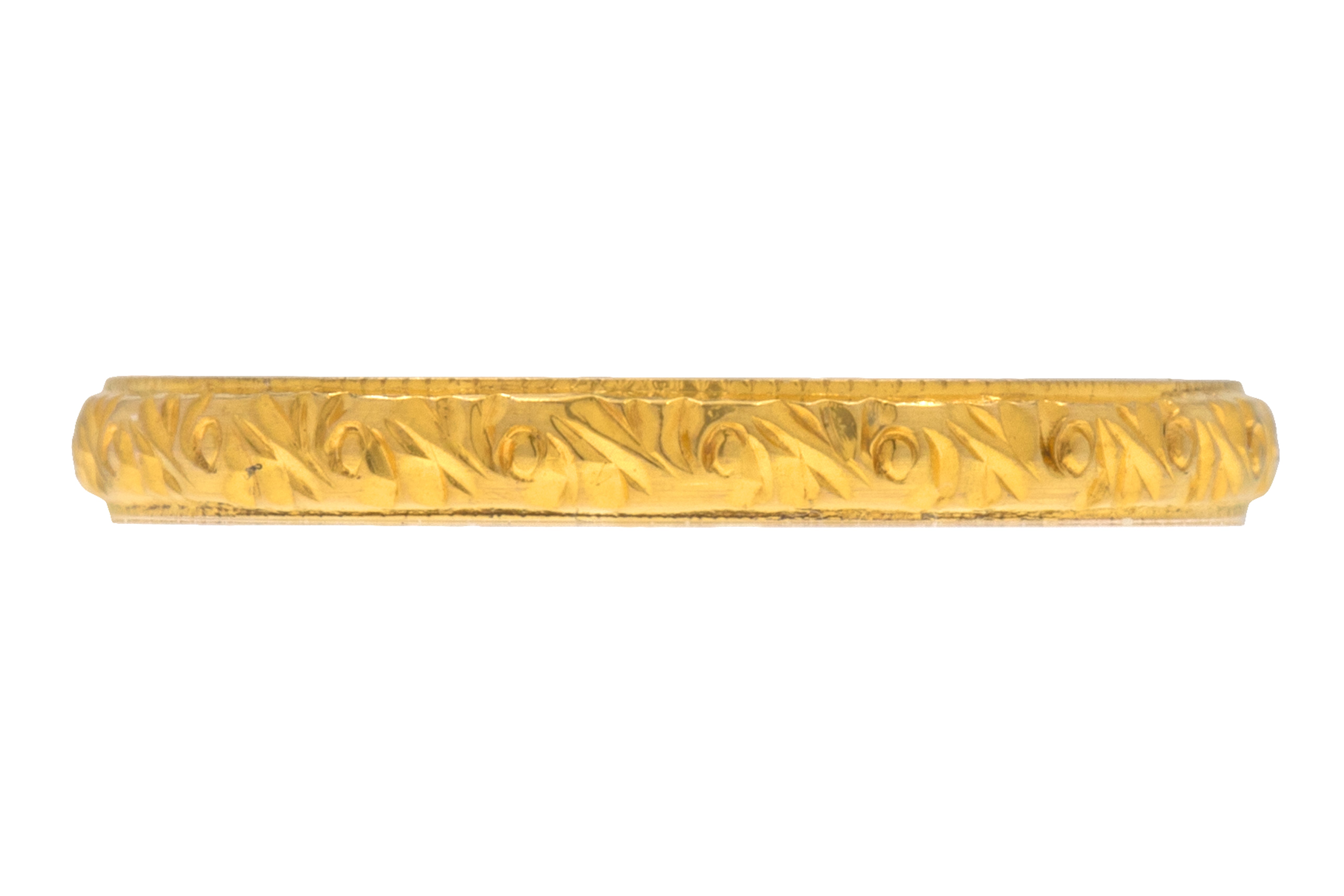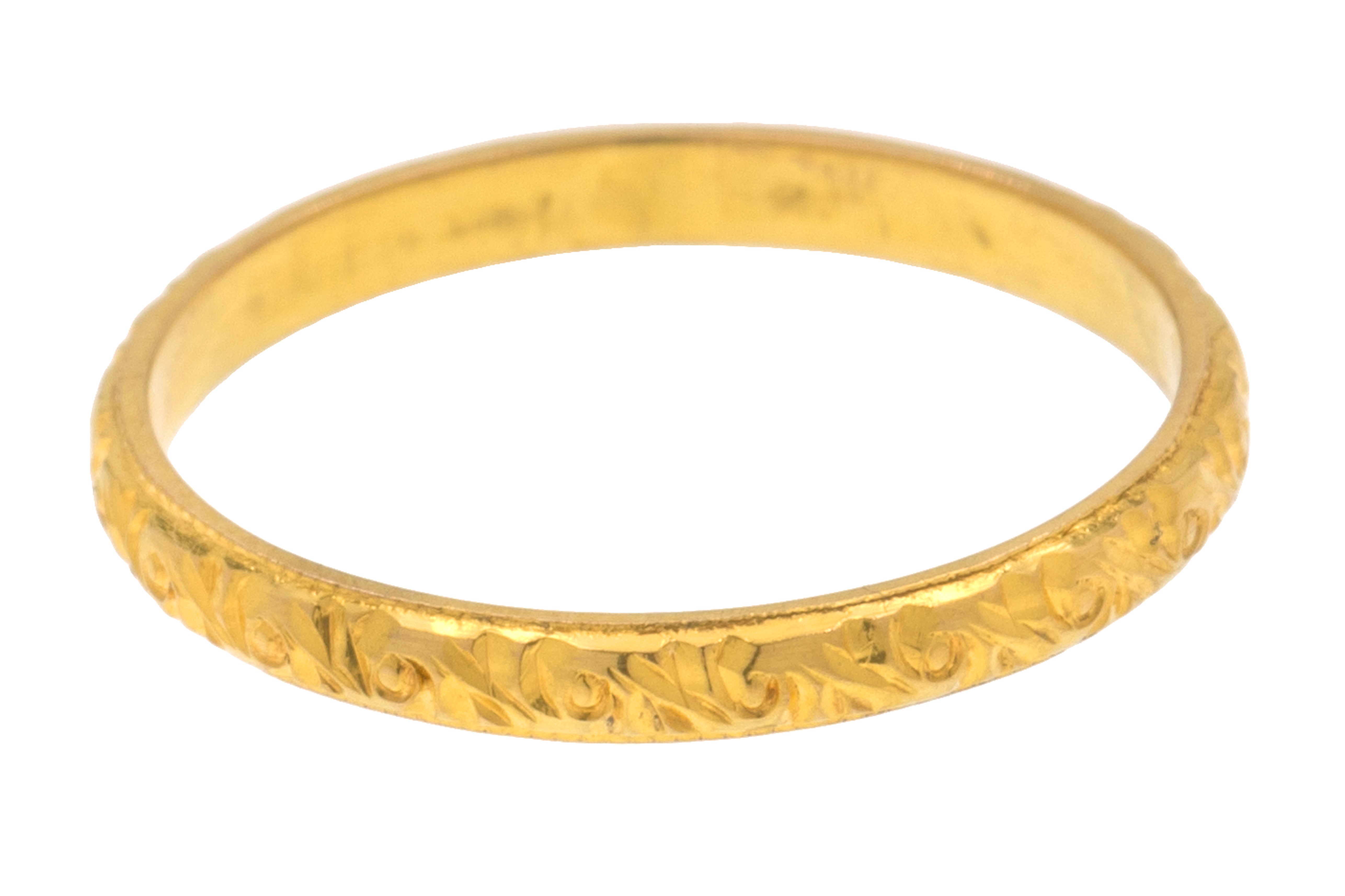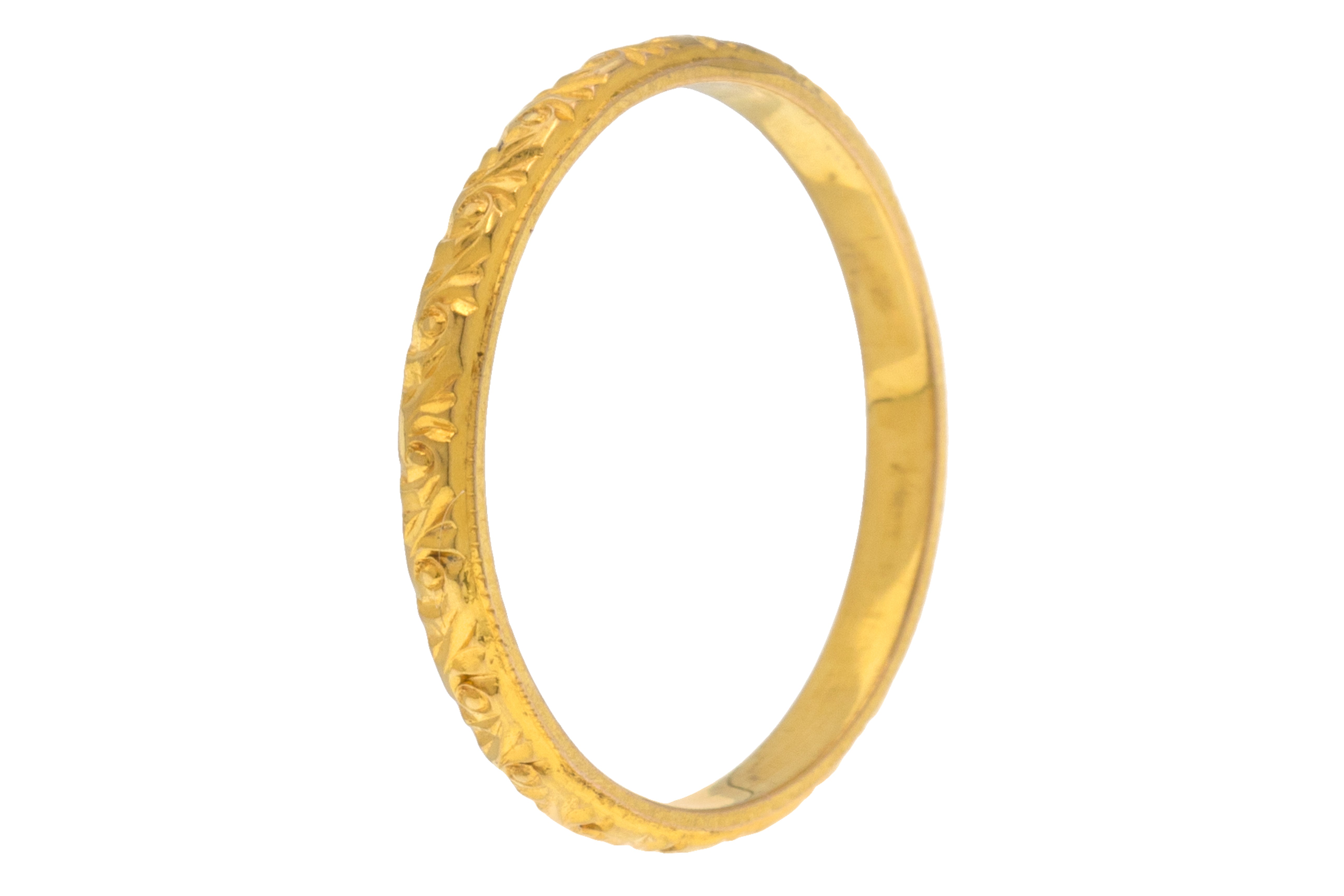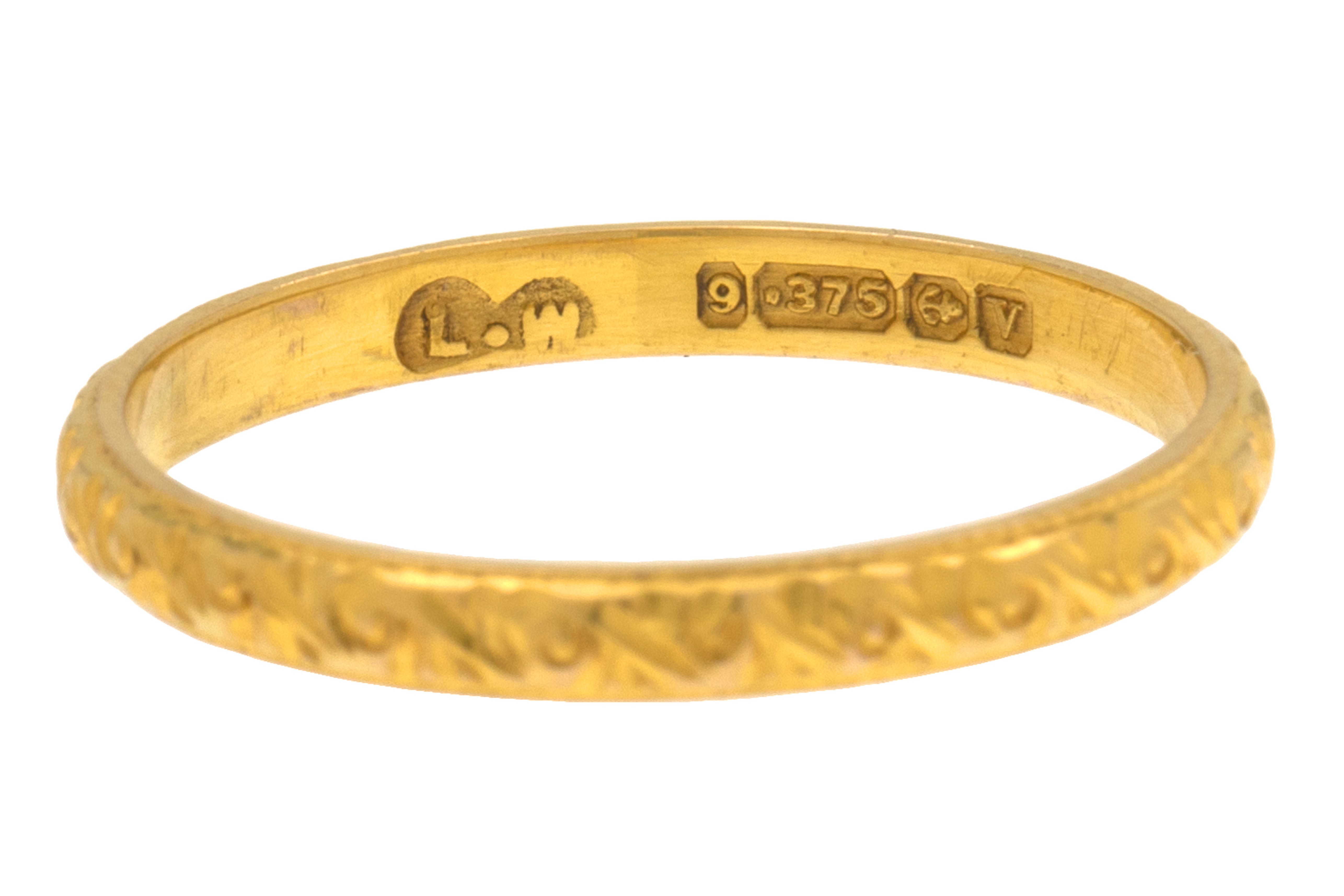 EXCELLENT: This 9ct Gold orange blossom wedding band is in superb condition. The orange blossom engravings are crisp and clear. The shank has no signs of previous resizing. With a gloriously Golden hue, this vintage ring is sumptuous. Not forgetting her full set of hallmarks!
