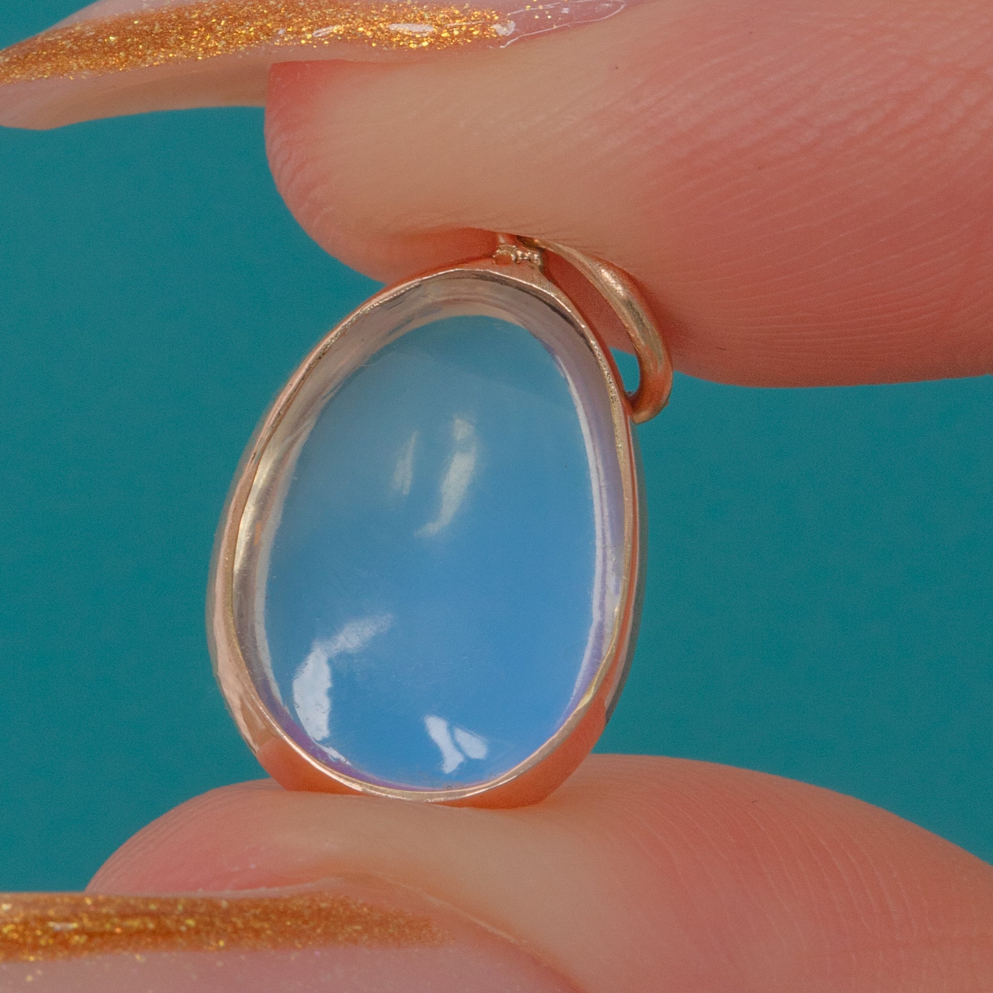 This ethereal Art Nouveau charm combines the soft glow of a Ceylon Moonstone with the gentle lustre of a single Pearl, set in warm 9ct Gold. The Moonstone shimmers with a delicate blue adularescence, beautifully characteristic of Ceylon material, while the Pearl adds a touch of classic refinement. The design flows gracefully in the sinuous, organic style typical of the Art Nouveau era.