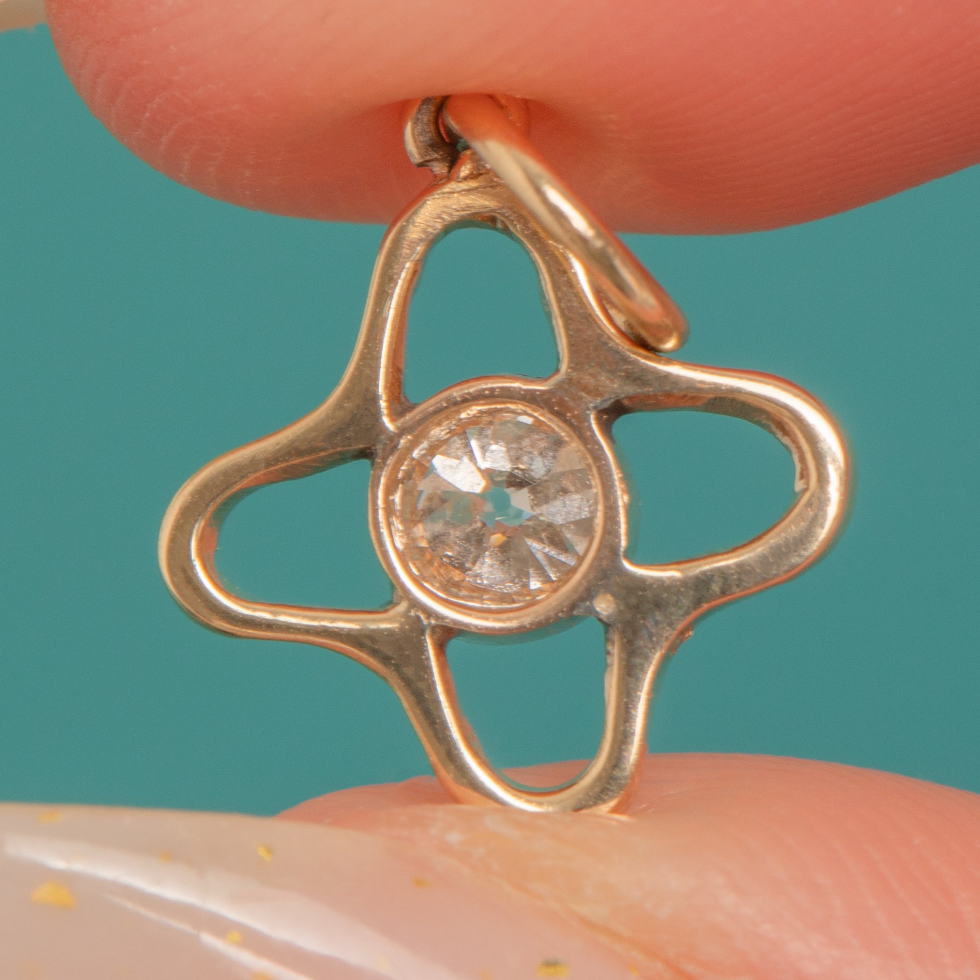 A petite celestial treasure from the Victorian era, this Star charm is crafted in 9ct Gold and Platinum and centred by a sparkling 0.25ct Old Mine Cut Diamond. The Diamond’s charming antique facet pattern dances with light, lending that signature old-world fire in a dainty, easy-to-wear silhouette.
