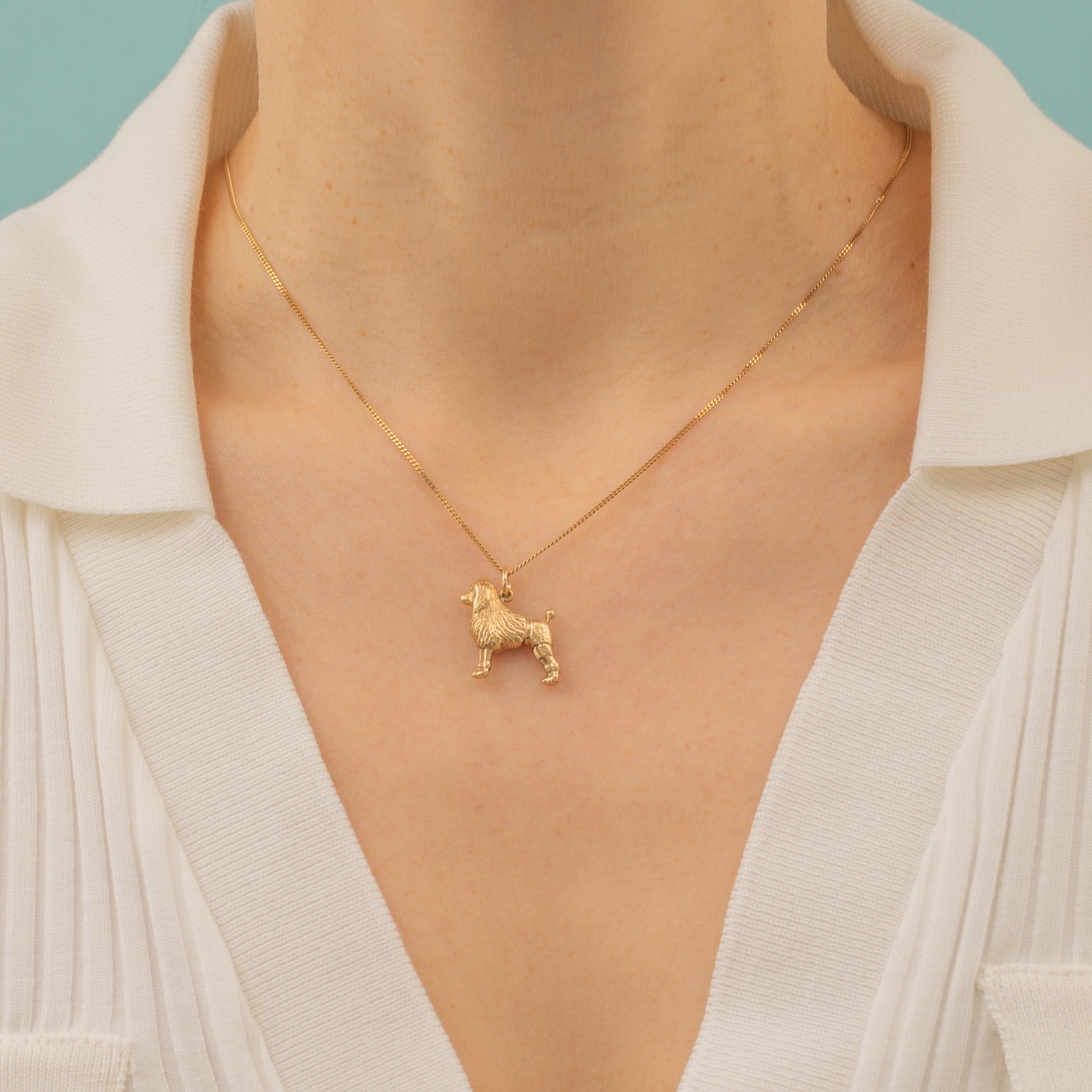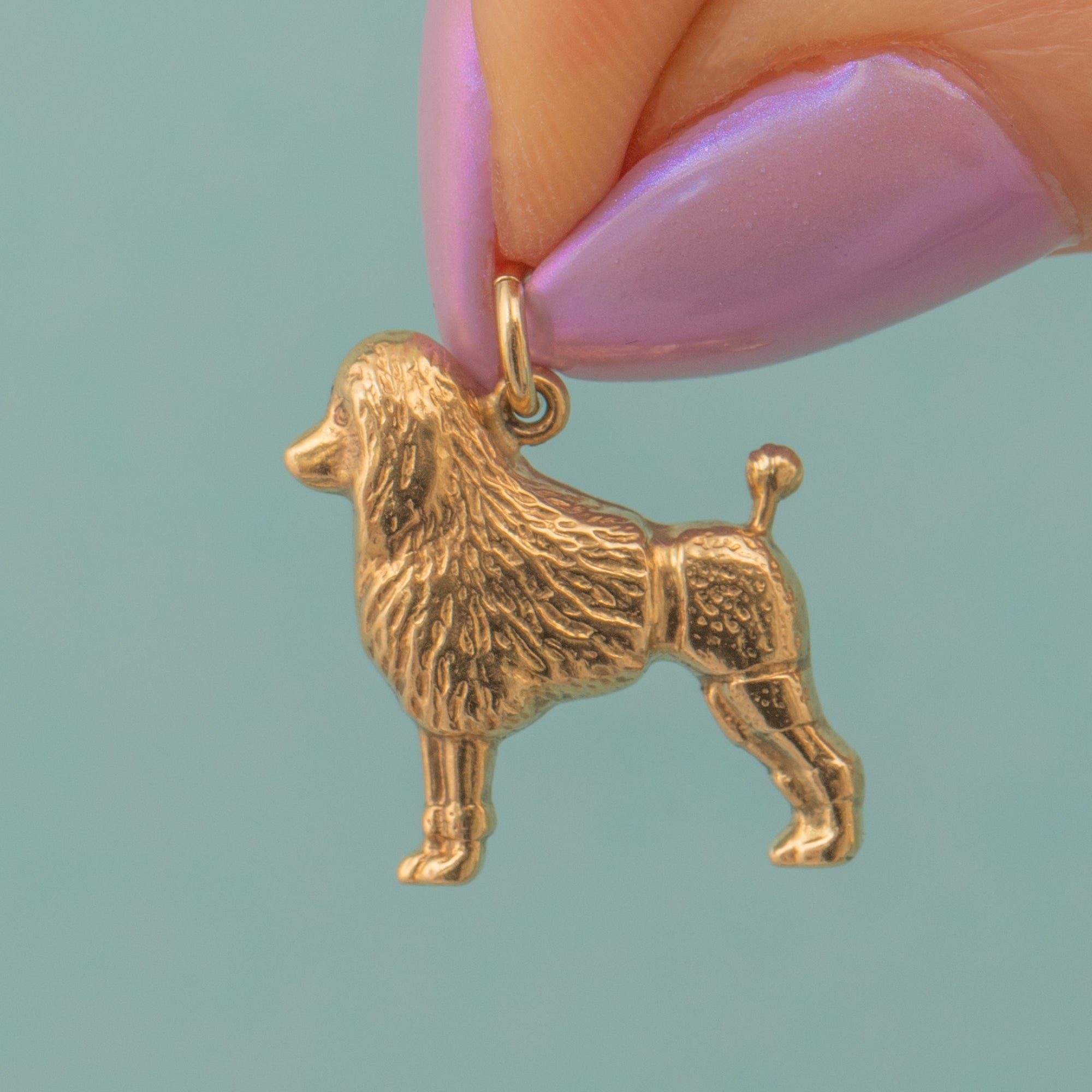 This cute 9ct Gold poodle dog charm is packed full of character! A celebration of man's best friend, this dainty dog pendant is crafted from solid 9ct Gold and boasts intricate details that perfectly capture this intelligent breed's elegant demeanor.