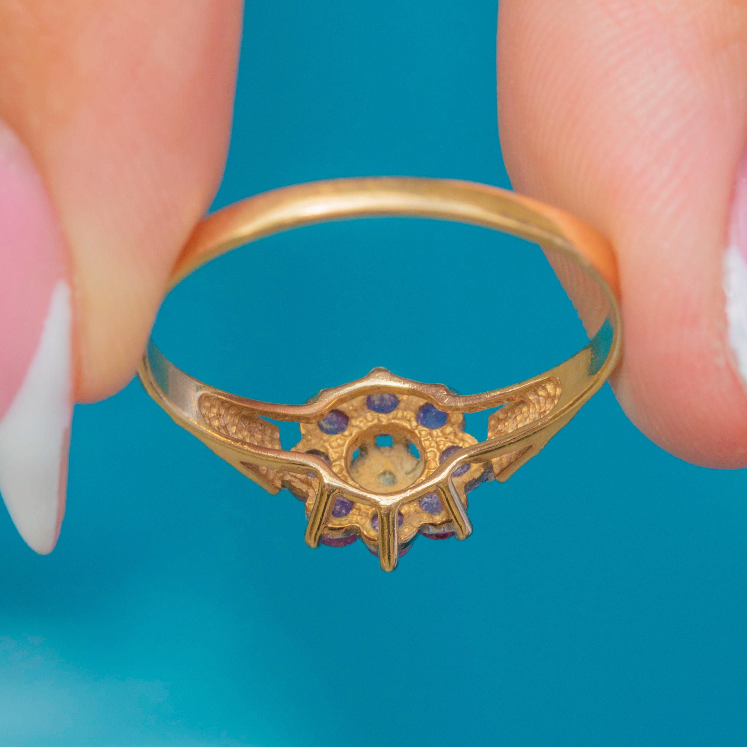 Fully hallmarked for Birmingham with maker’s mark GA and “DIA” stamp inside the band, this ring combines classic gemstone pairing with a feminine, timeless design—perfect for adding colour and elegance to your collection.