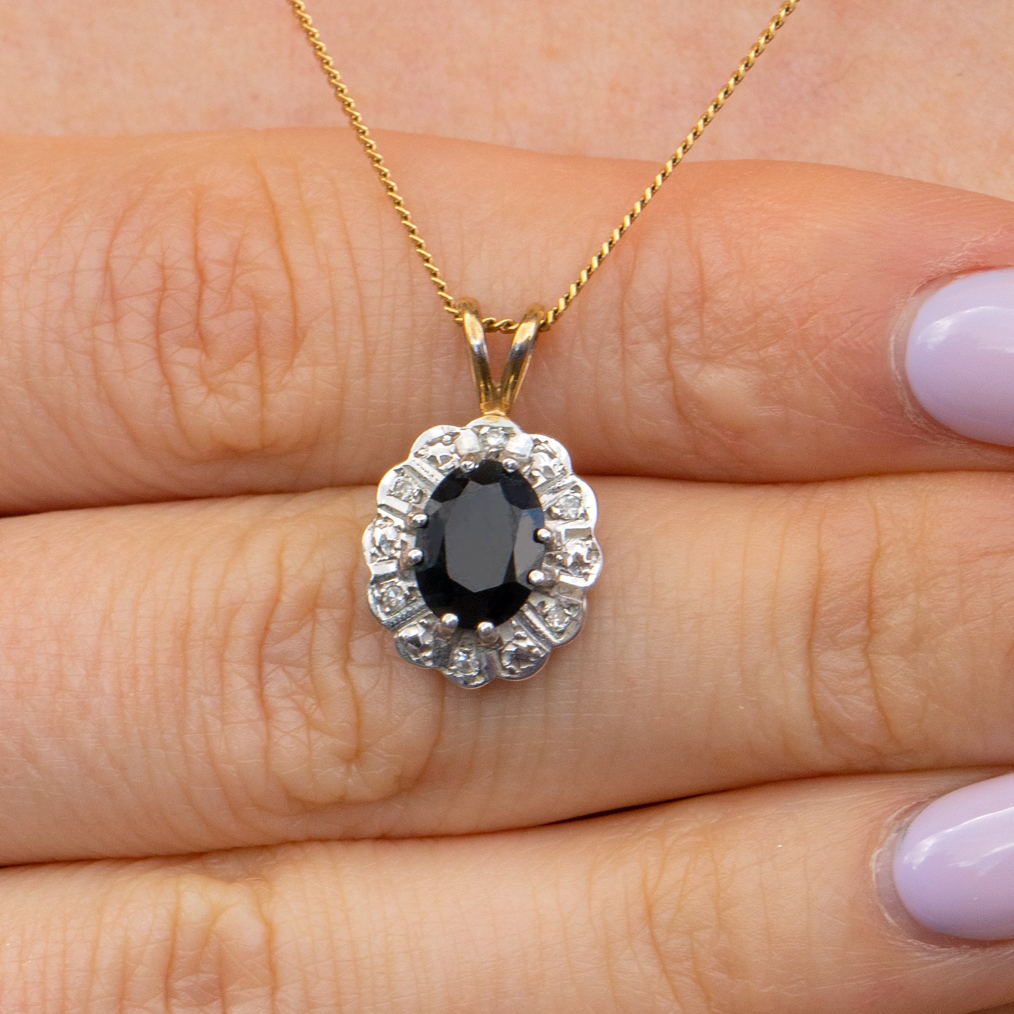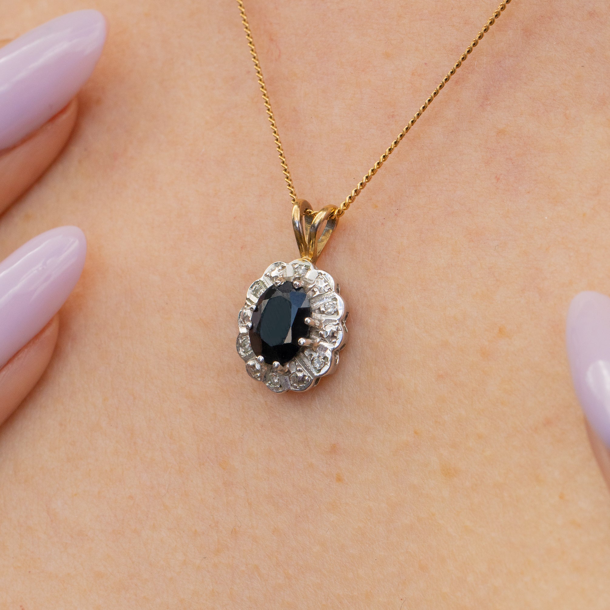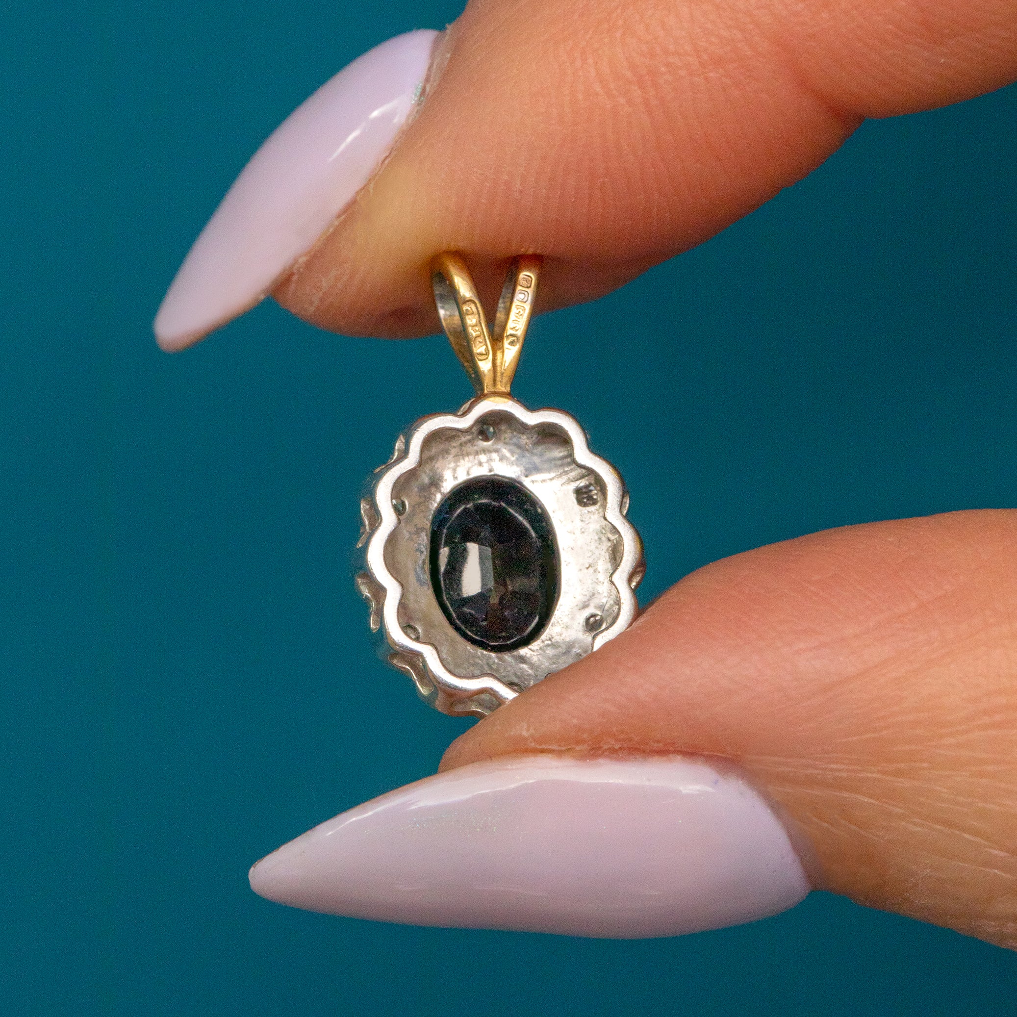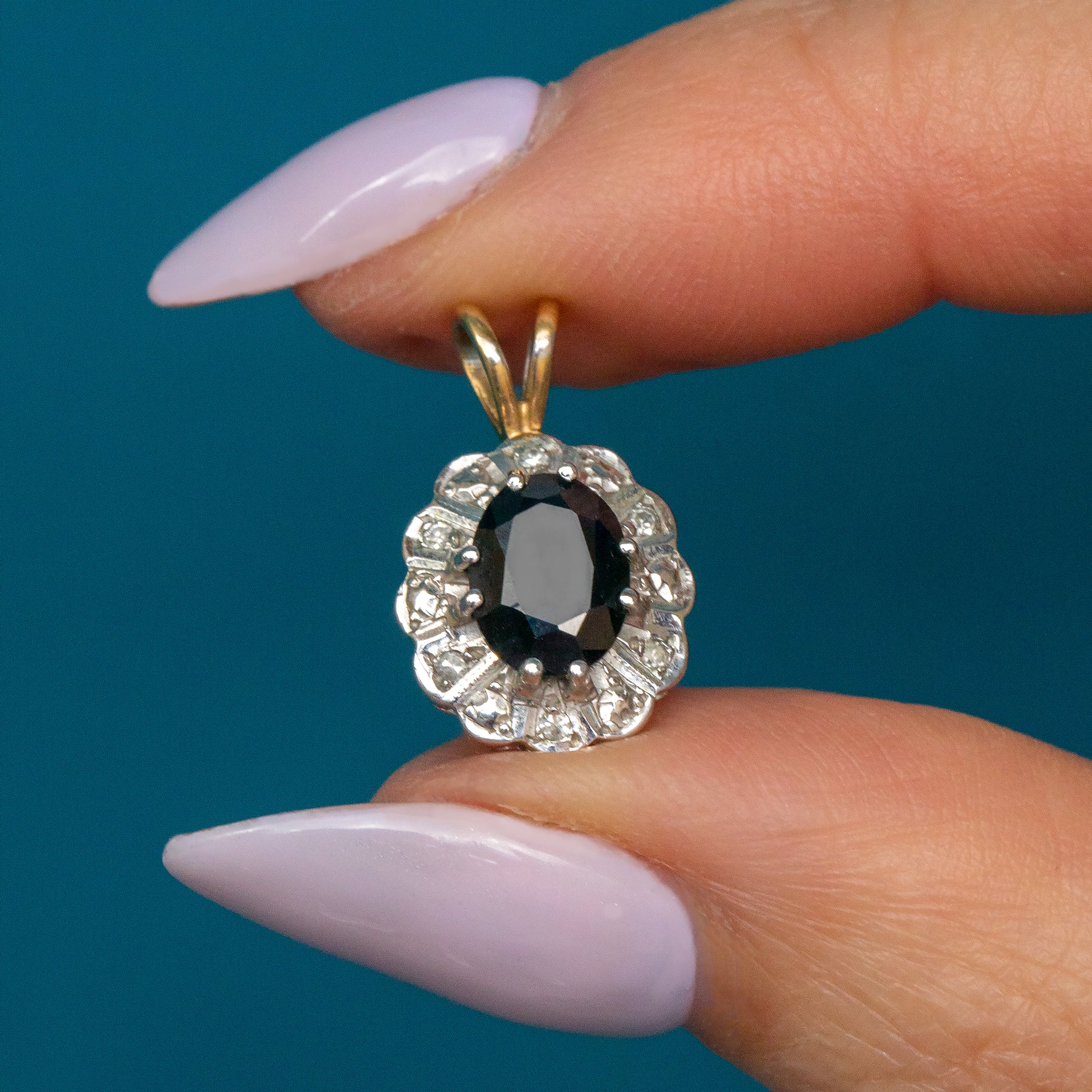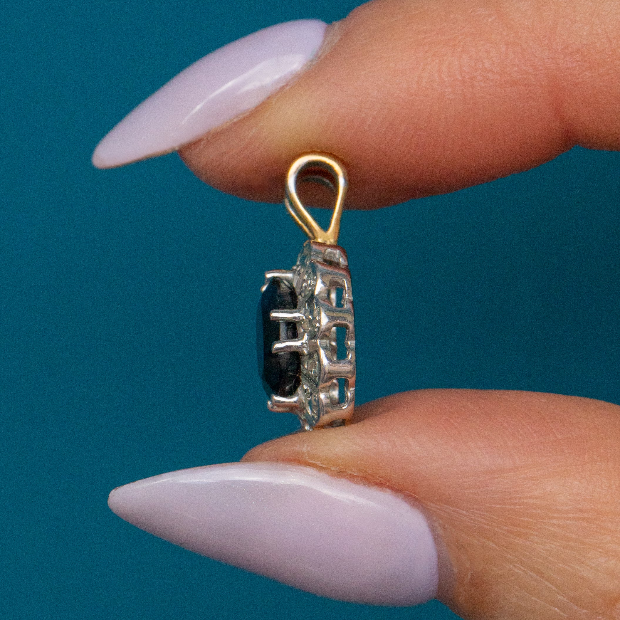 EXCELLENT. We are pleased to present this 9ct Gold Sapphire Diamond cluster charm in mint condition! The Sapphire and surrounding Diamonds are secure within their settings, with no damage to note. Both the white and yellow Gold have retained great form and the bale is securely soldered to the main body. This Vintage charm will become your new go-to piece!